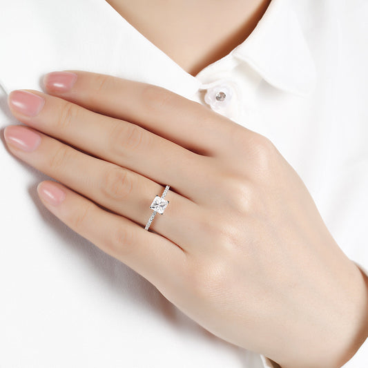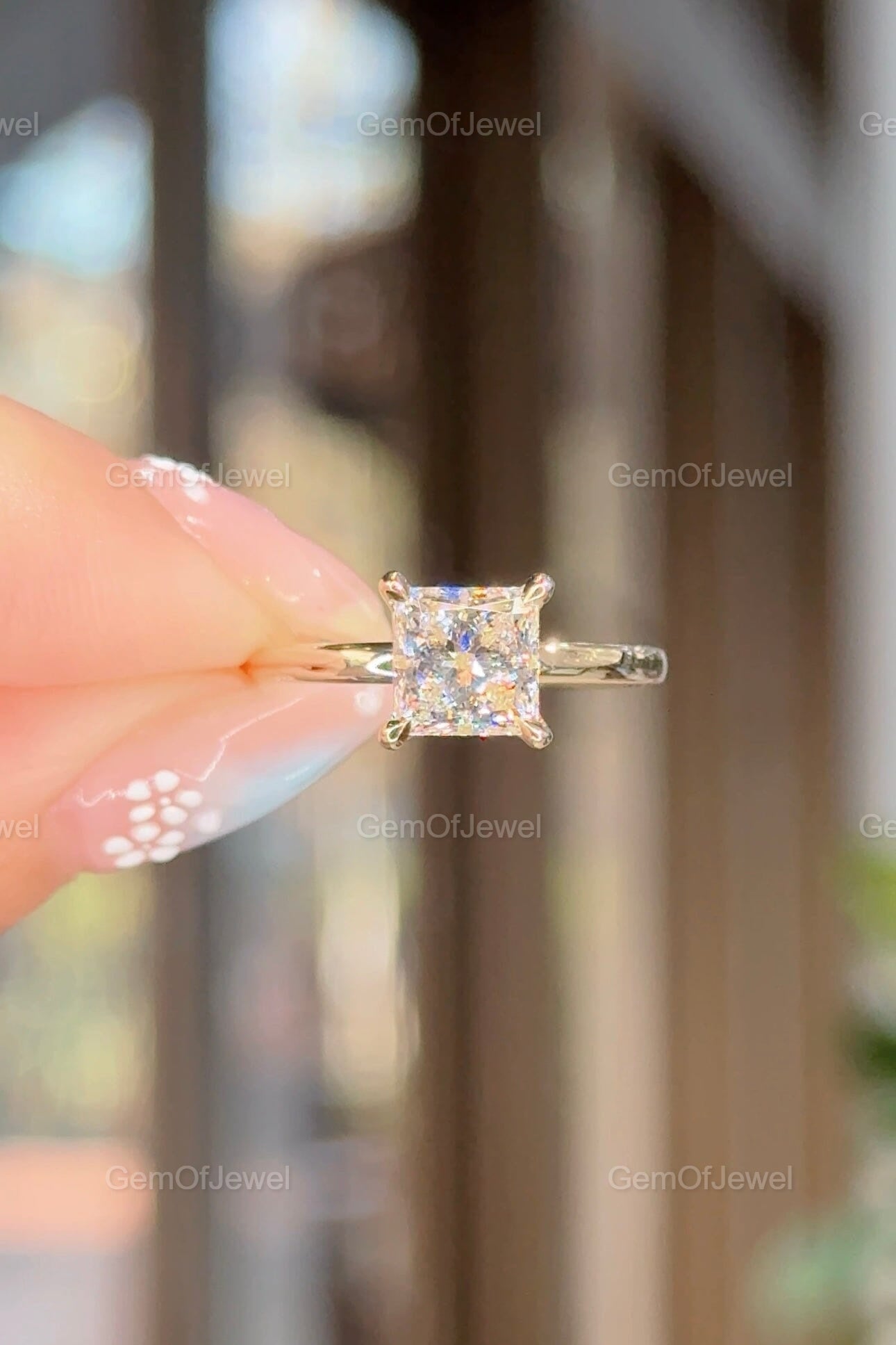 1 CT Princess Cut Moissanite Diamond Engagement Ring With Round Moissanite Eternity Band , Engagement Ring For Her, Gift For her