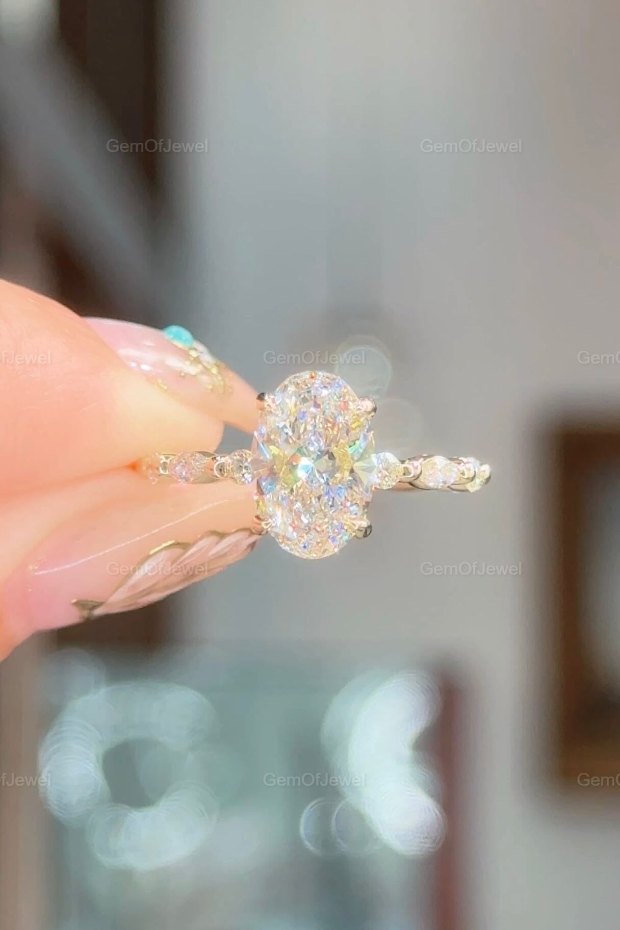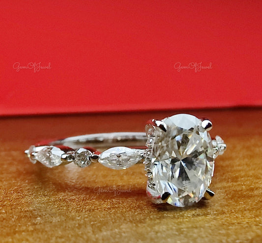 1 CT Oval Cut Moissanite Diamond With Side Round And Marquise Moissanite Diamonds Gold Engagement Ring , Oval Moissanite Ring For Her