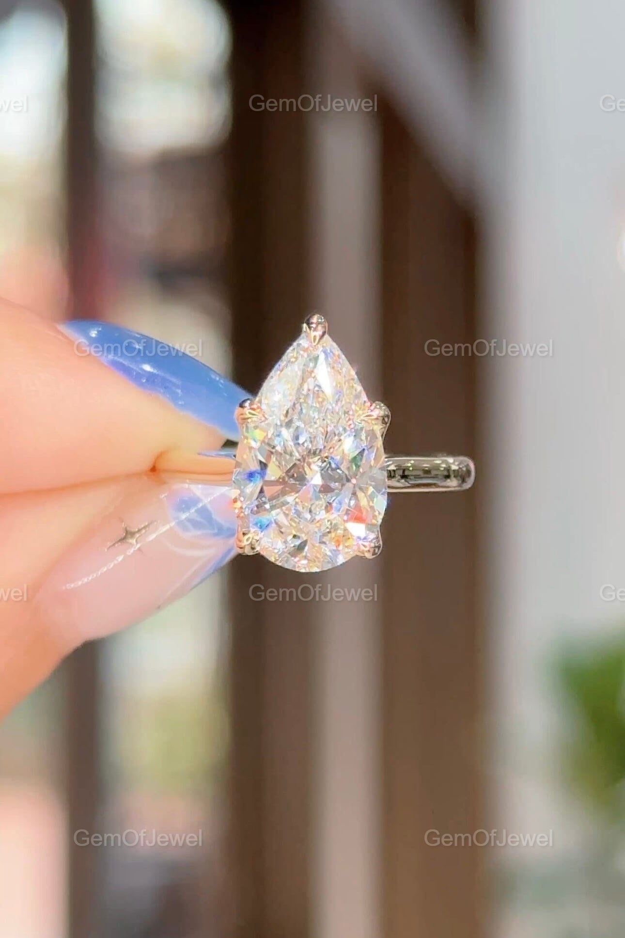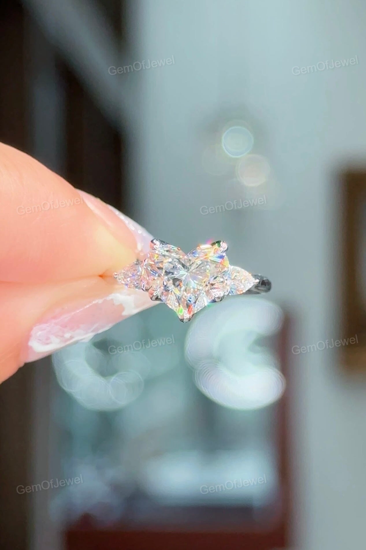 1 CT Pear Moissanite Diamond Engagement Ring With Side Marquise Moissanite Diamond Three Stone Diamond Ring , Marquise Diamond Ring For Her