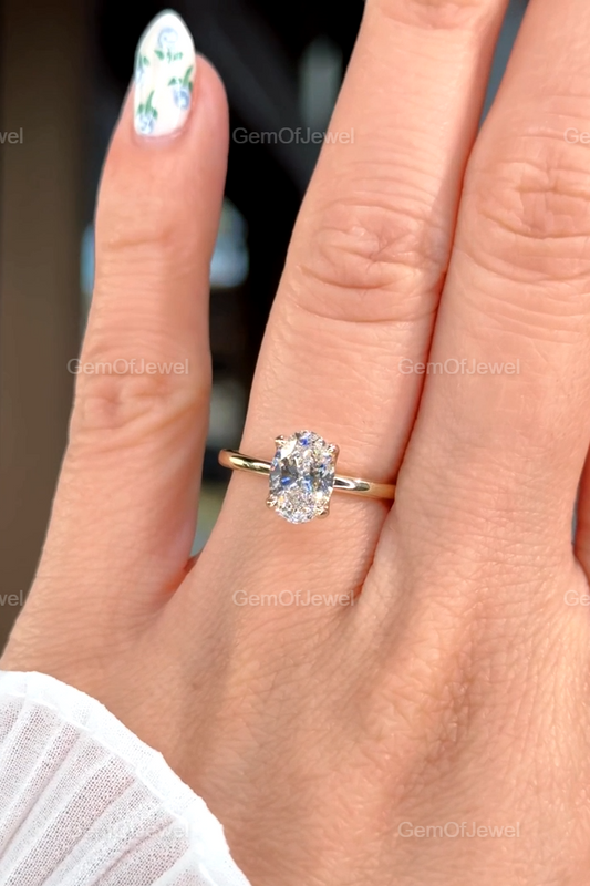 1 CT Oval Cut Solitaire Moissanite Ring, Tulip Lotus Prong Oval Moissanite Solitaire Engagement Ring, 14k Yellow Gold Flower Basket Ring