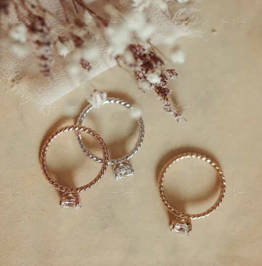1 CT Round Diamond Moissanite Diamond 4 Prong Gold Ring With Twist Band Moissanite Engagement Ring For Her, Round Diamond Twist Band Ring