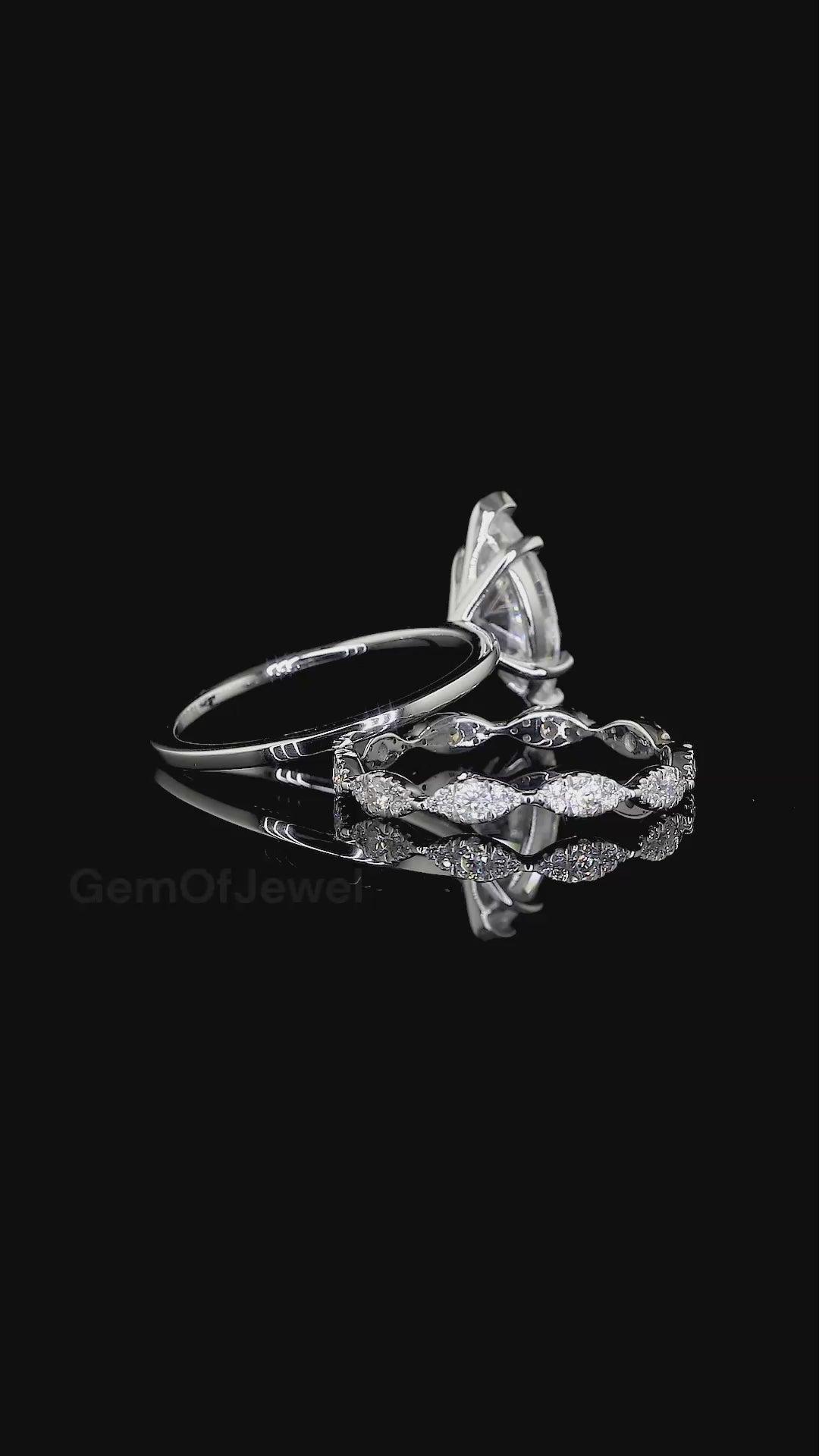 Vintage Style 1.15 CT Marquise Cut Moissanite Muse Engagement Ring with Stackable Milgrain Wedding Band, Bridal Set, Anniversary Ring Gift