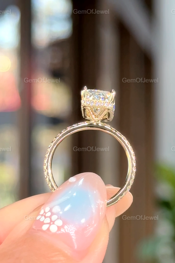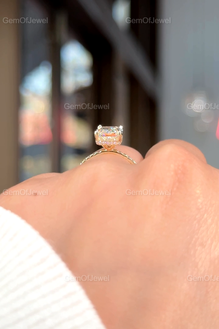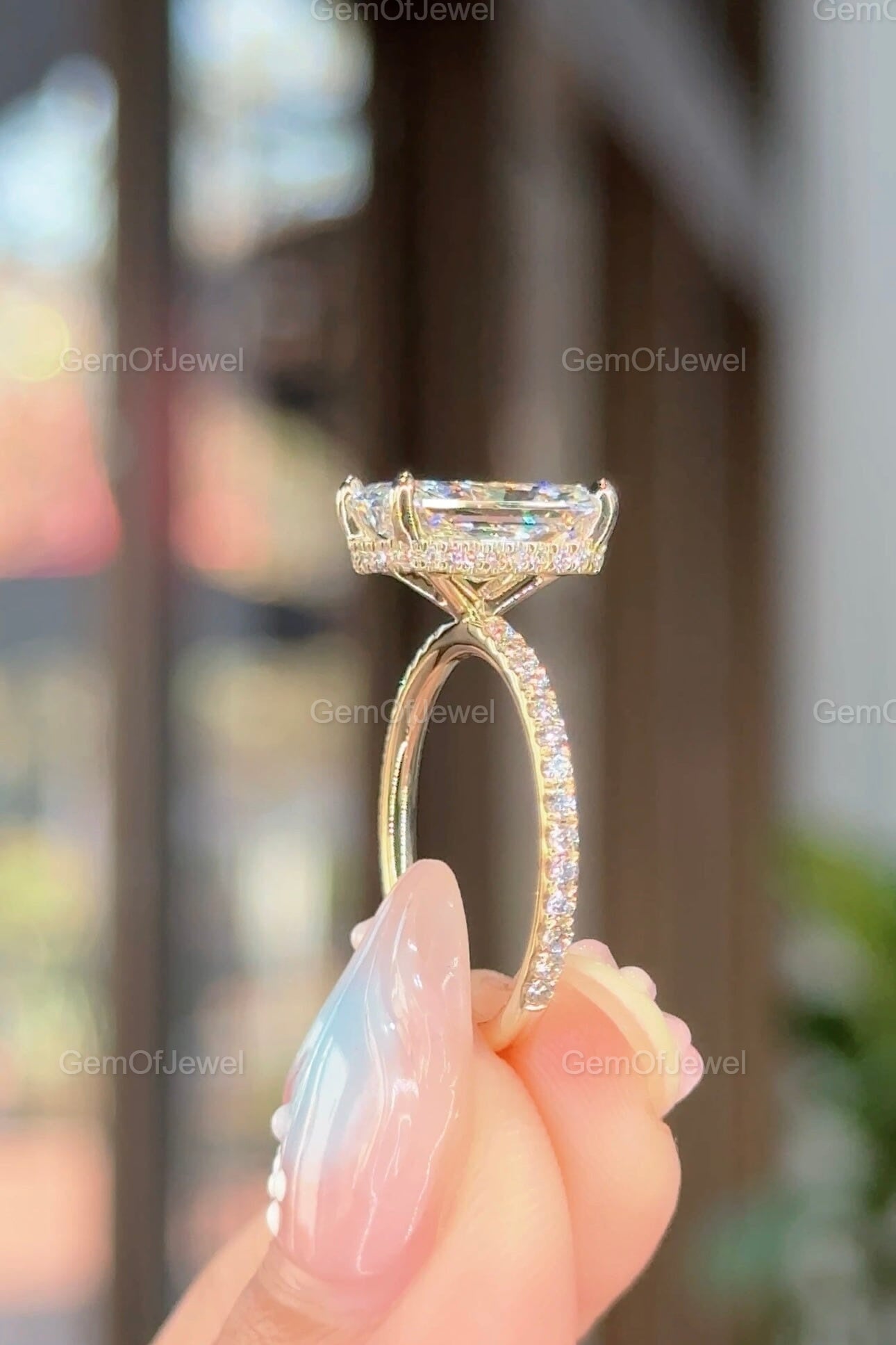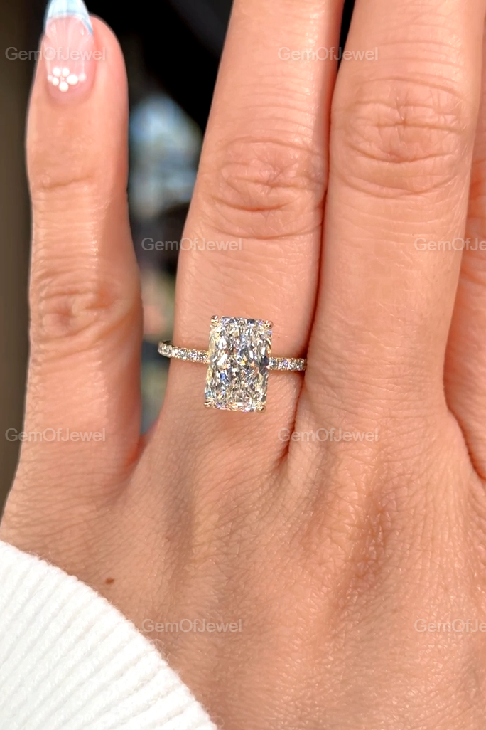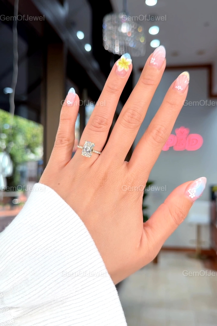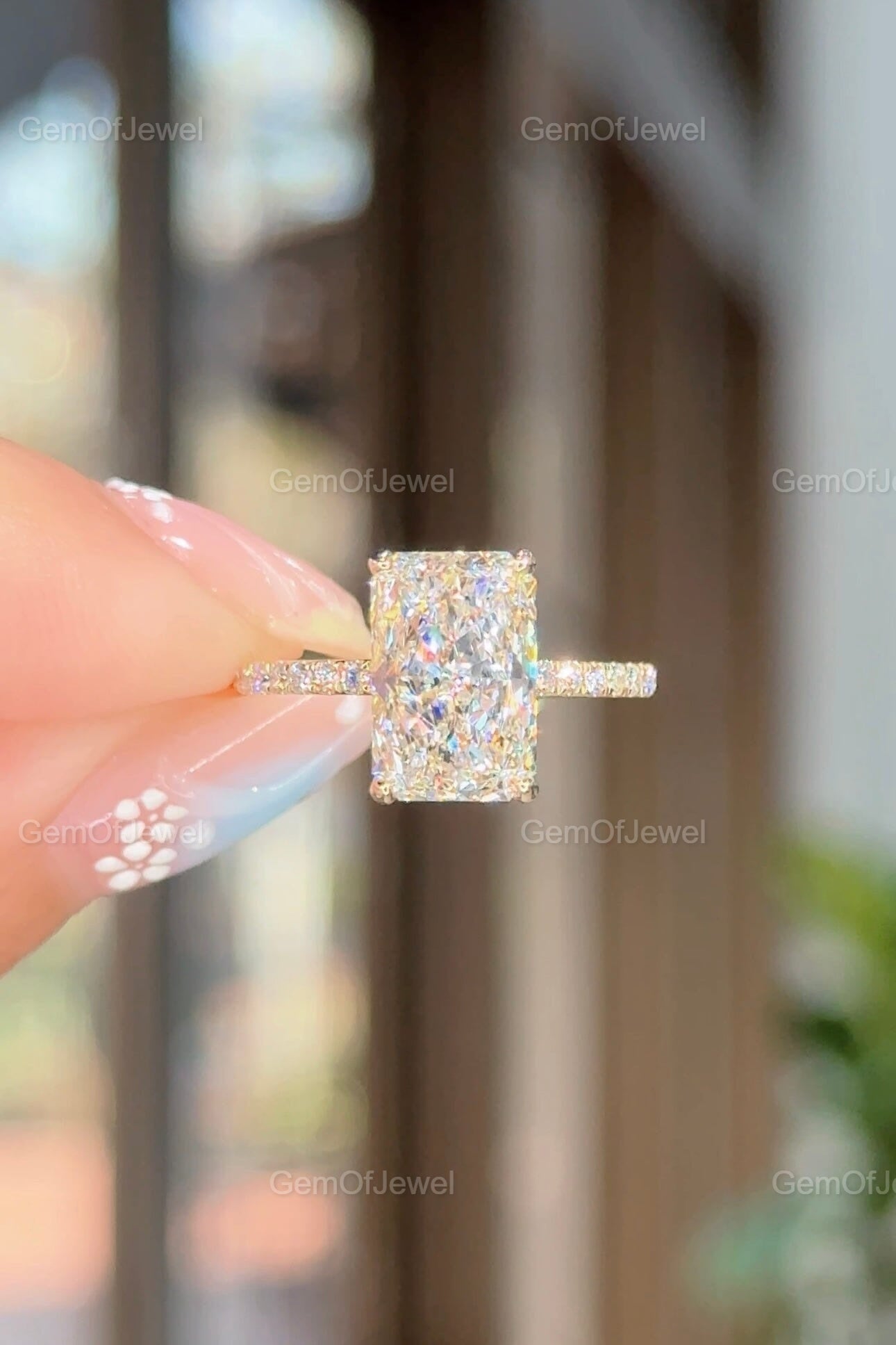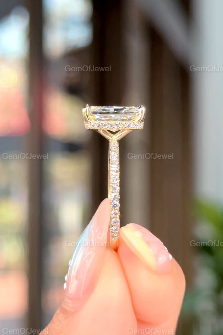 3CT Radiant Moissanite Engagement Ring With Hidden Halo And Pave Eternity Band, Stunning Radiant Moissanite Diamond Halo Ring, 3CT Radiant Cut Moissanite Ring