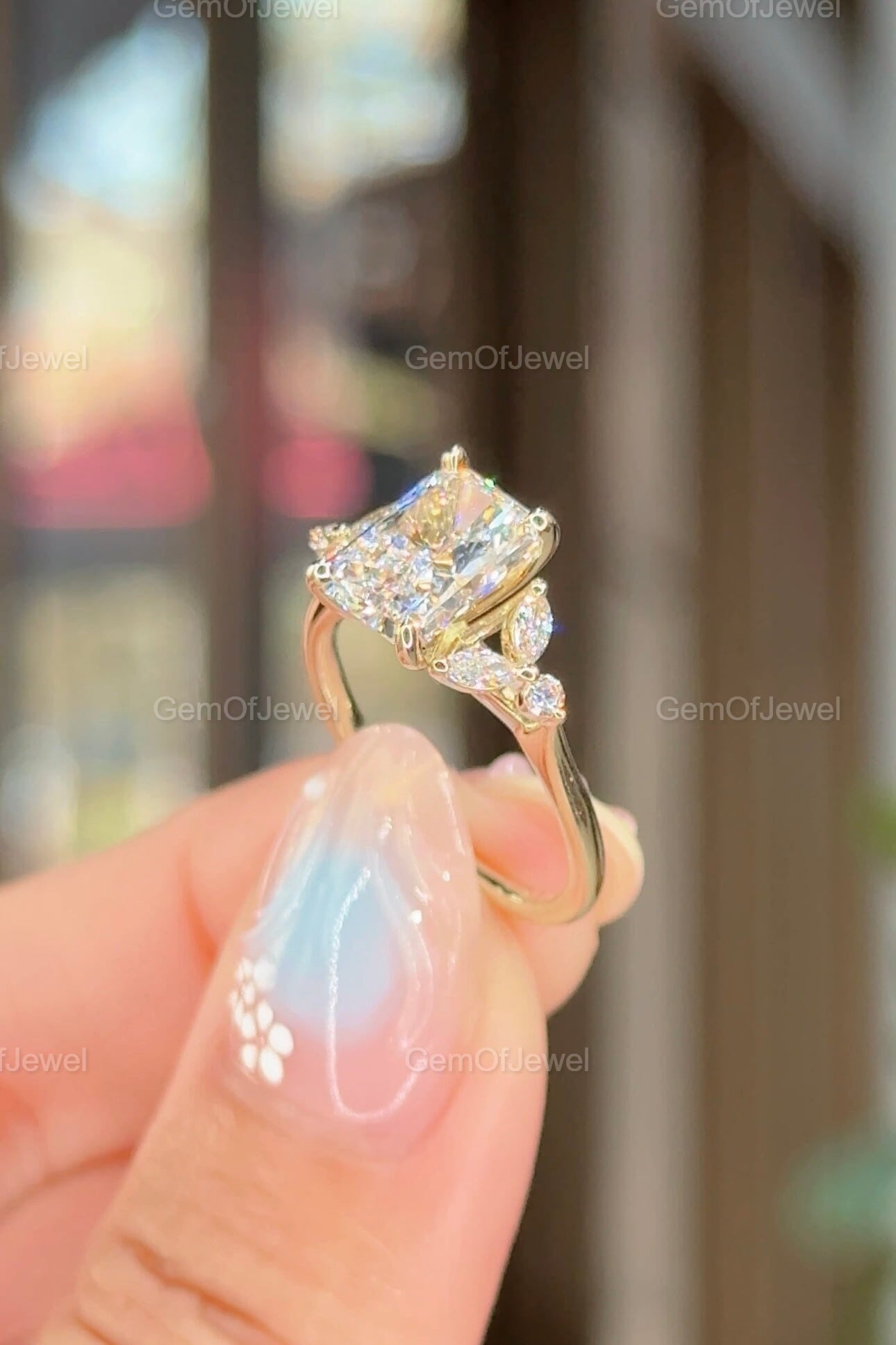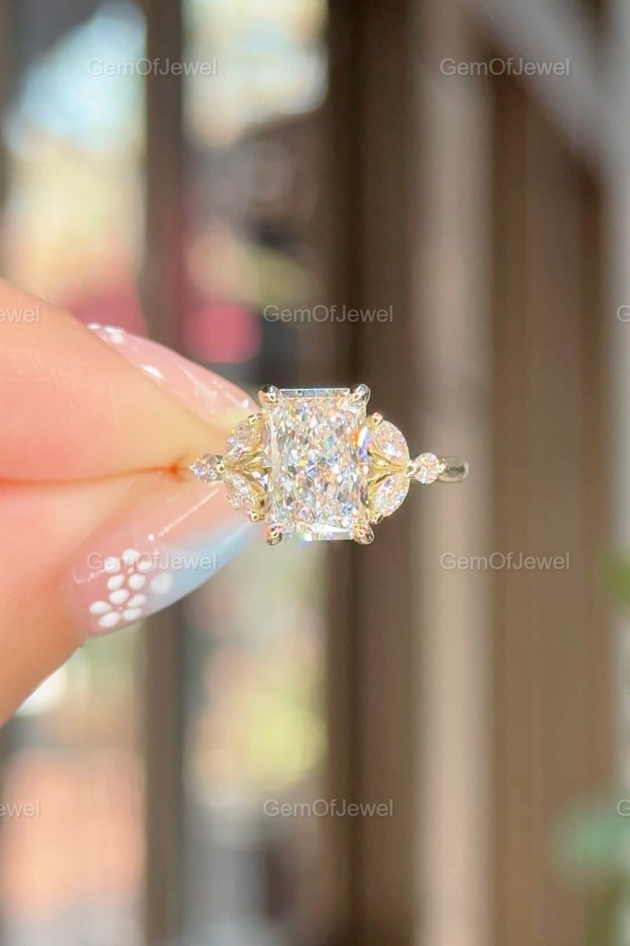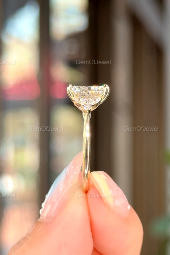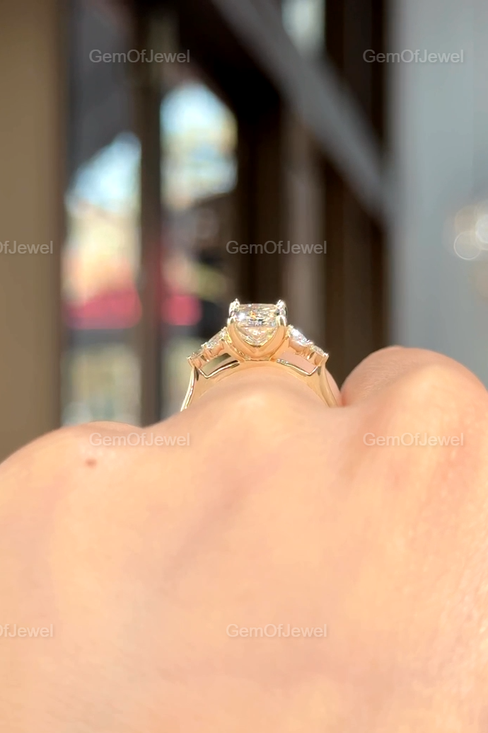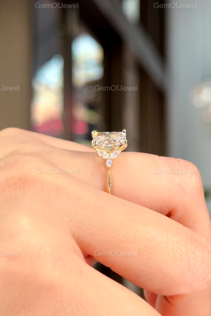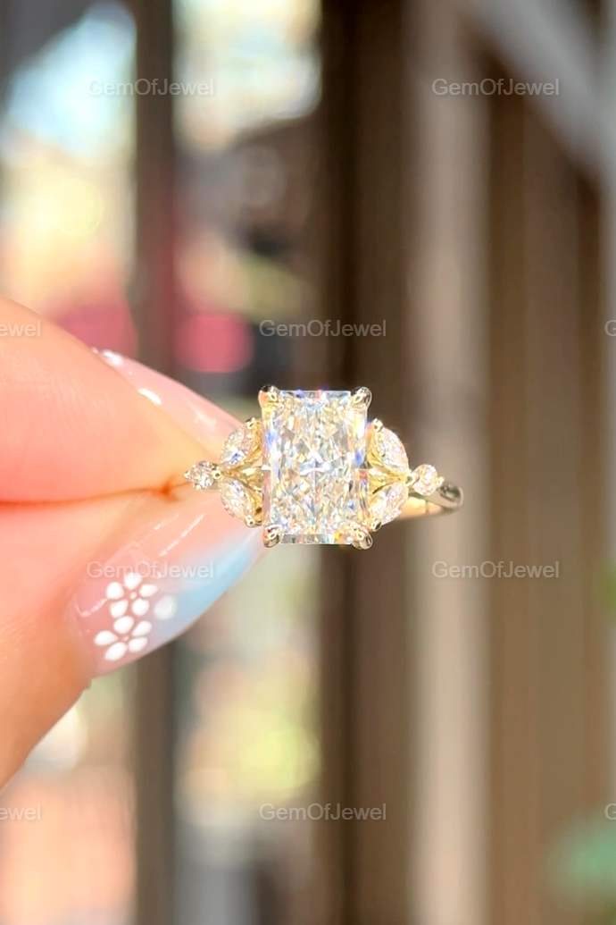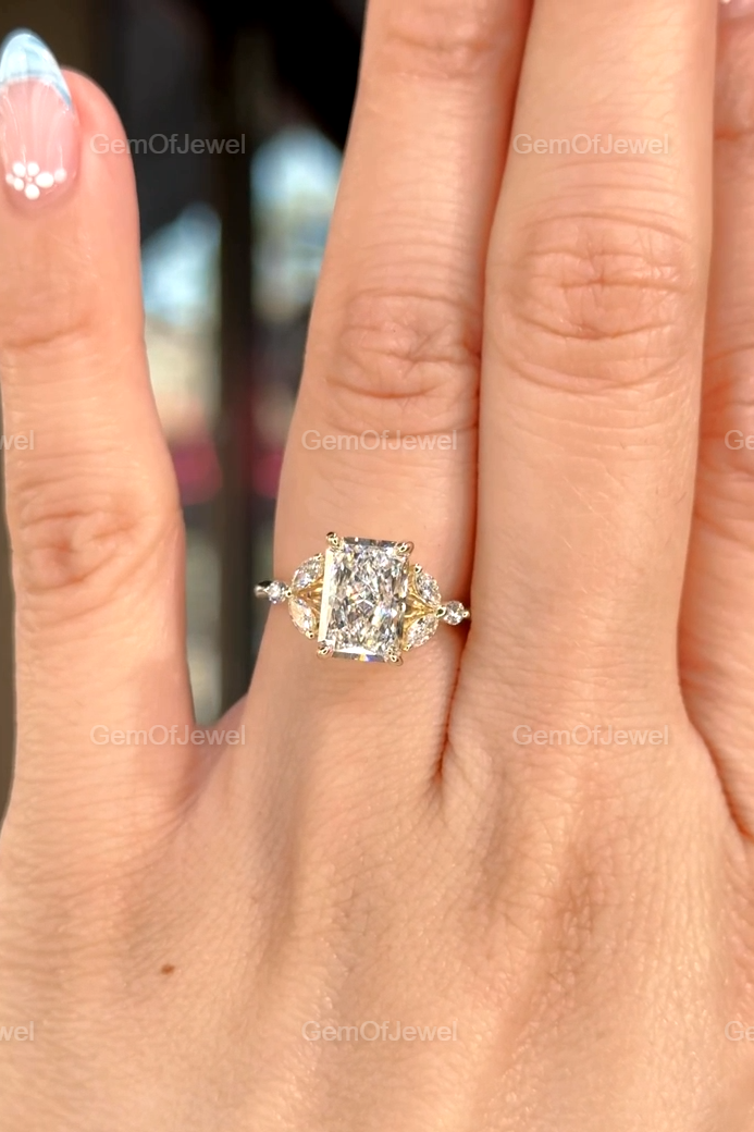 Radiant Cut Moissanite Ring, 2.5CT Radiant Cut Colorless Moissanite Engagement Ring, Marquise With Round Moissanite Diamond Anniversary Ring