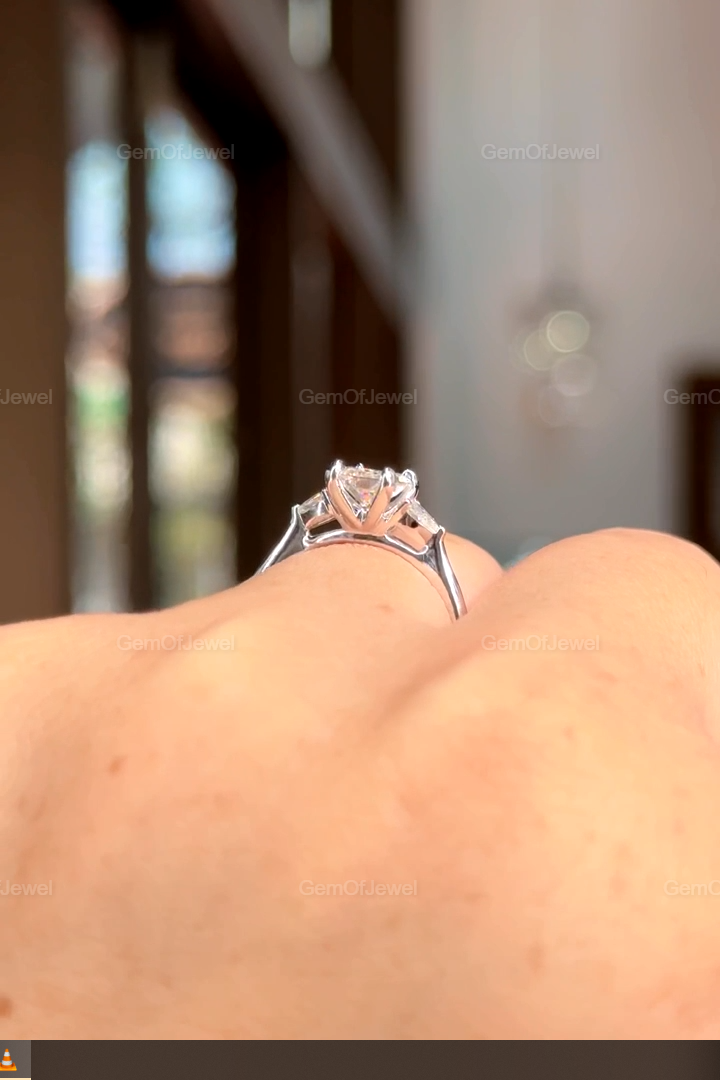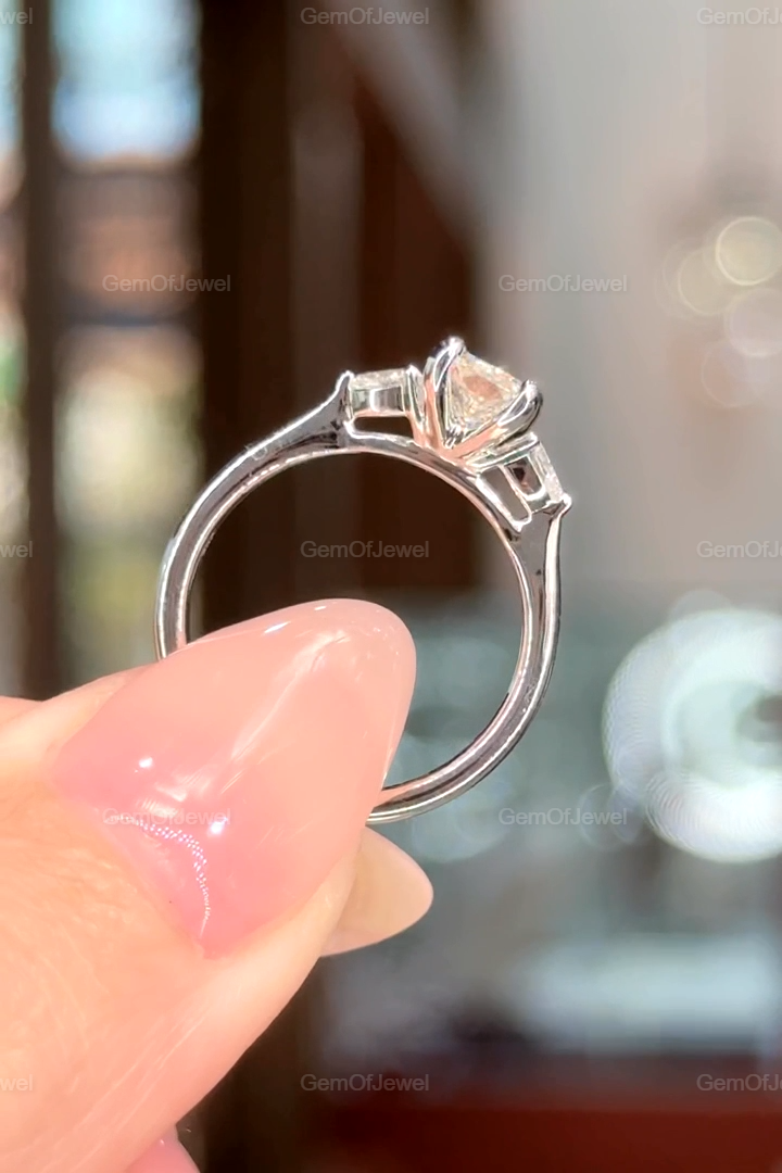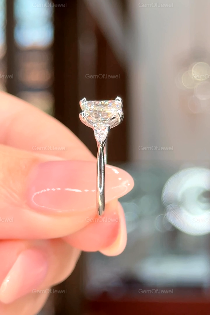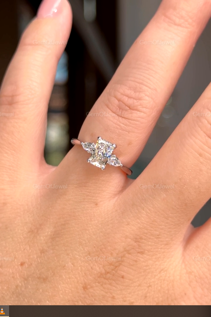 1CT Radiant Three Stone Diamond Wedding Ring, Radiant Moissanite Engagement Ring With Side Pear Diamond Ring, 1CT Radiant Moissanite Ring