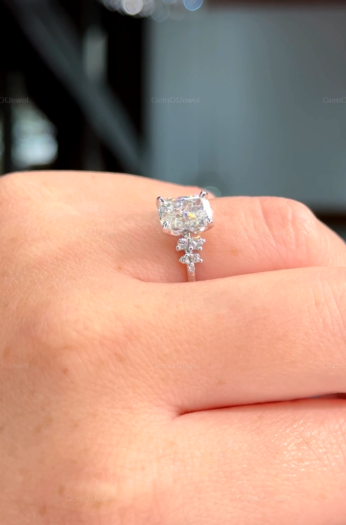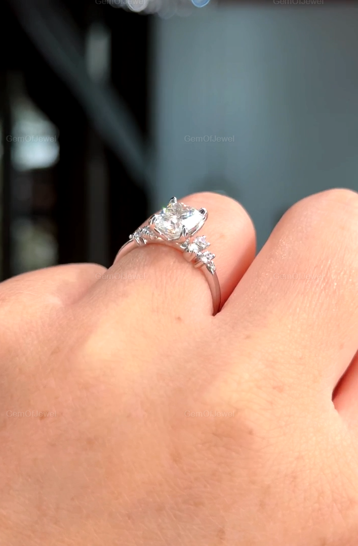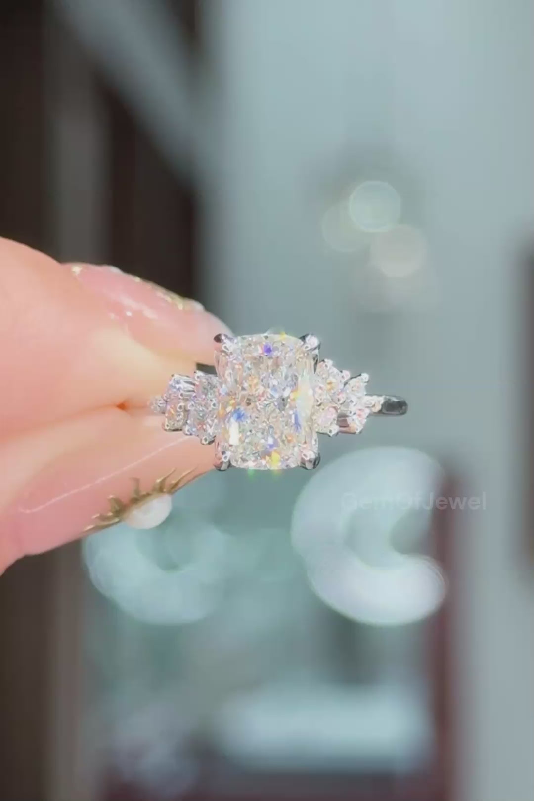 2CT Elongated Cushion Moissanite Engagement Ring, Cushion Moissanite Ring with Side Round Diamond Cluster Ring For Her, Wedding Gift For Her