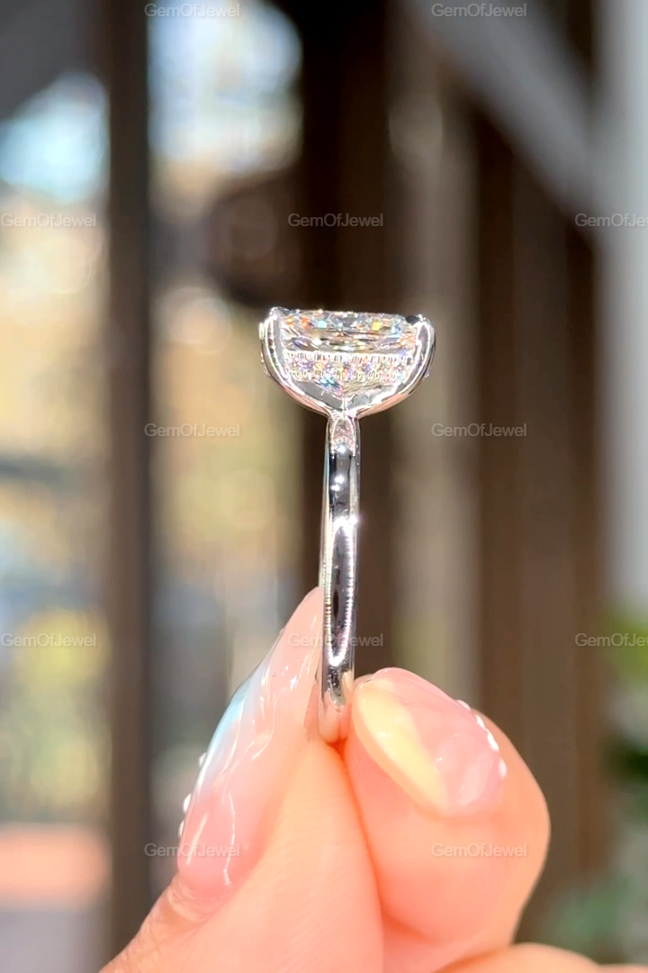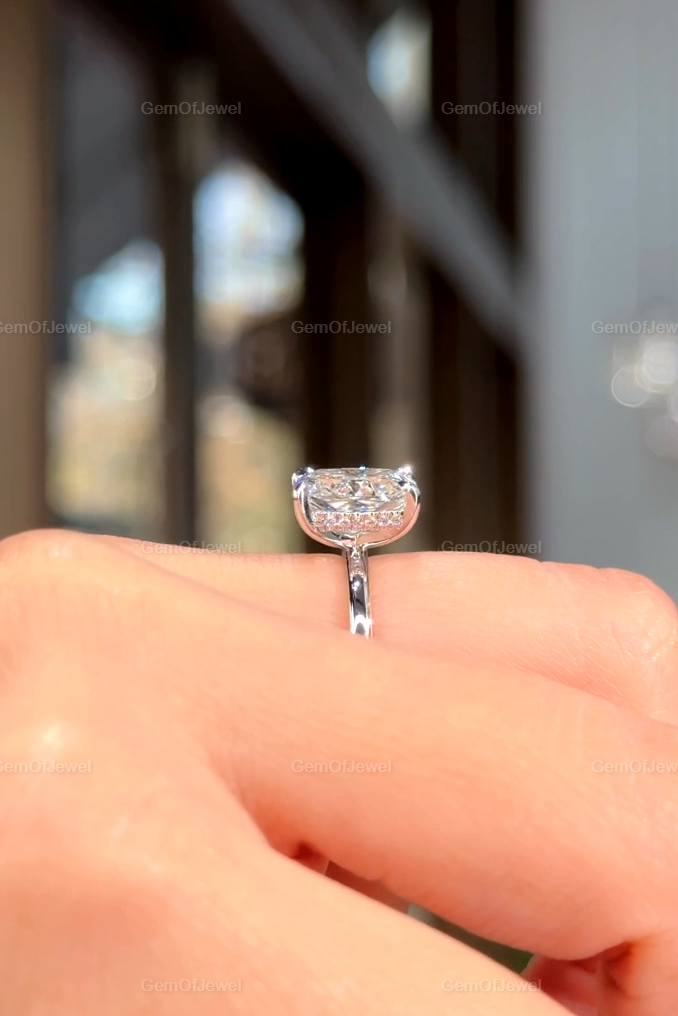 3Ct Cushion Hidden Halo Elongated Cushion Moissanite Diamond Engagement Ring, 3CT Cushion Moissanite Diamond Ring, 3CT Cushion Diamond Ring