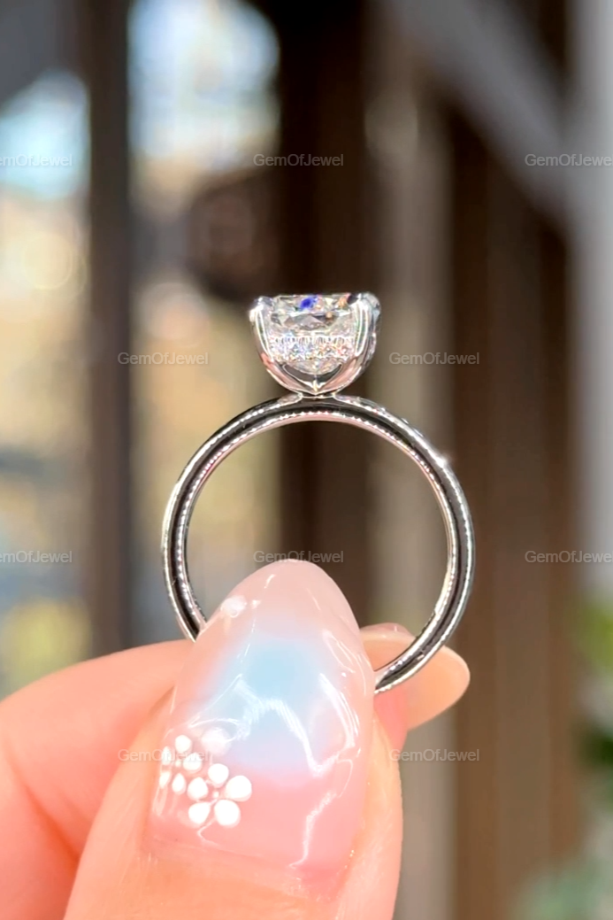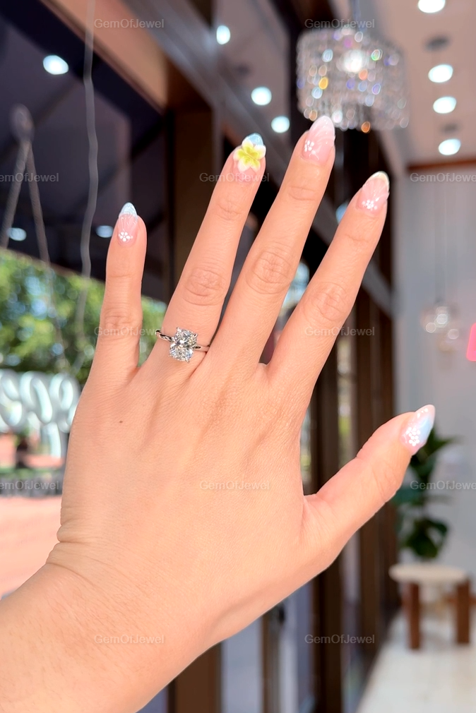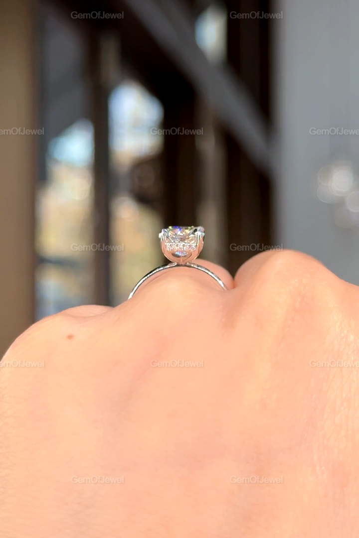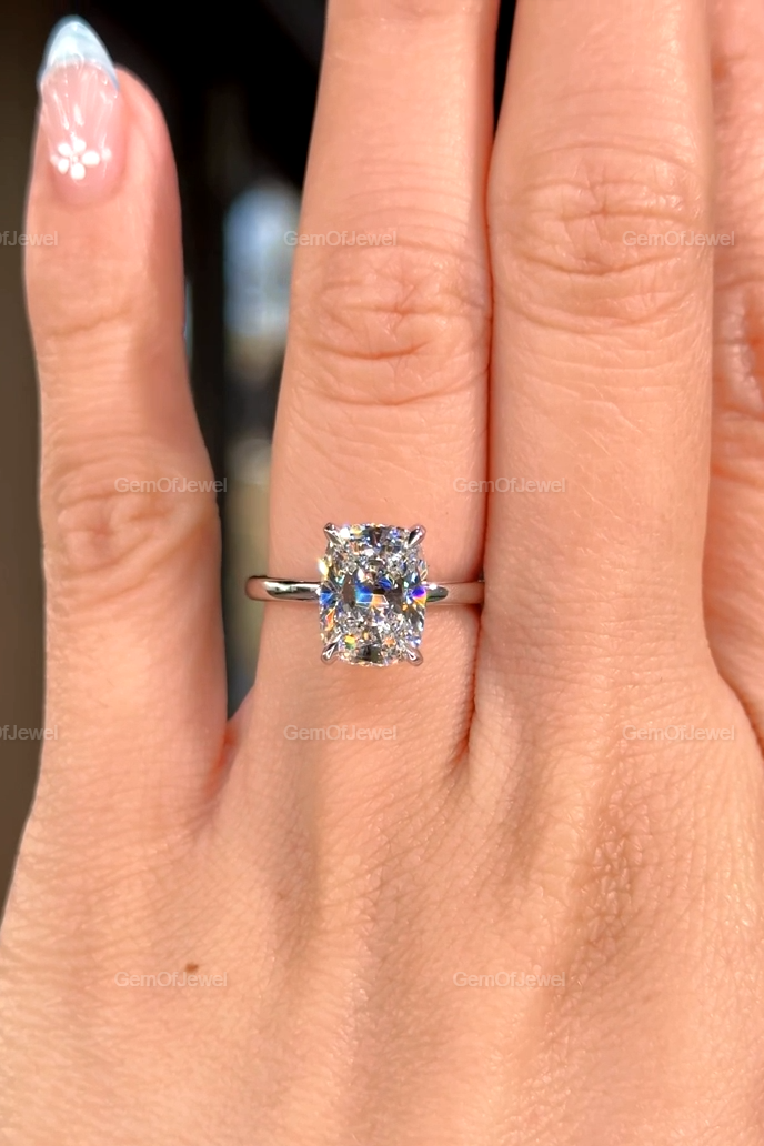 Experience timeless elegance with our 3ct cushion diamond engagement ring, featuring a hidden halo that adds subtle brilliance and elongates the finger for a graceful look. This meticulously crafted ring combines the brilliance of a 3CT cushion Moissanite diamond with durable materials, making it a standout choice for those seeking both beauty and lasting value.