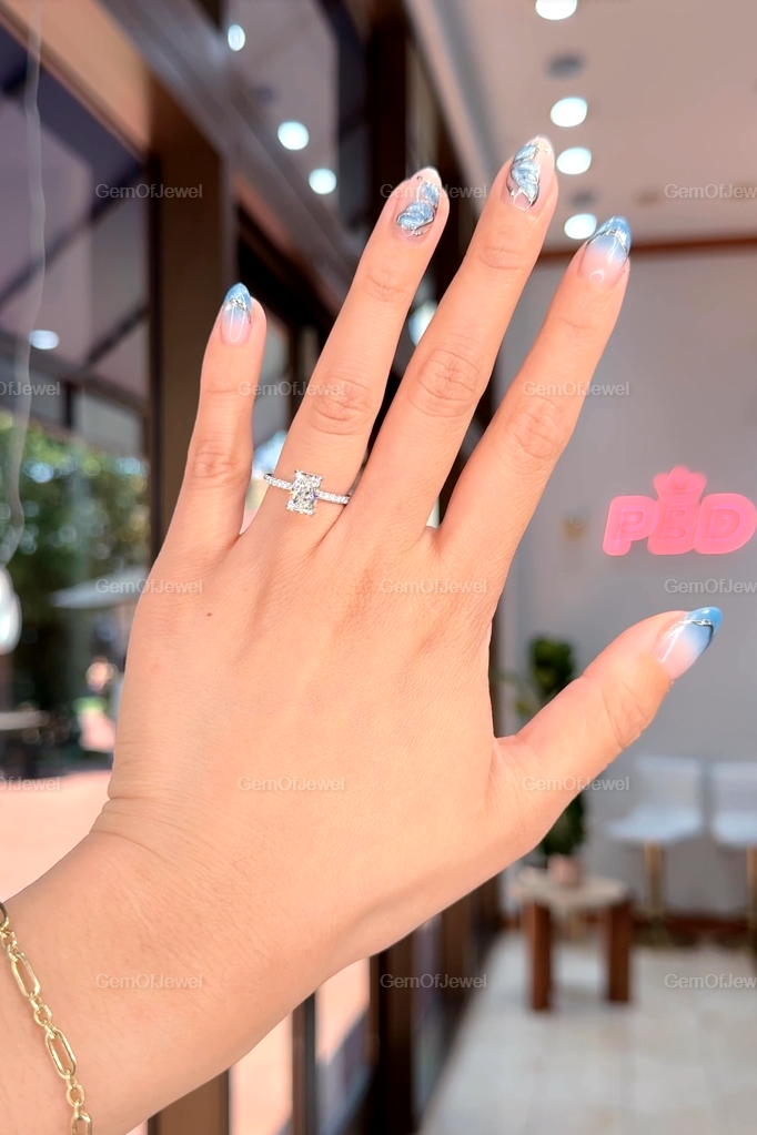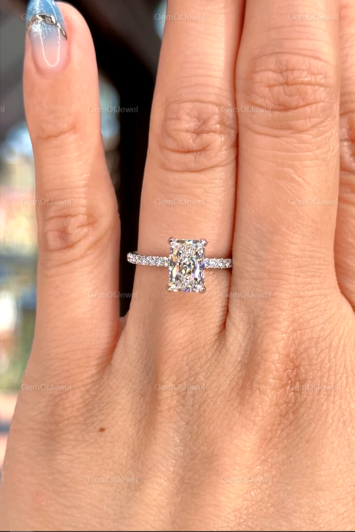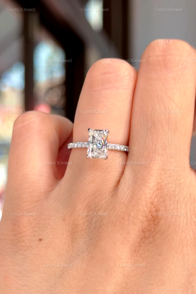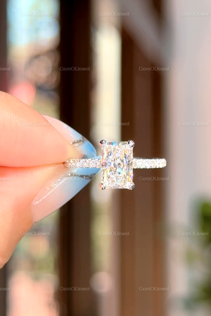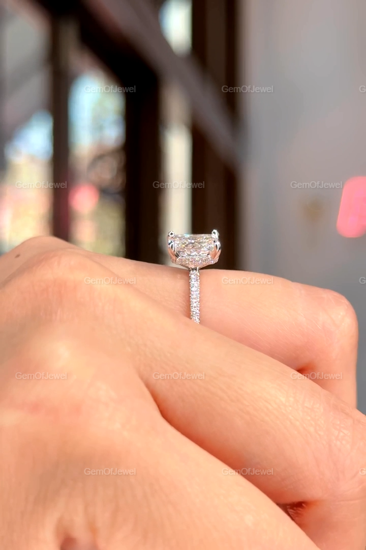 Radiant Moissanite Diamond With Halo Of Round Moissanite Diamond Ring For Her Or Engagement Ring, Radiant Moissanite Diamond Ring For Her