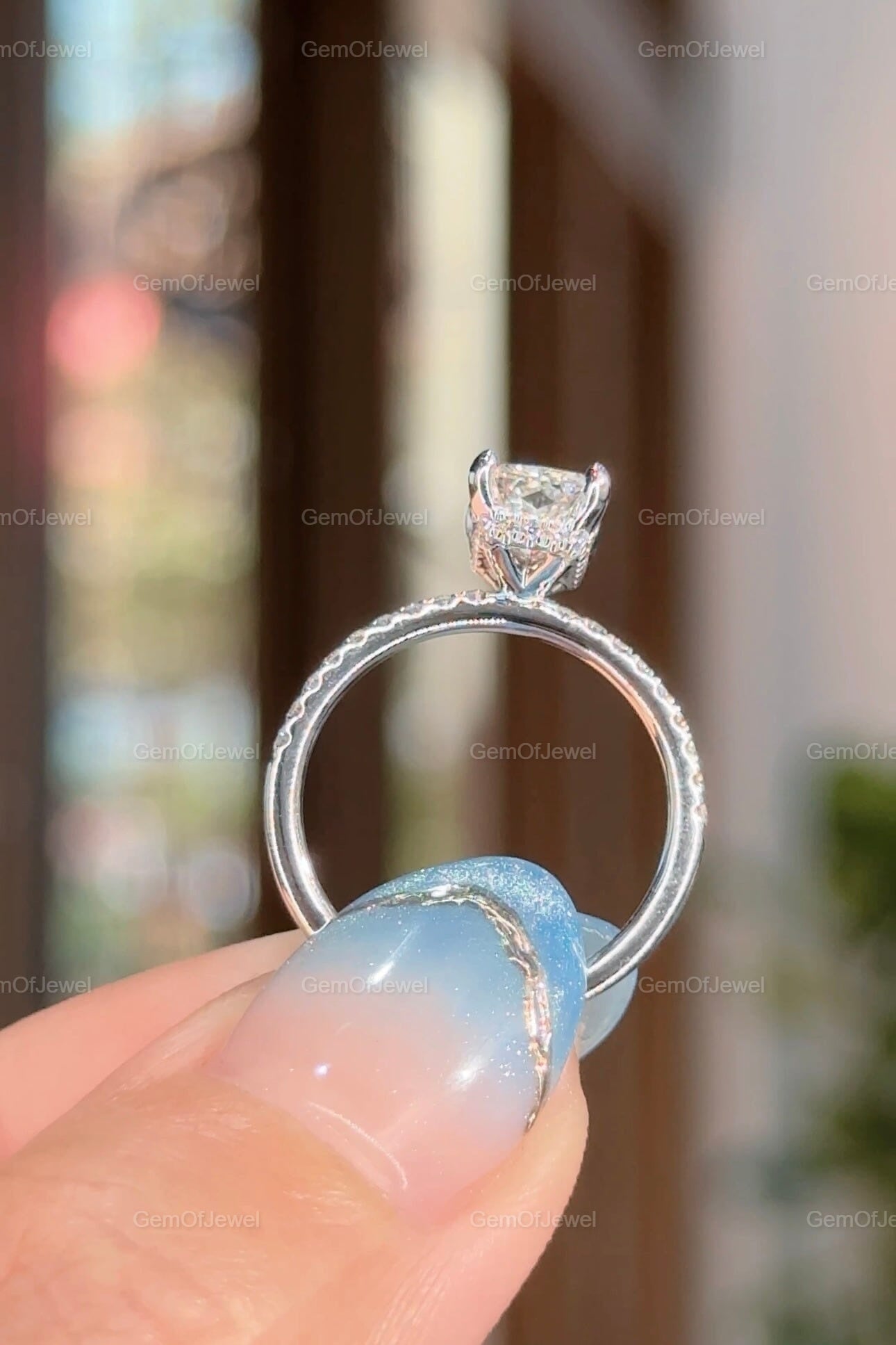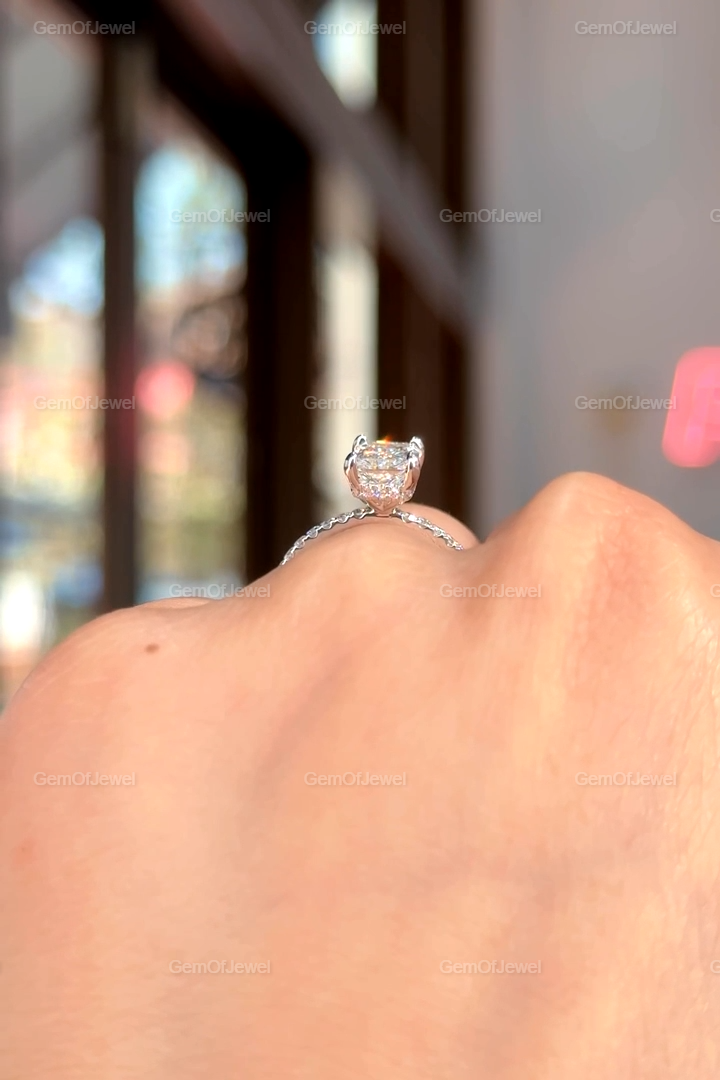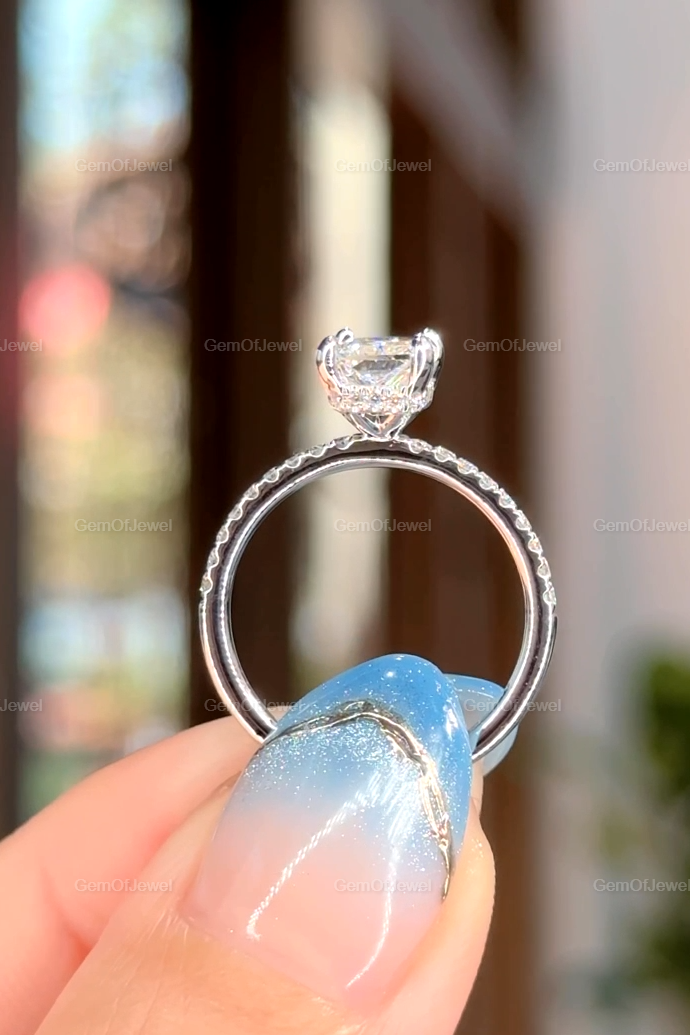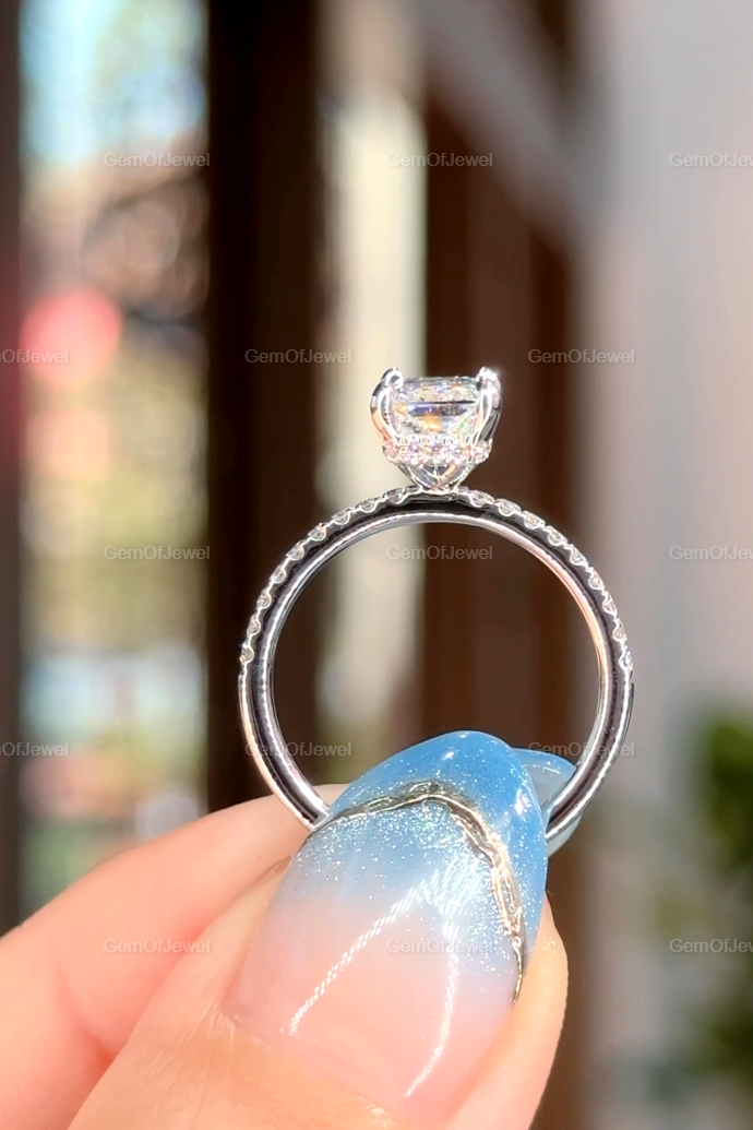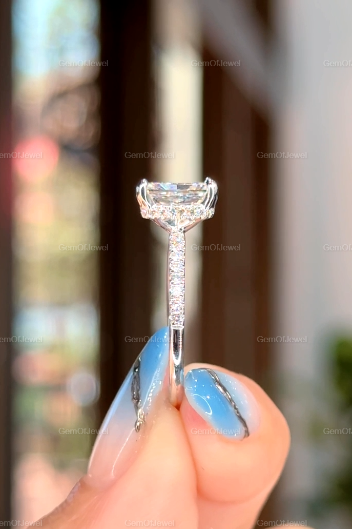 Radiant Moissanite Diamond With Halo Of Round Moissanite Diamond Ring For Her Or Engagement Ring, Radiant Moissanite Diamond Ring For Her