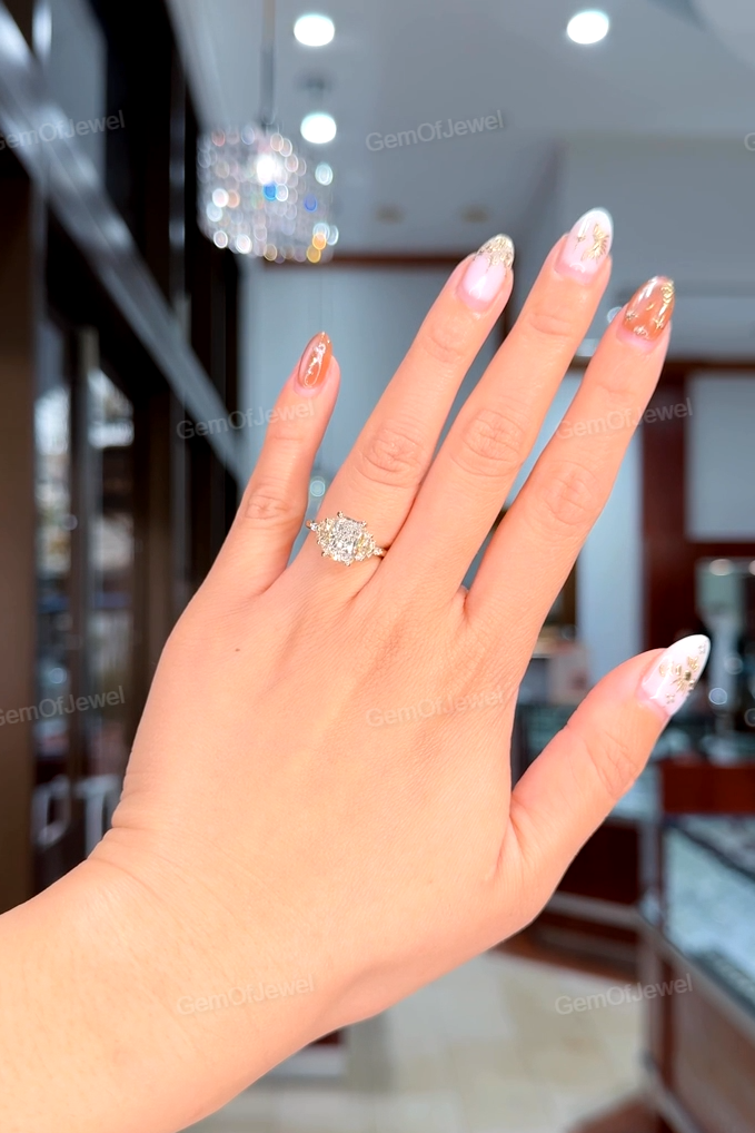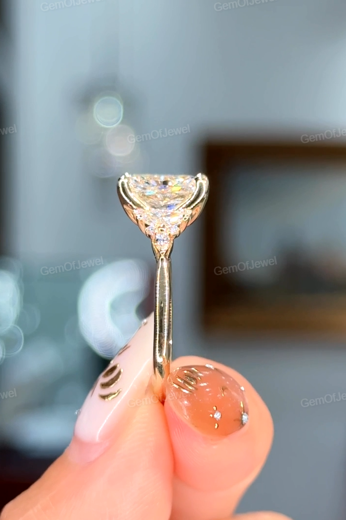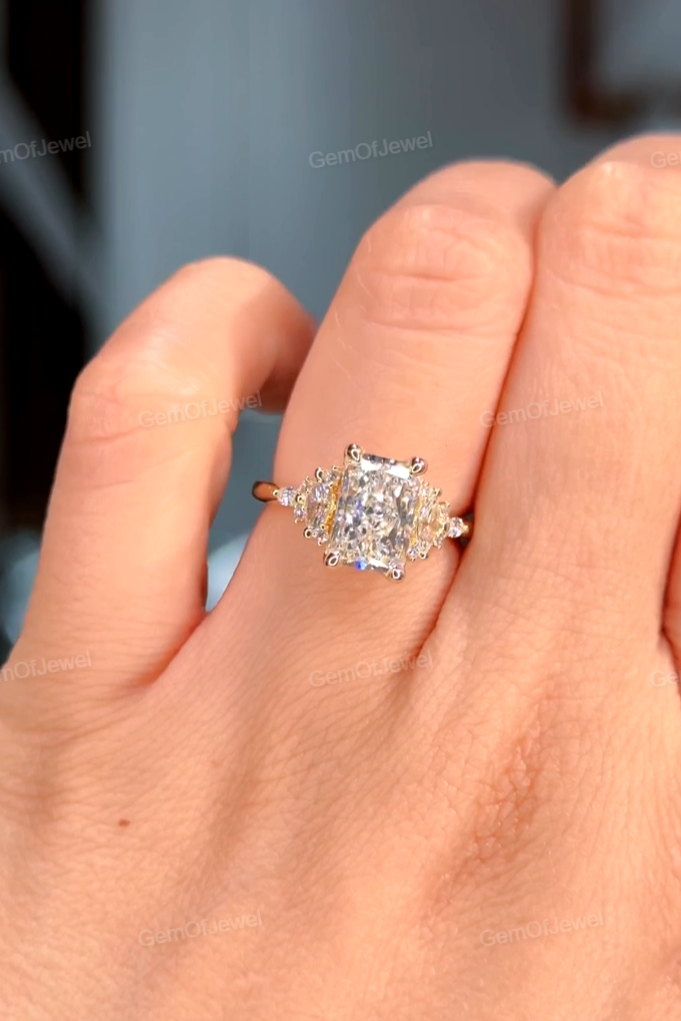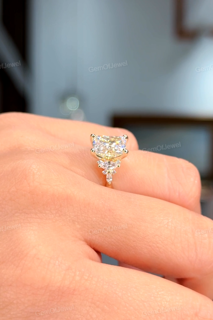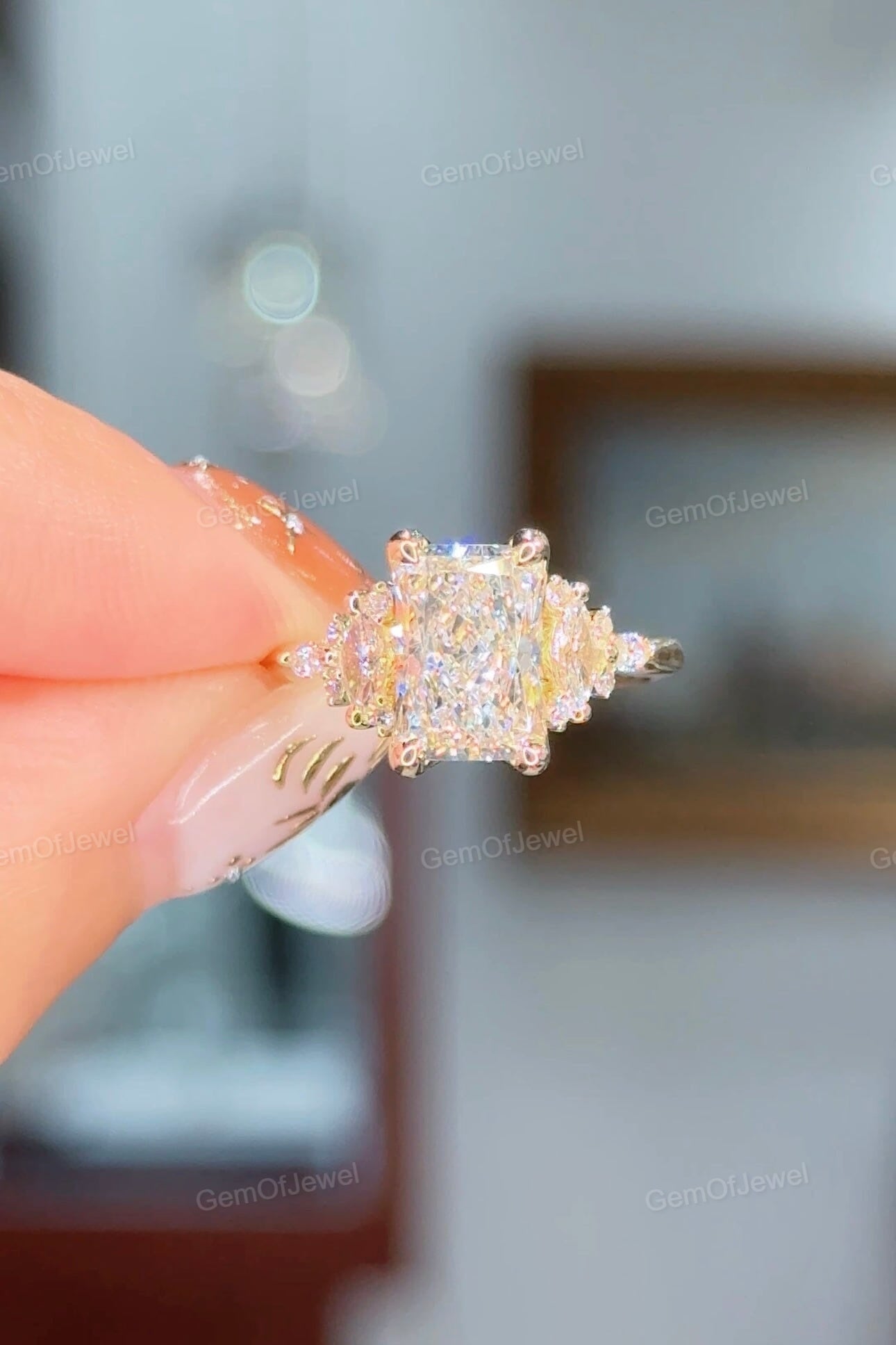 9*6 mm Radiant Moissanite Diamond Ring, 2.5CT Radiant Cut Moissanite Diamond Ring, Side Marquise With Round Diamond Ring, 14k Gold Moissanite Anniversary Gift