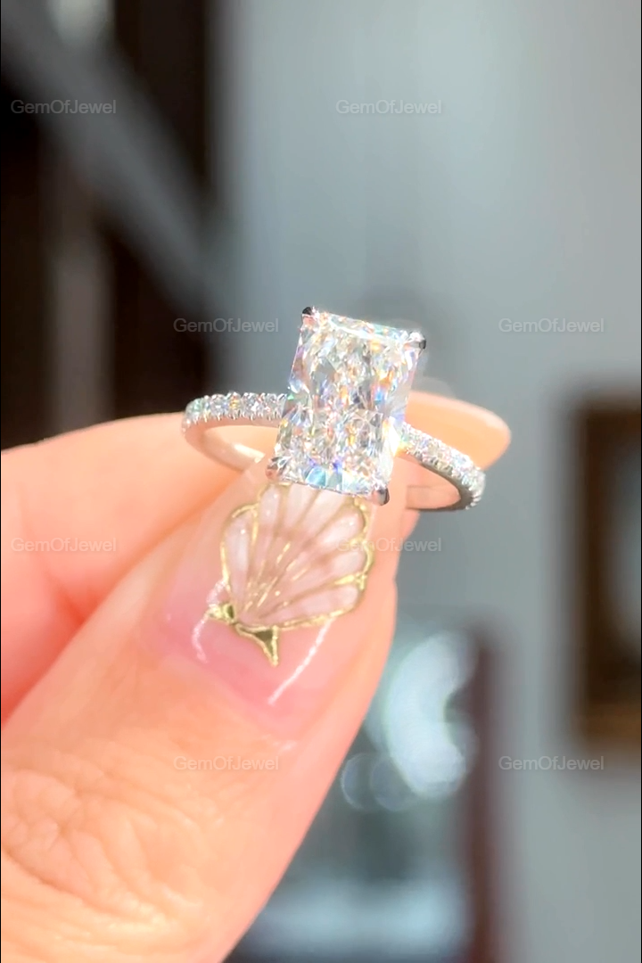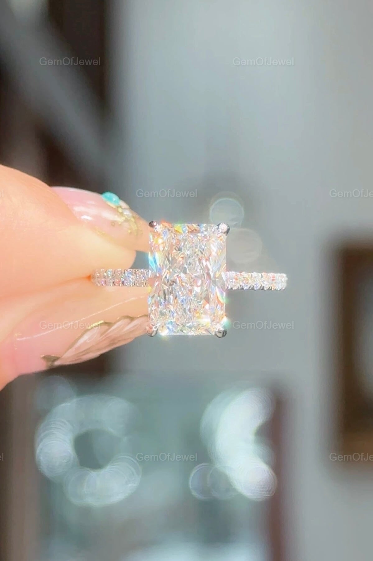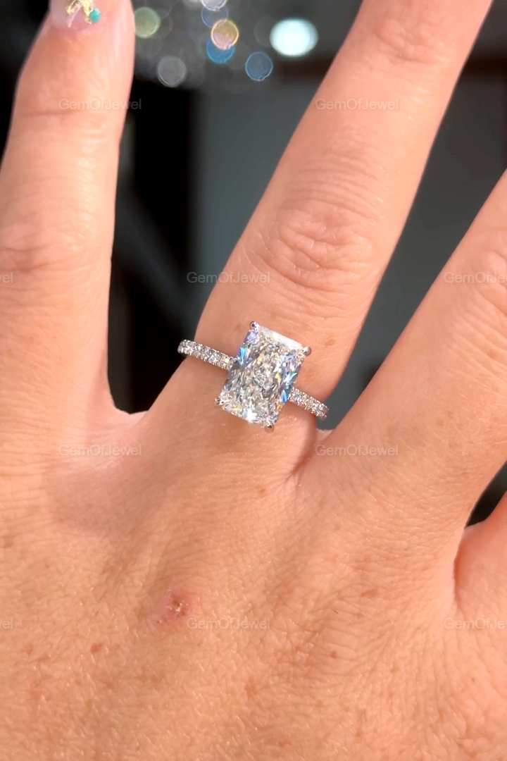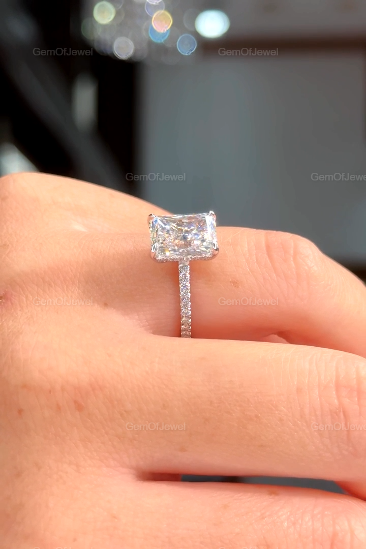 Radiant Cut Moissanite Hidden Halo Diamond Engagement Ring, 14k Gold Moissanite Ring, 3.00 CT Radiant Moissanite Diamond Claw Prong Ring