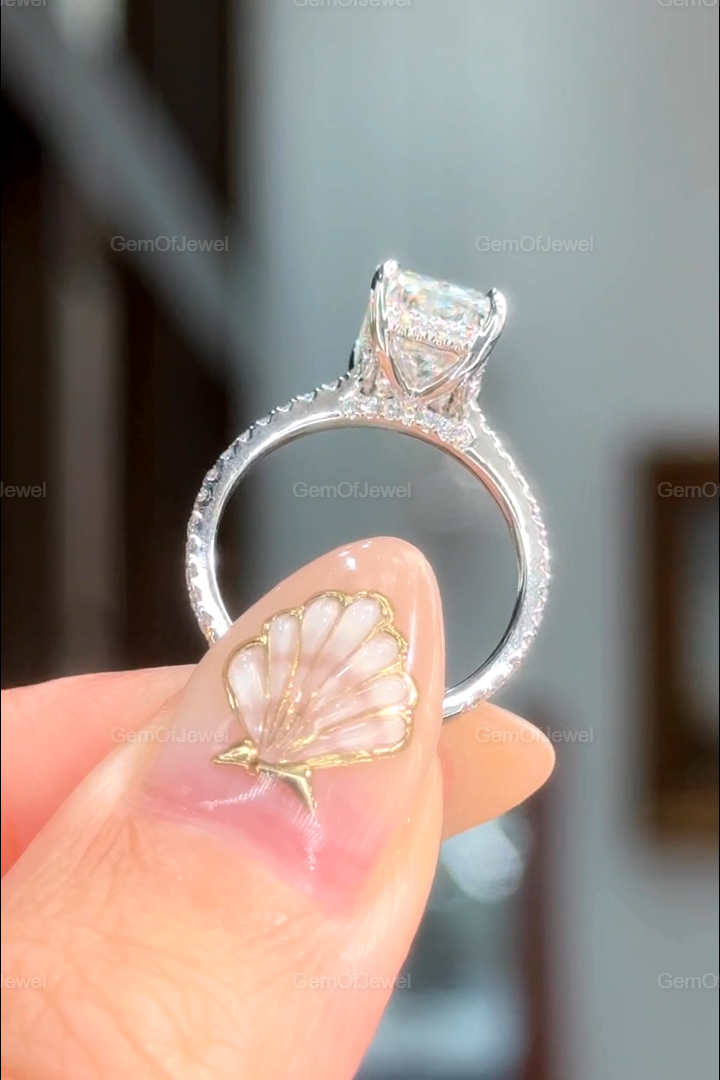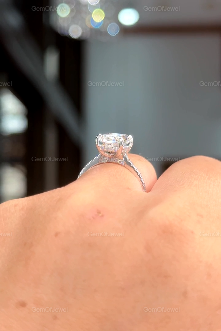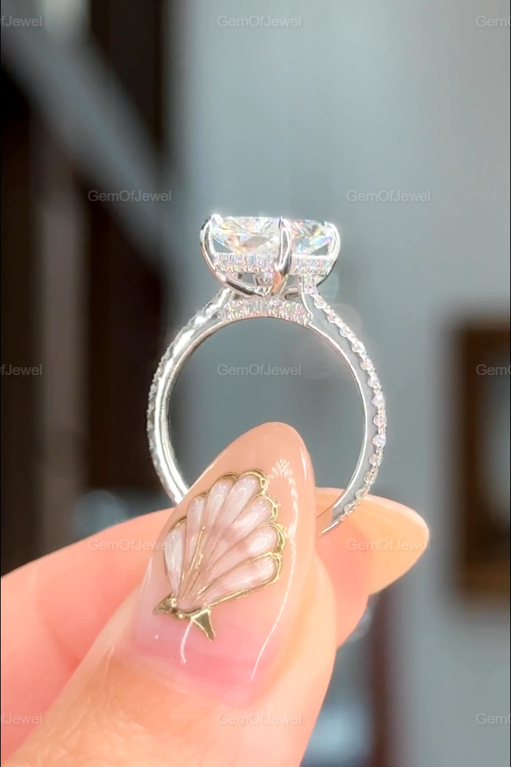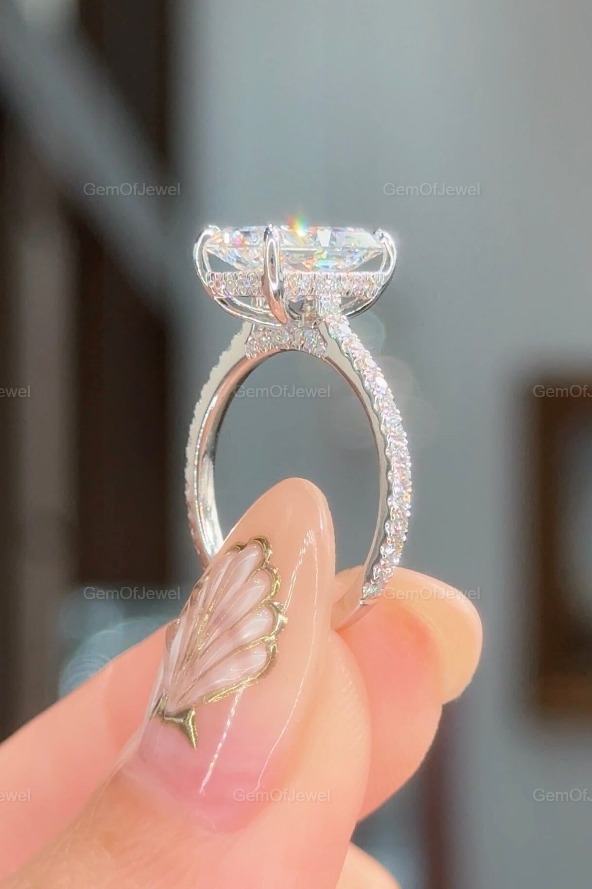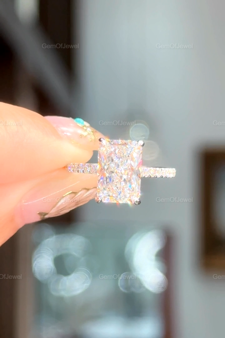 Radiant Cut Moissanite Hidden Halo Diamond Engagement Ring, 14k Gold Moissanite Ring, 3.00 CT Radiant Moissanite Diamond Claw Prong Ring