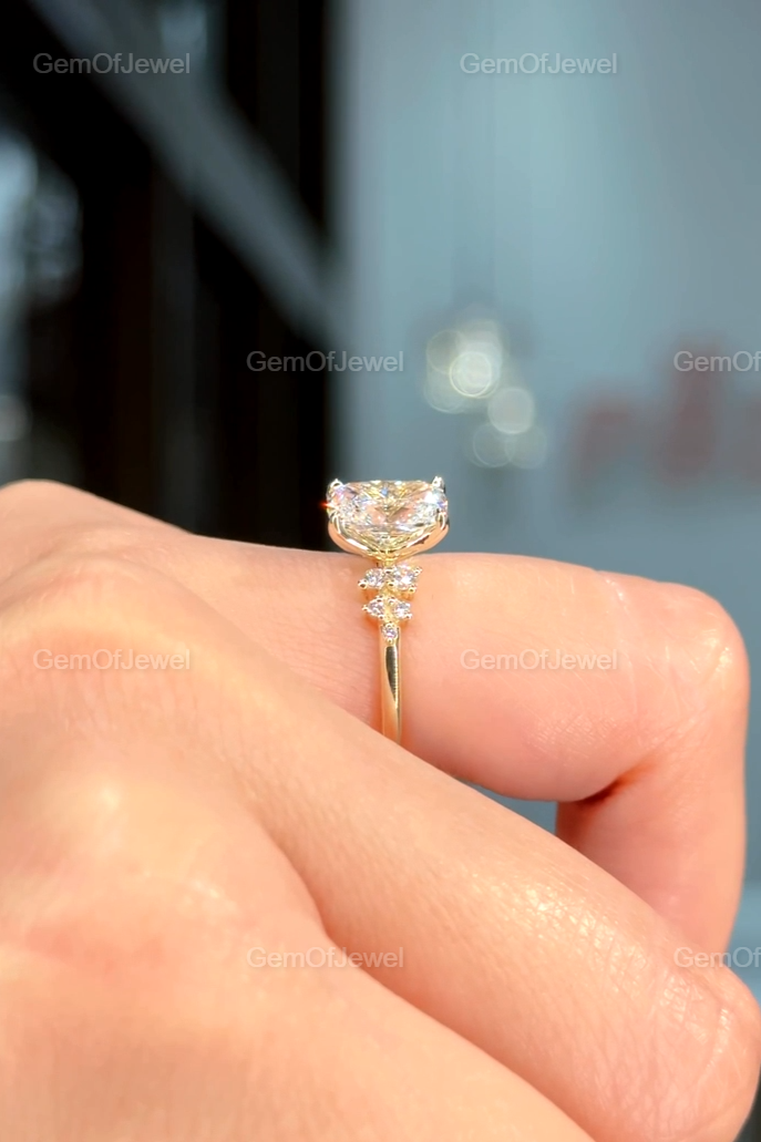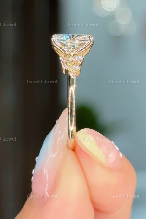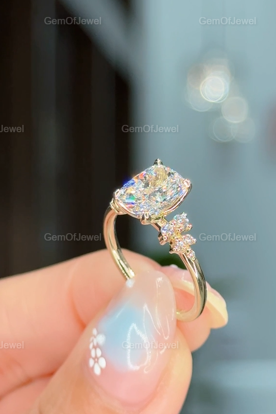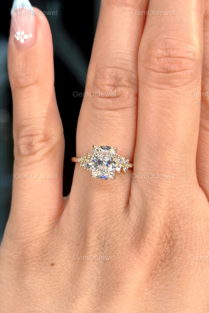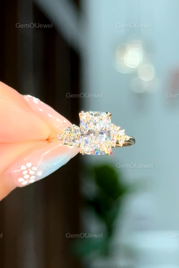 2CT Cushion Diamond Moissanite Ring With Side Round Moissanite Diamond, 2CT Diamond Ring For Her, Cluster Setting Ring, 2CT Cushion Ring