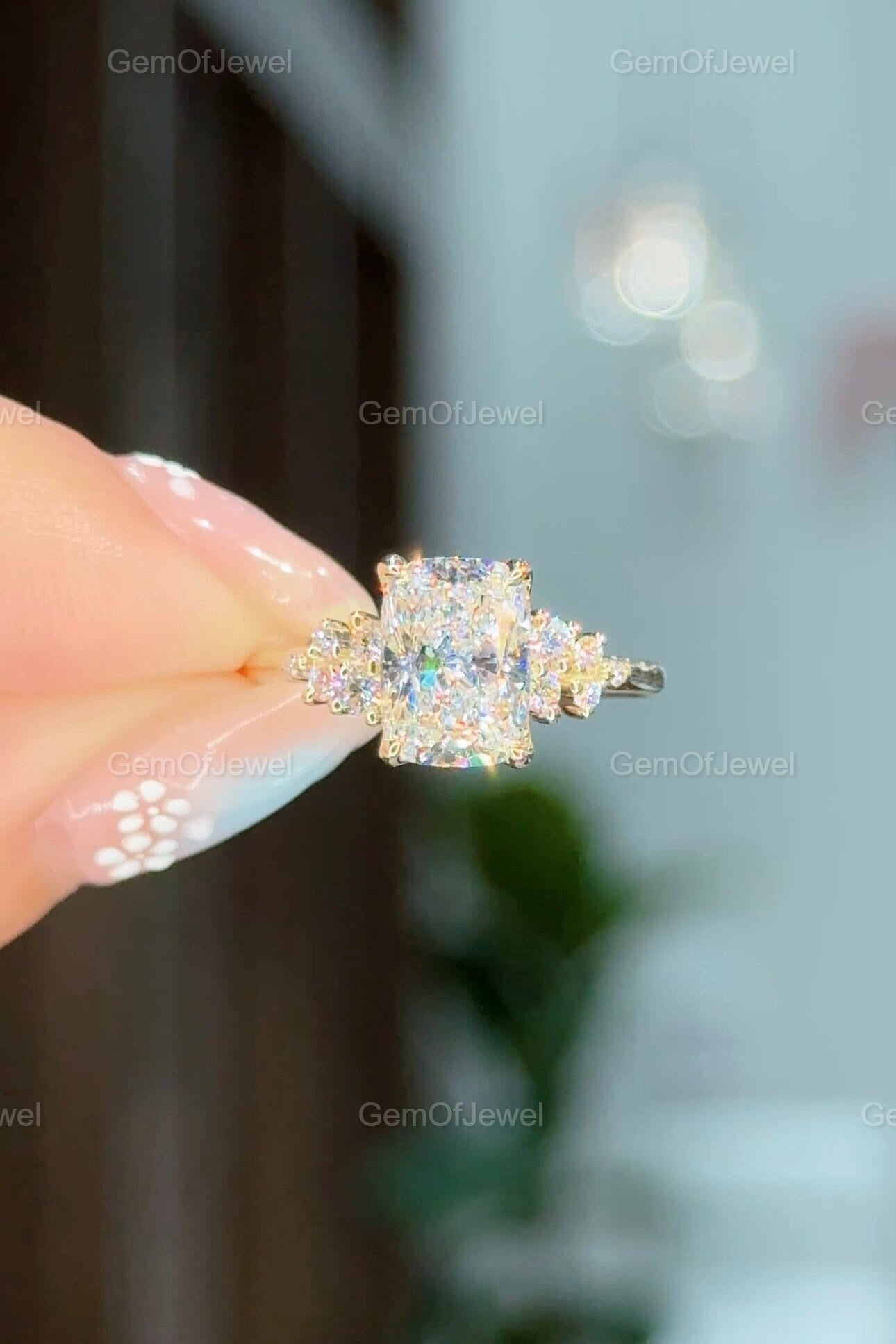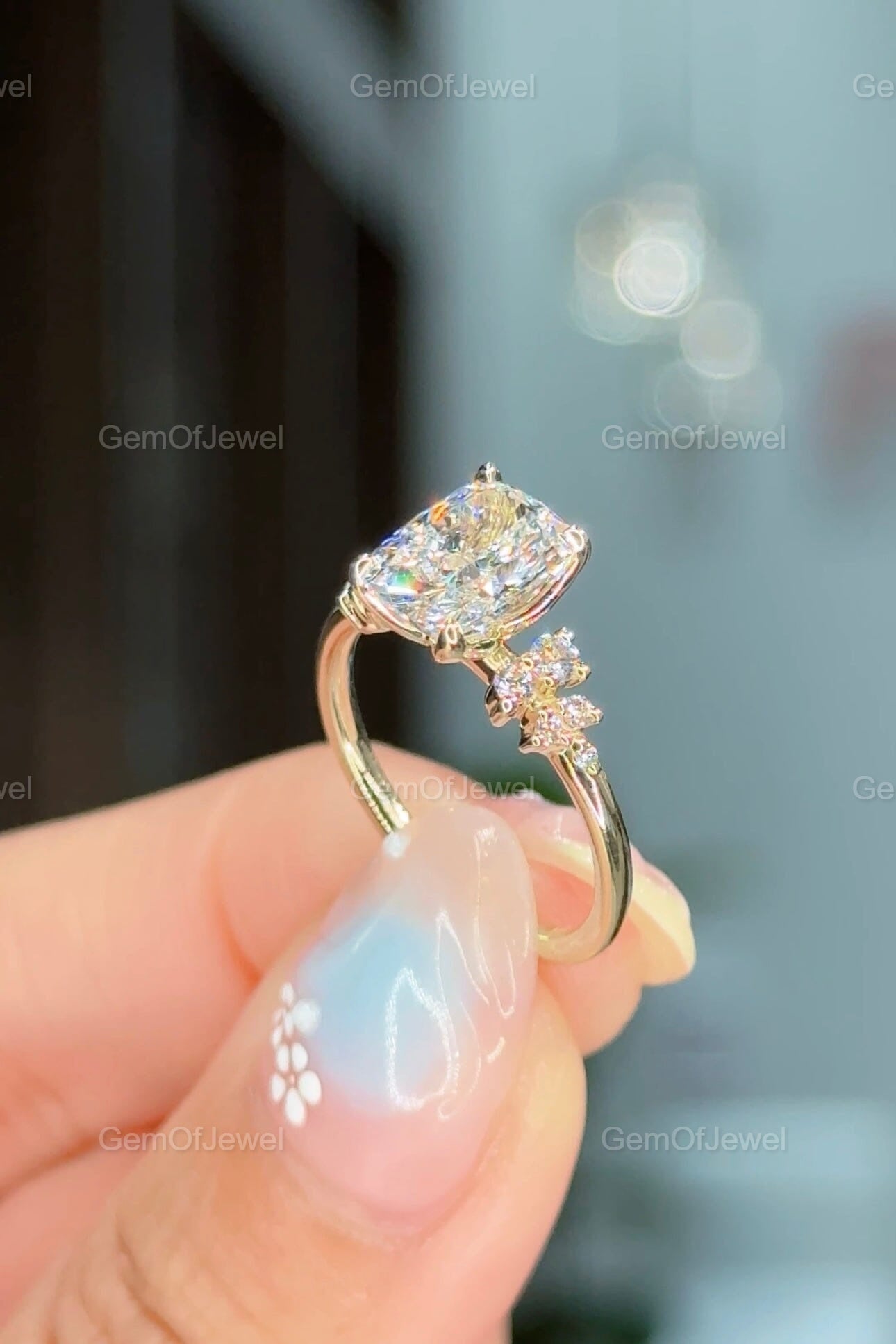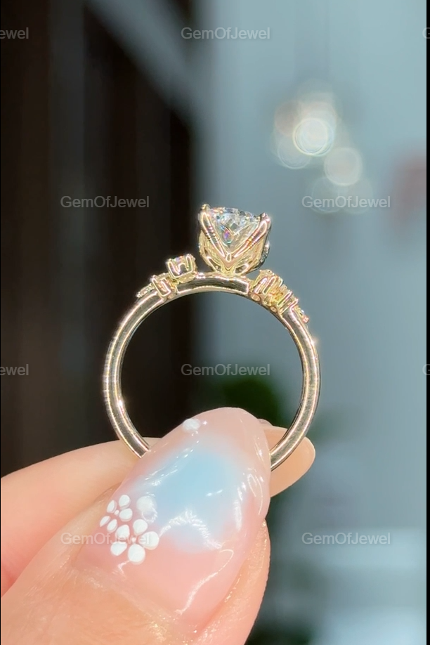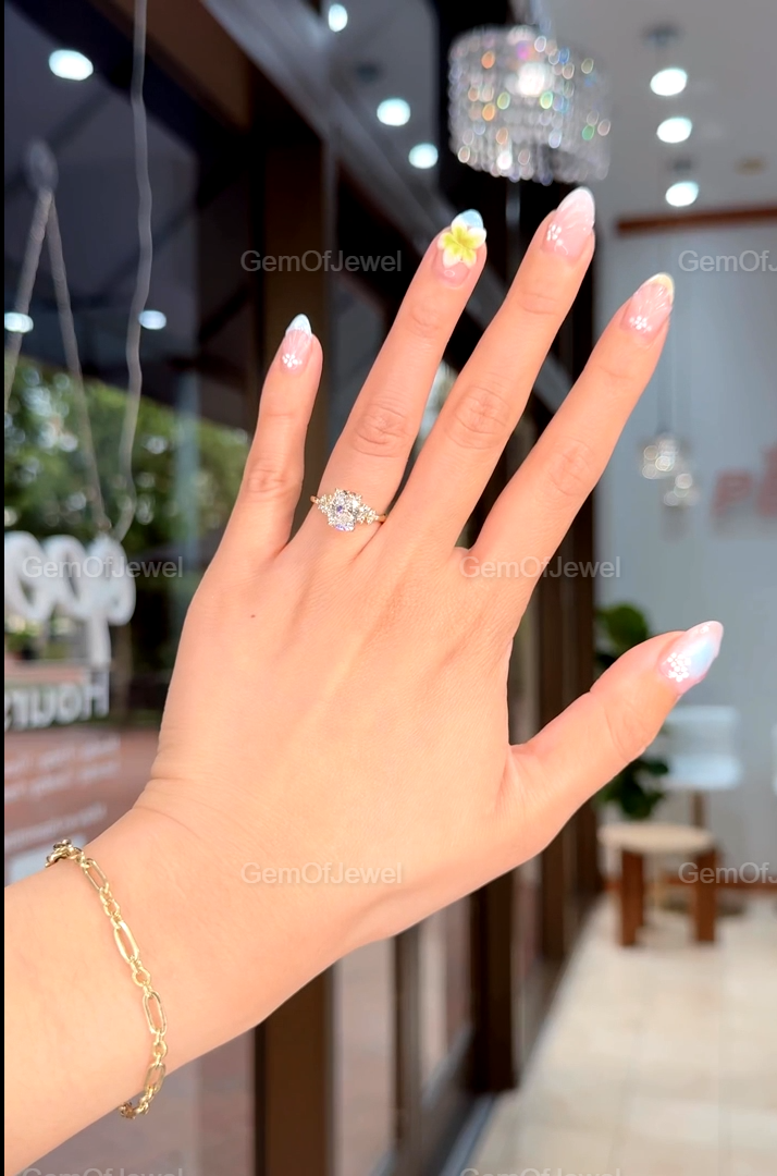 2CT Cushion Diamond Moissanite Ring With Side Round Moissanite Diamond, 2CT Diamond Ring For Her, Cluster Setting Ring, 2CT Cushion Ring