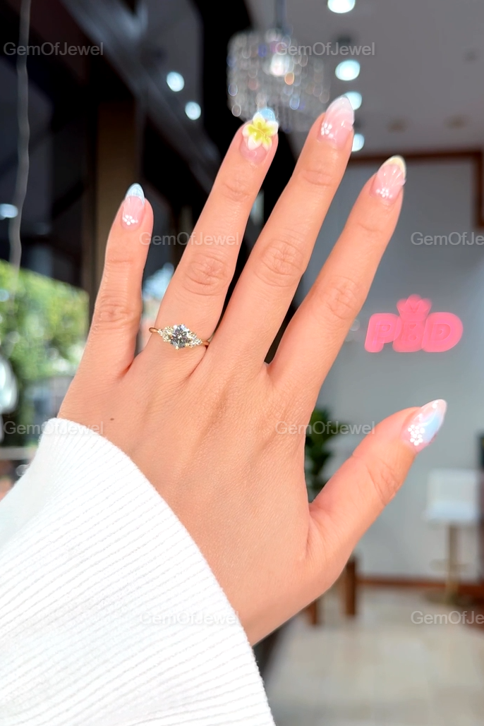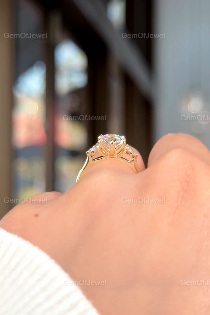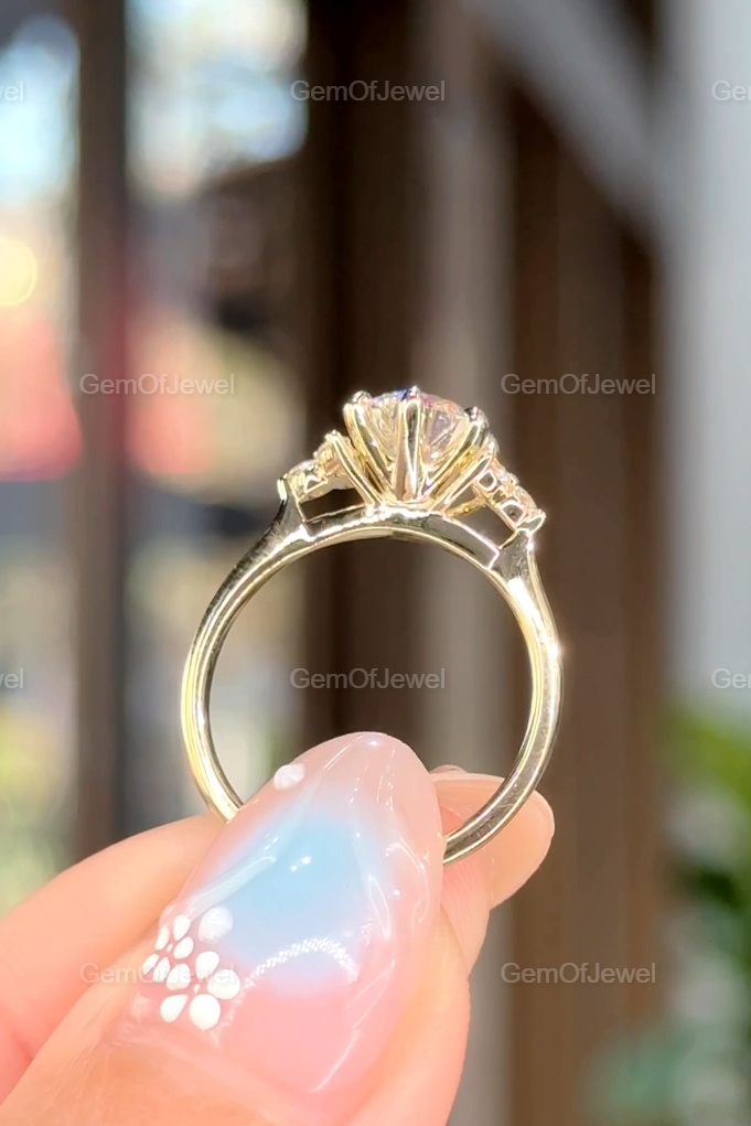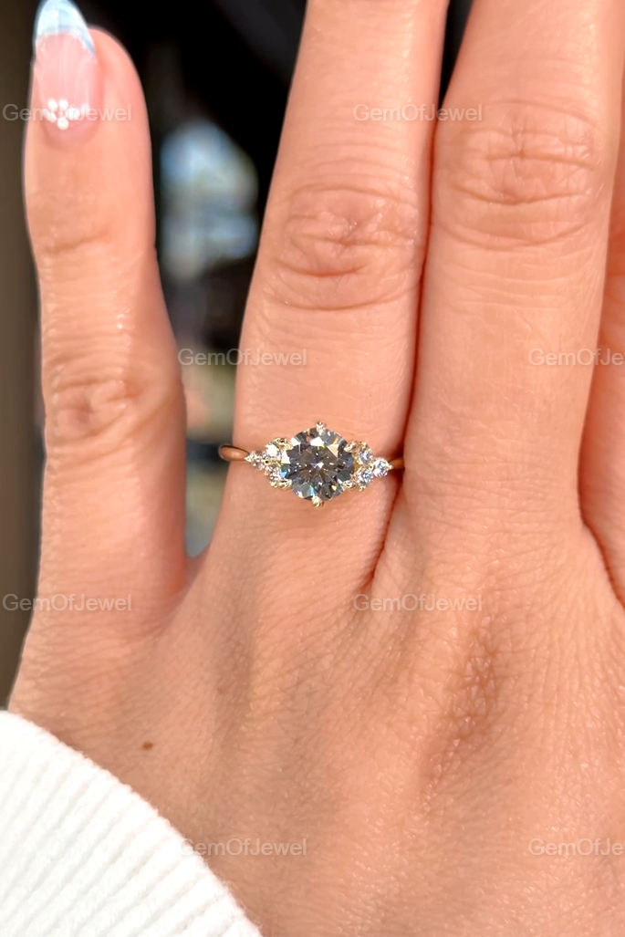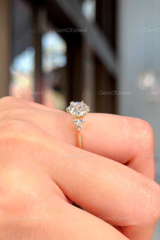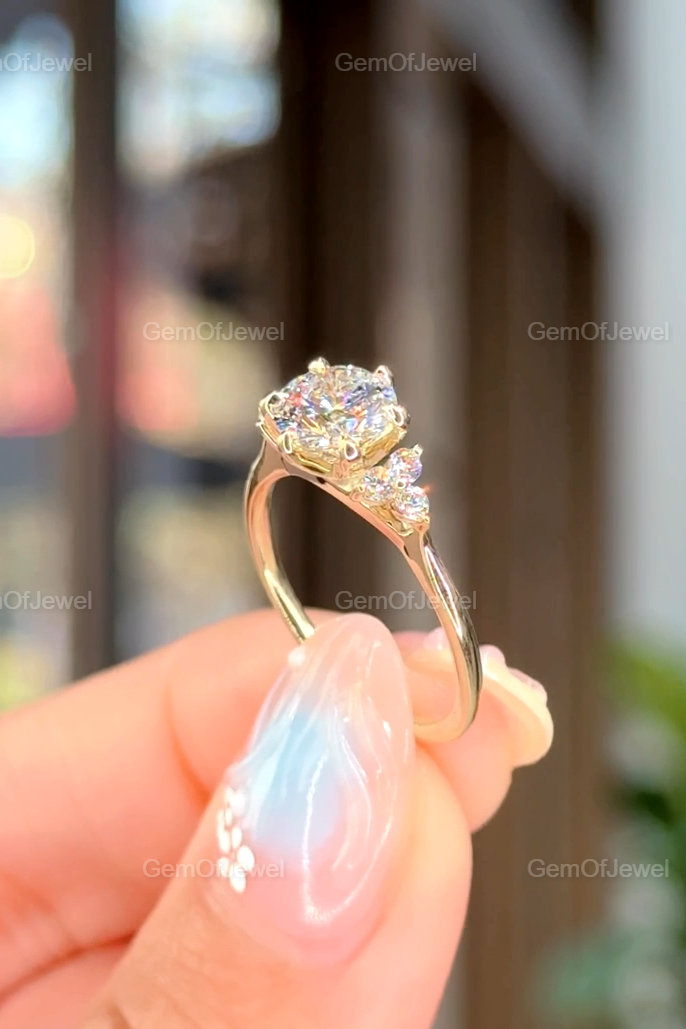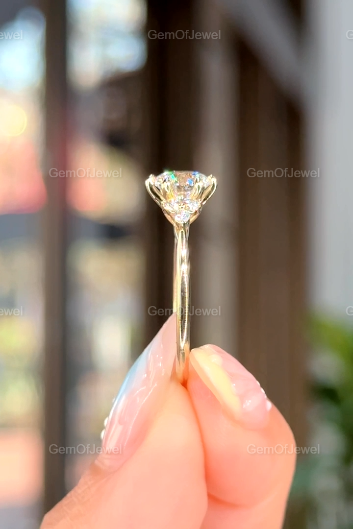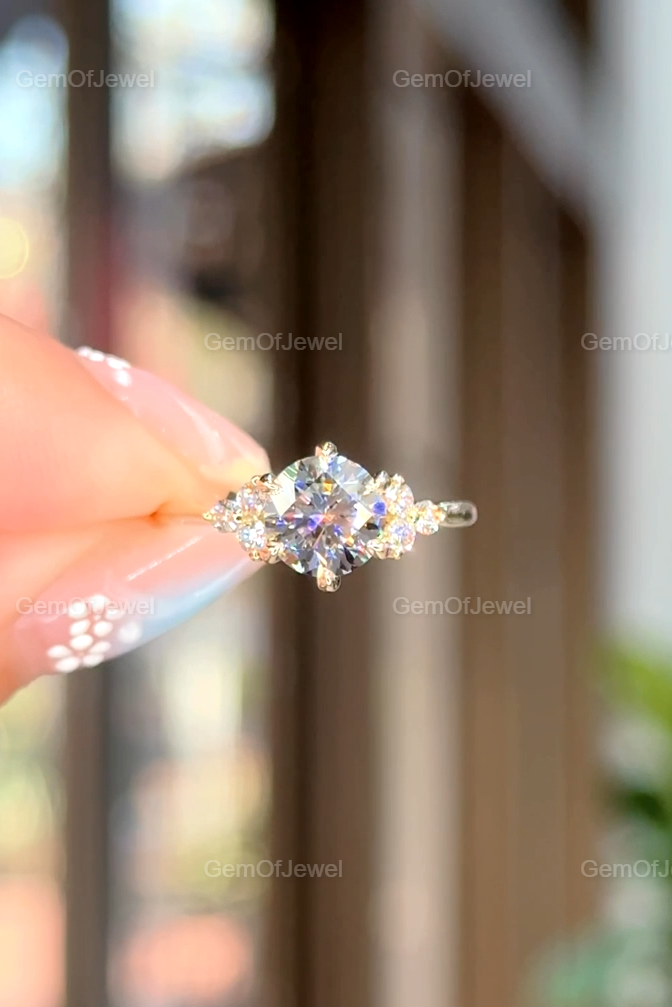1.2CT Round Moissanite Ring With Side Round Diamonds, Cluster Setting Engagement Ring, Round Moissanite Diamond Gold Ring Gift For Her