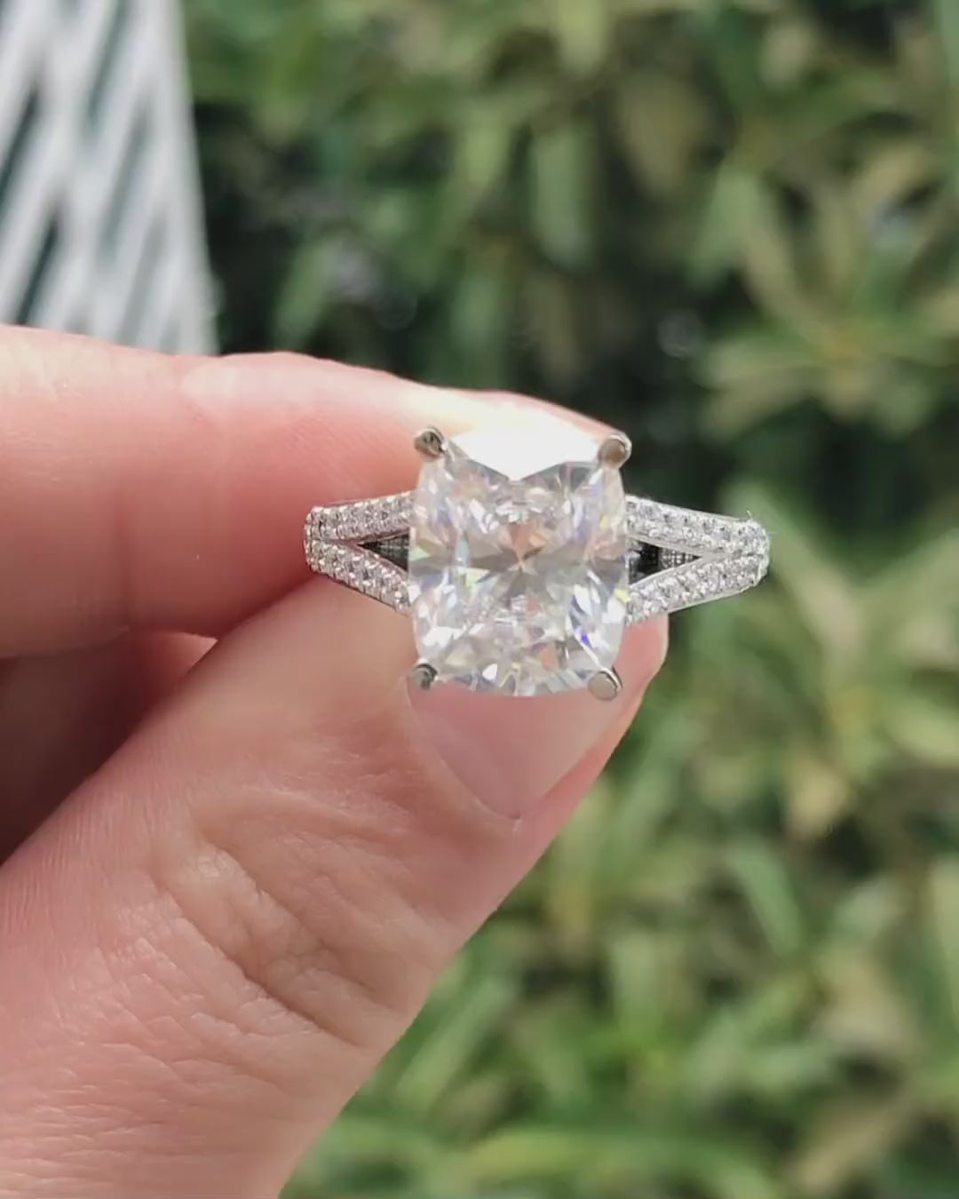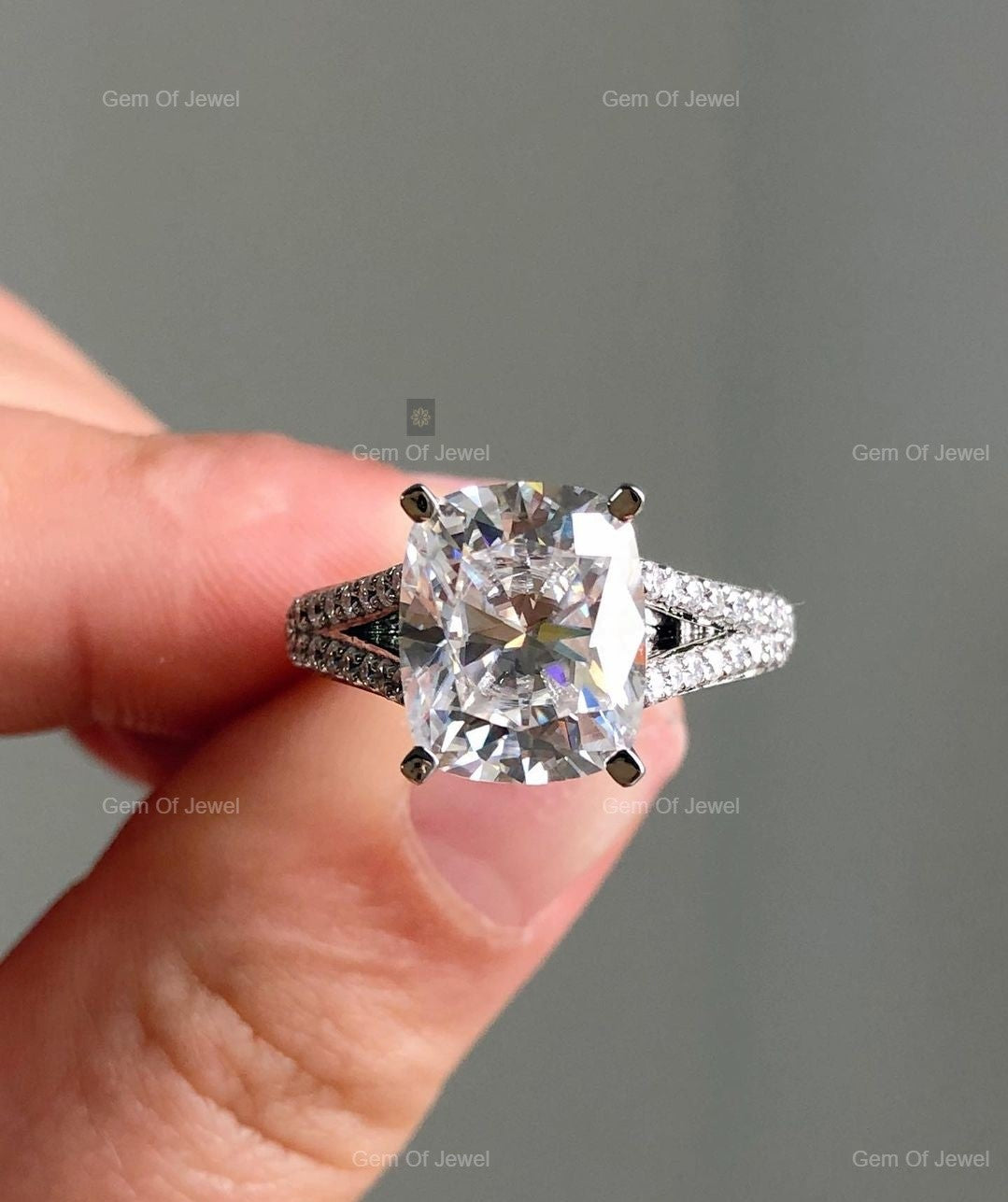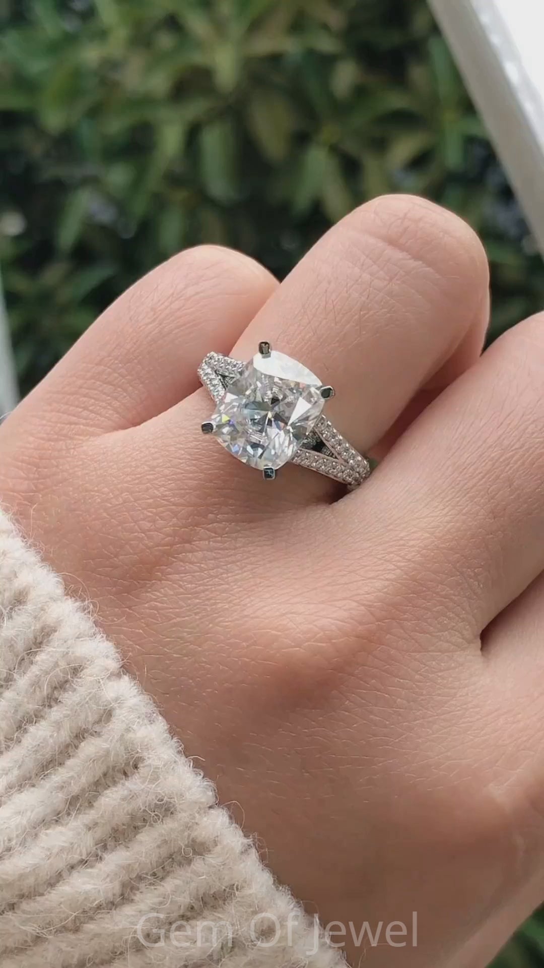 2CT Cushion Moissanite Diamond Ring, Elongated Cushion Diamond With Split Shank Band, Elongated Cushion Moissanite Diamond Ring For Her