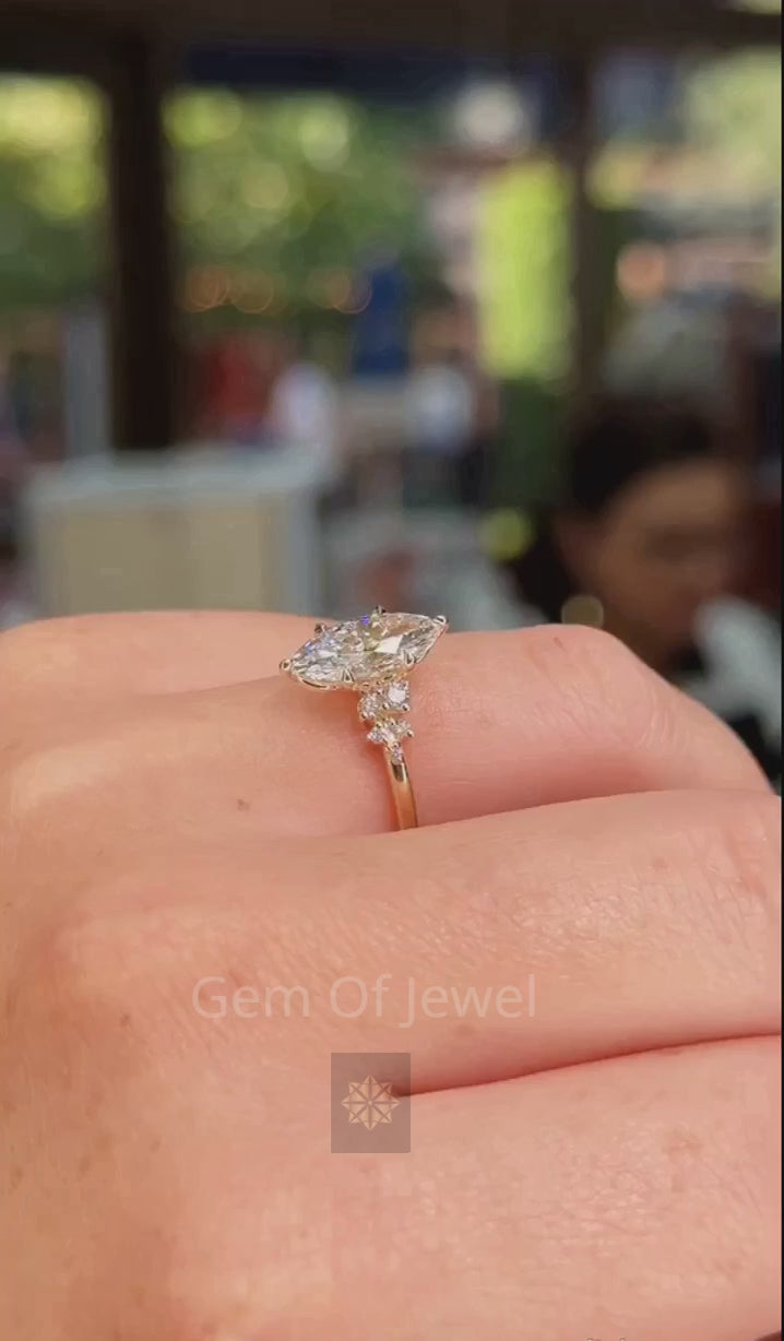 2CT Marquise Diamond Moissanite Ring With Side Round Moissanite Diamond, 2CT Diamond Ring For Her, Cluster Setting Ring , 2CT Marquise Ring