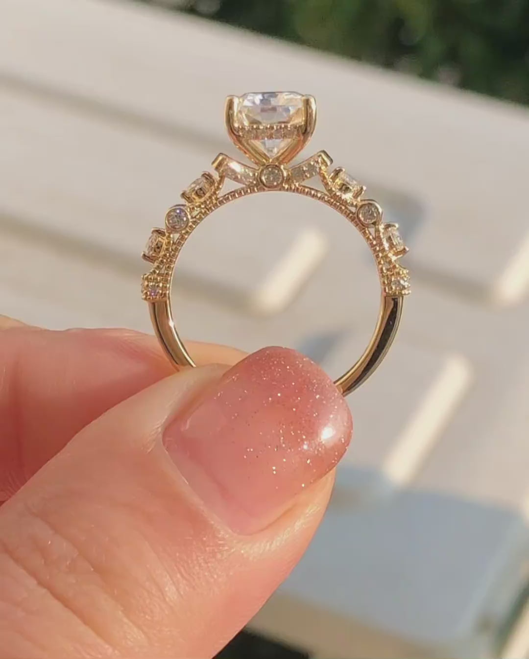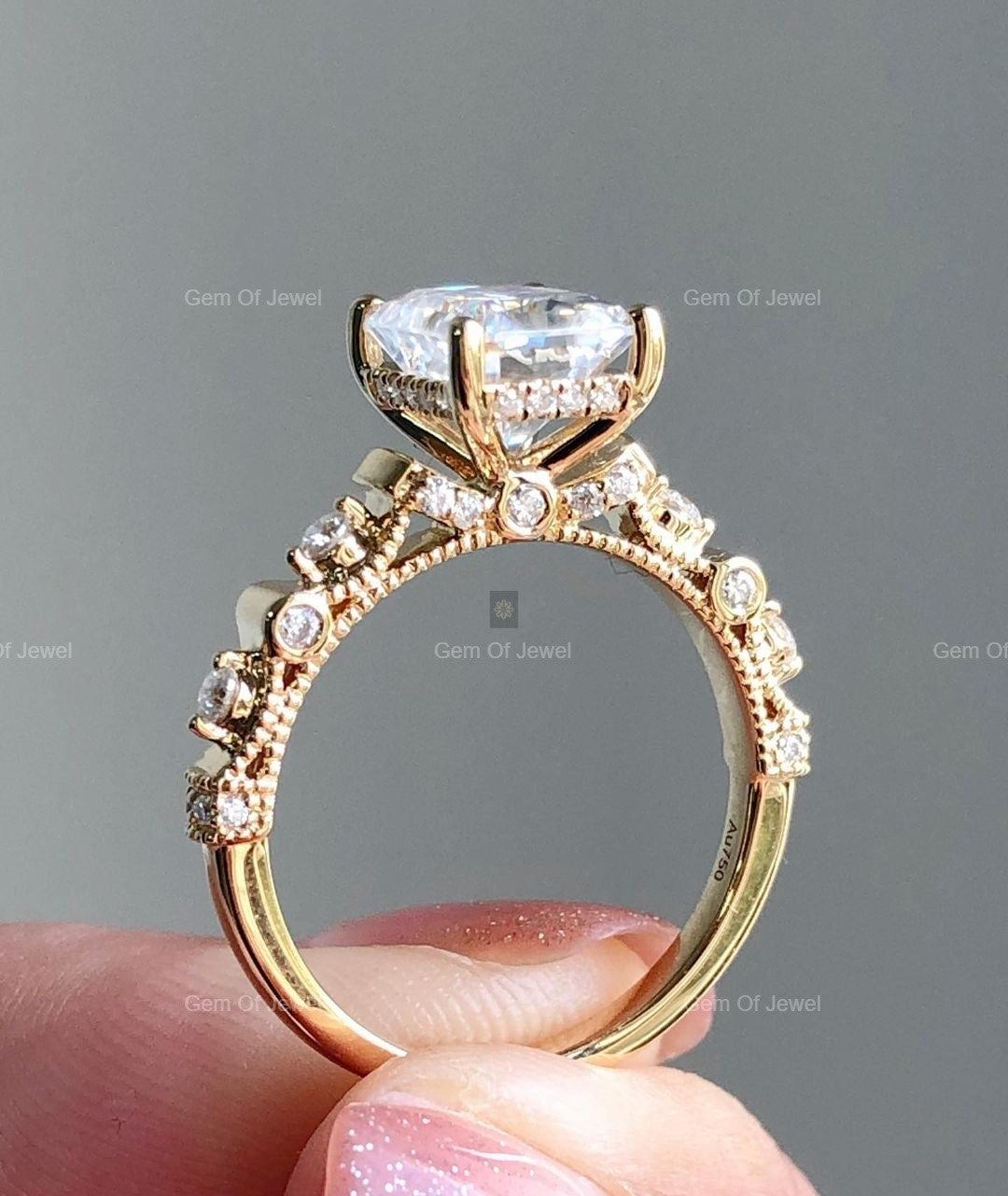 • Side Diamonds: Round Moissanite0.70Ct Approx. Total