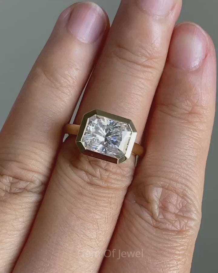 Radiant Cut Moissanite Bezel Set Solitaire ring Moissanite Diamond Gold Ring, Radiant Moissanite Diamond Ring, Bezel Set Ring, Radiant Ring