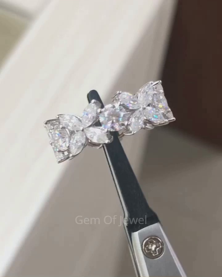 Marquise Moissanite Diamond Ring With Round Moissanite Flower Shape Diamond Ring, Marquise Diamond Ring, Flower Shape Marquise Diamond Ring