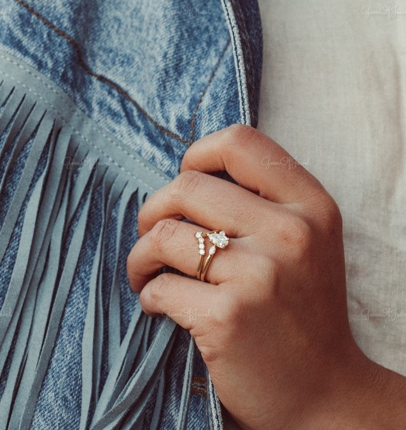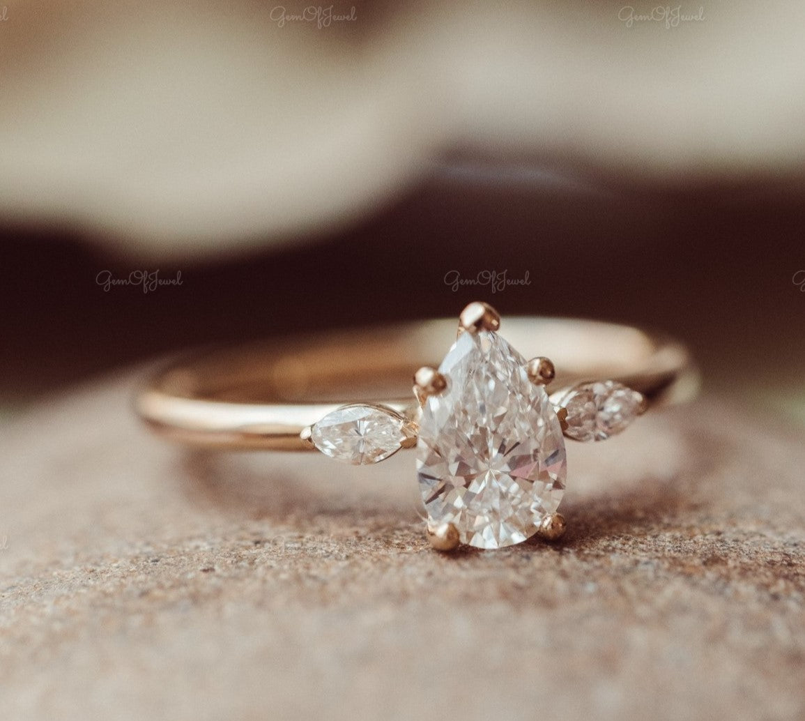1 CT Pear Moissanite Diamond Engagement Ring With Side Marquise Moissanite Diamond Three Stone Diamond Ring , Marquise Diamond Ring For Her