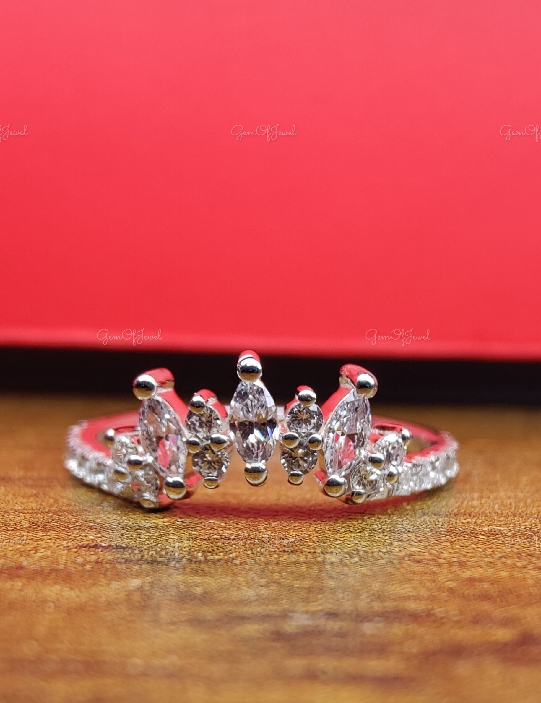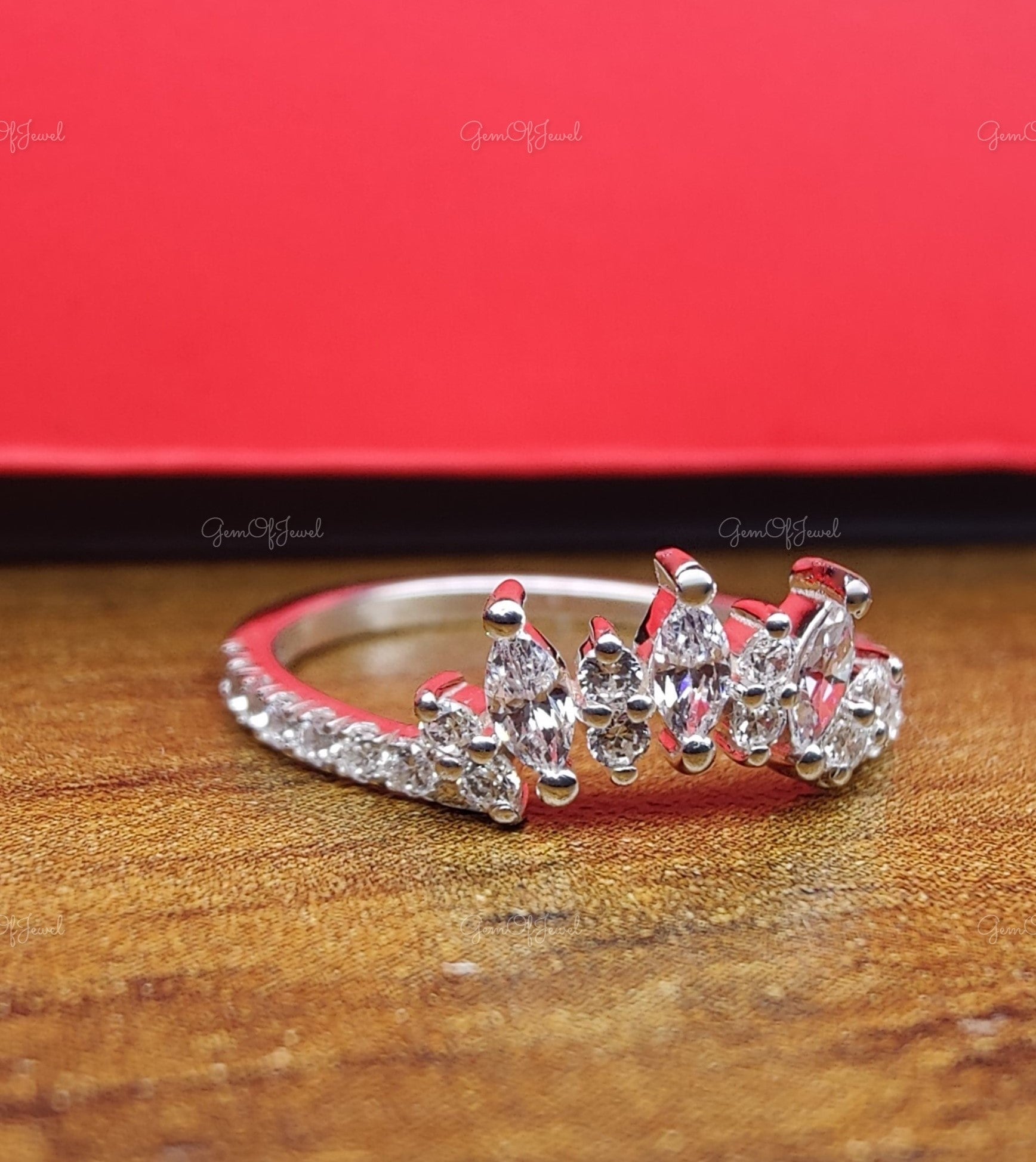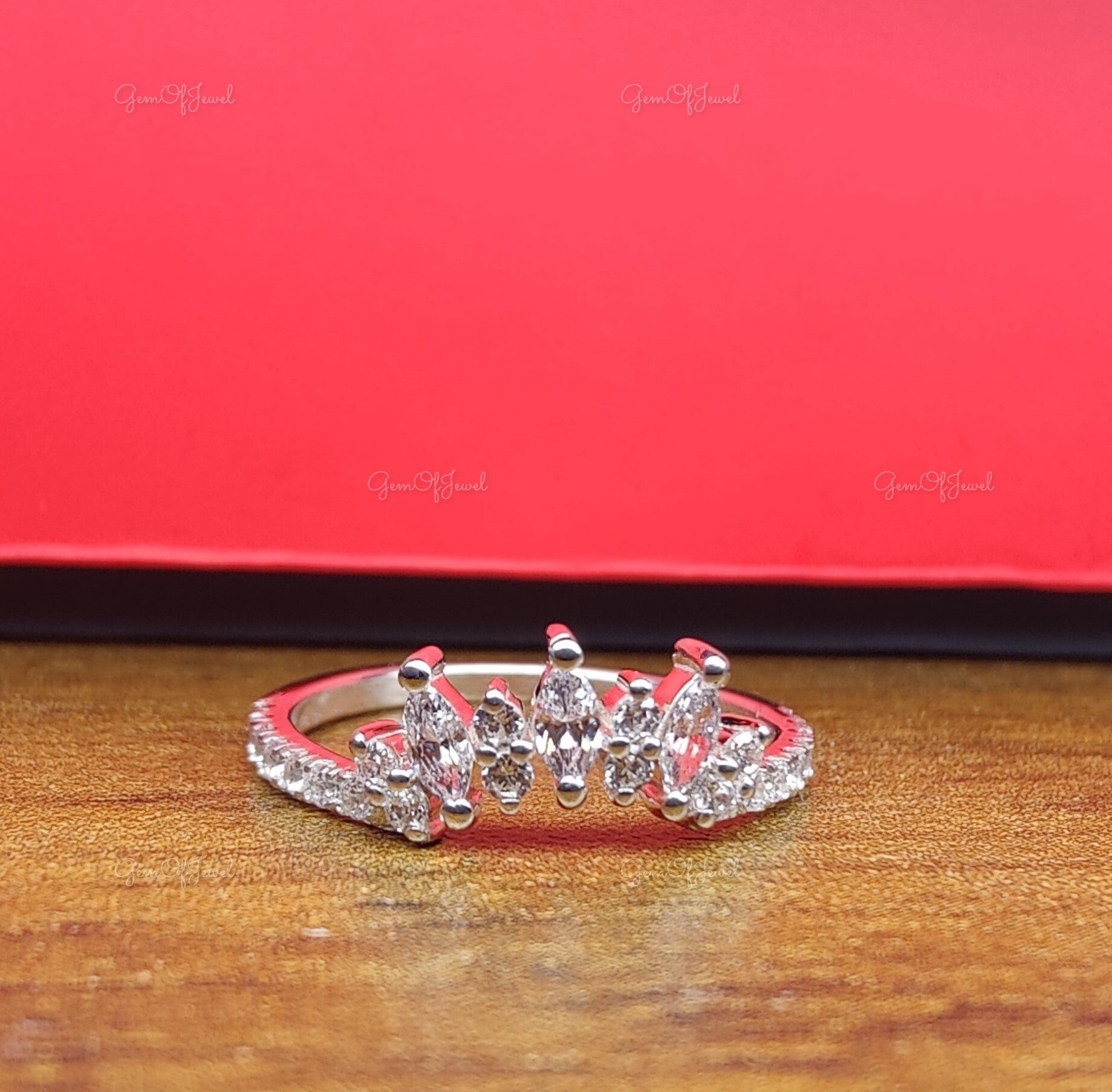 Marquise Moissanite And Round Moissanite Diamond Wedding Band,Wedding band For Her ,Flower Wedding Band, Cluster Diamond Band For Her