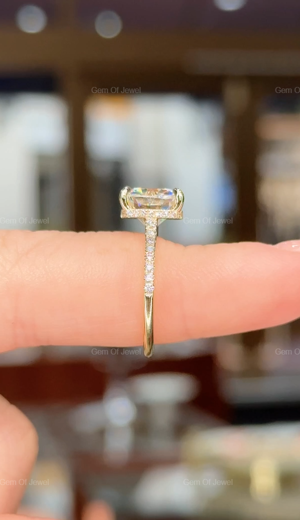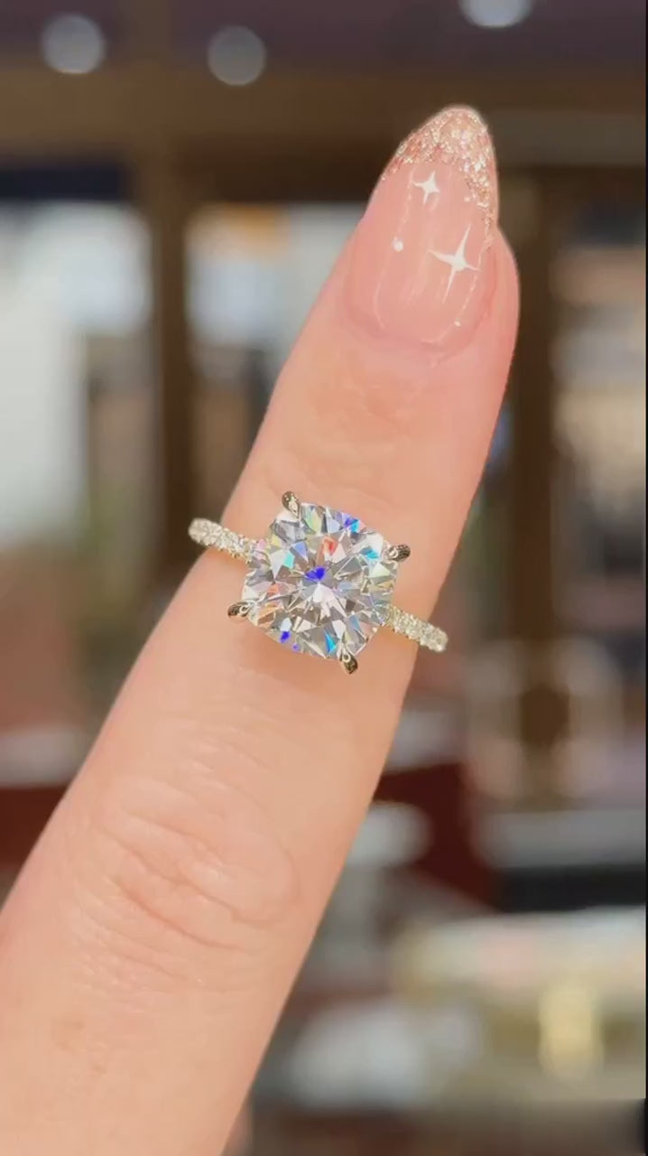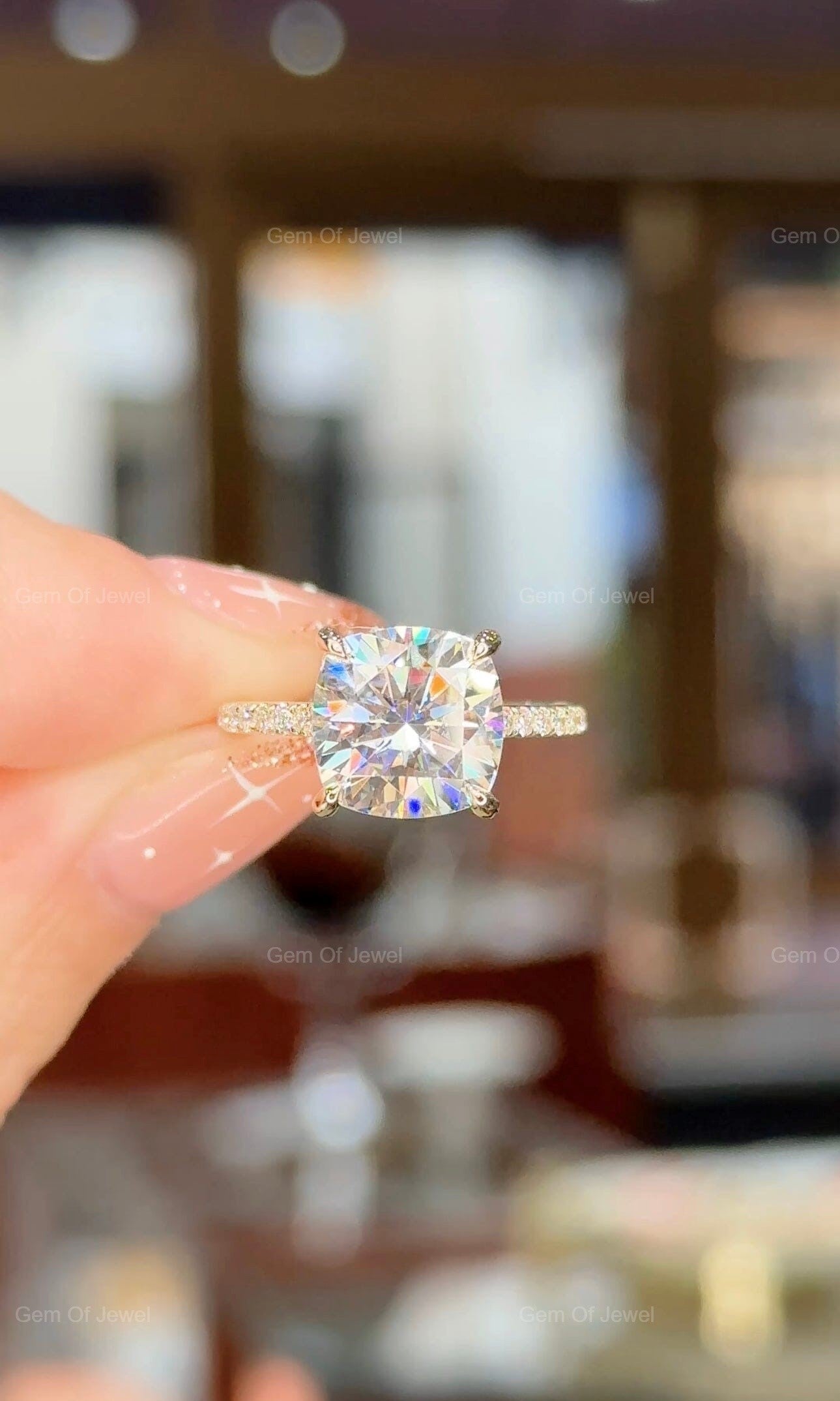 3.5CT Cushion Cut Moissanite Diamond With Round Moissanite Diamond Pave Eternity Ring, Cushion Cut Moissanite Engagement Ring For Her