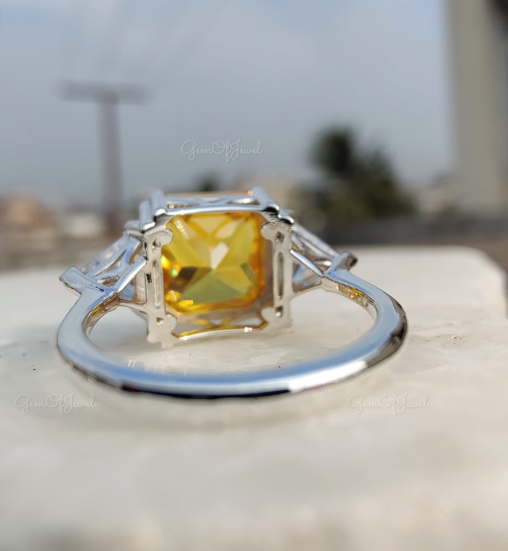Yellow Sapphire Diamond Ring Square Radiant Shape Three Stone Ring With Side Triangle Diamond Gold Ring Gift For Her Or Engagement Ring