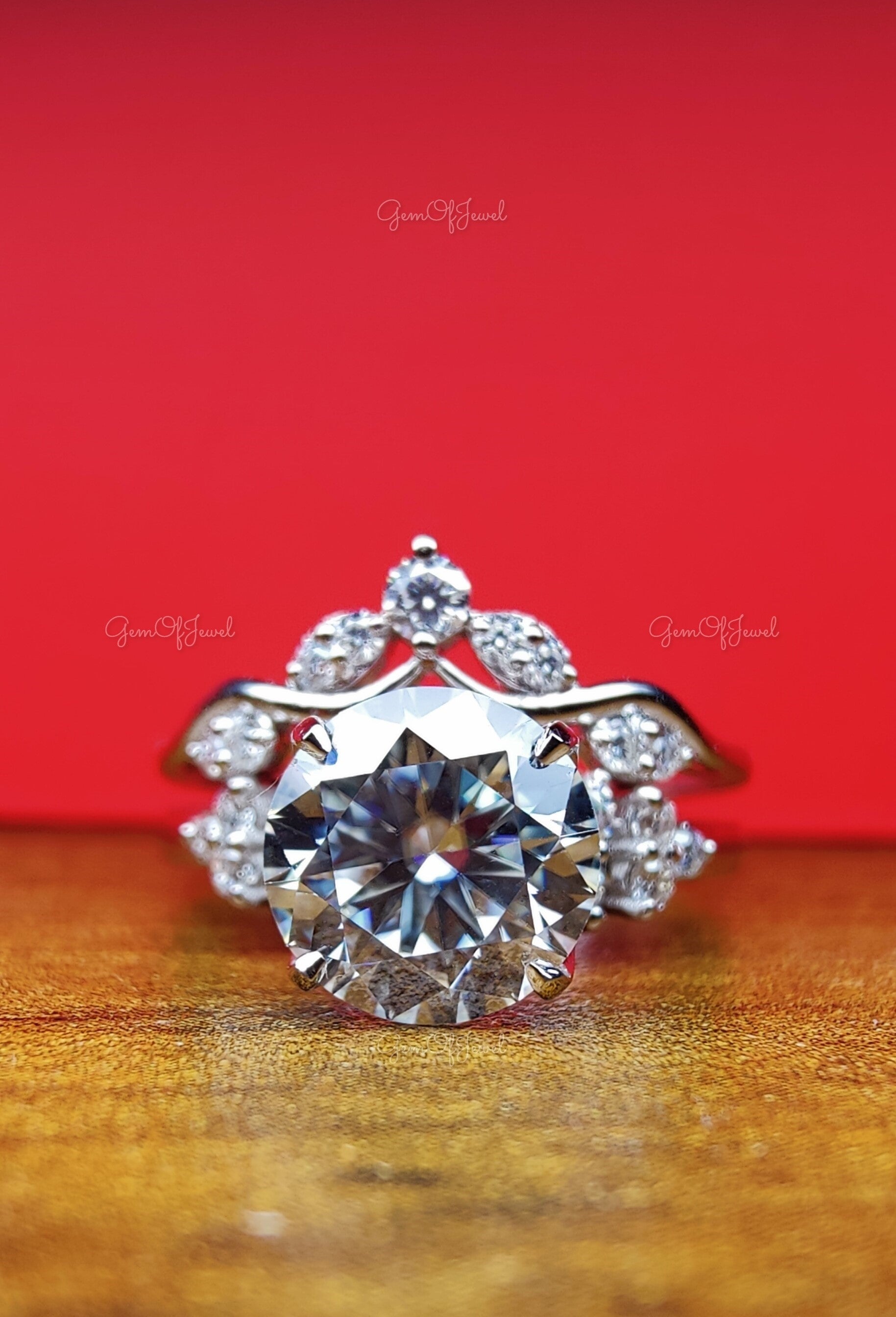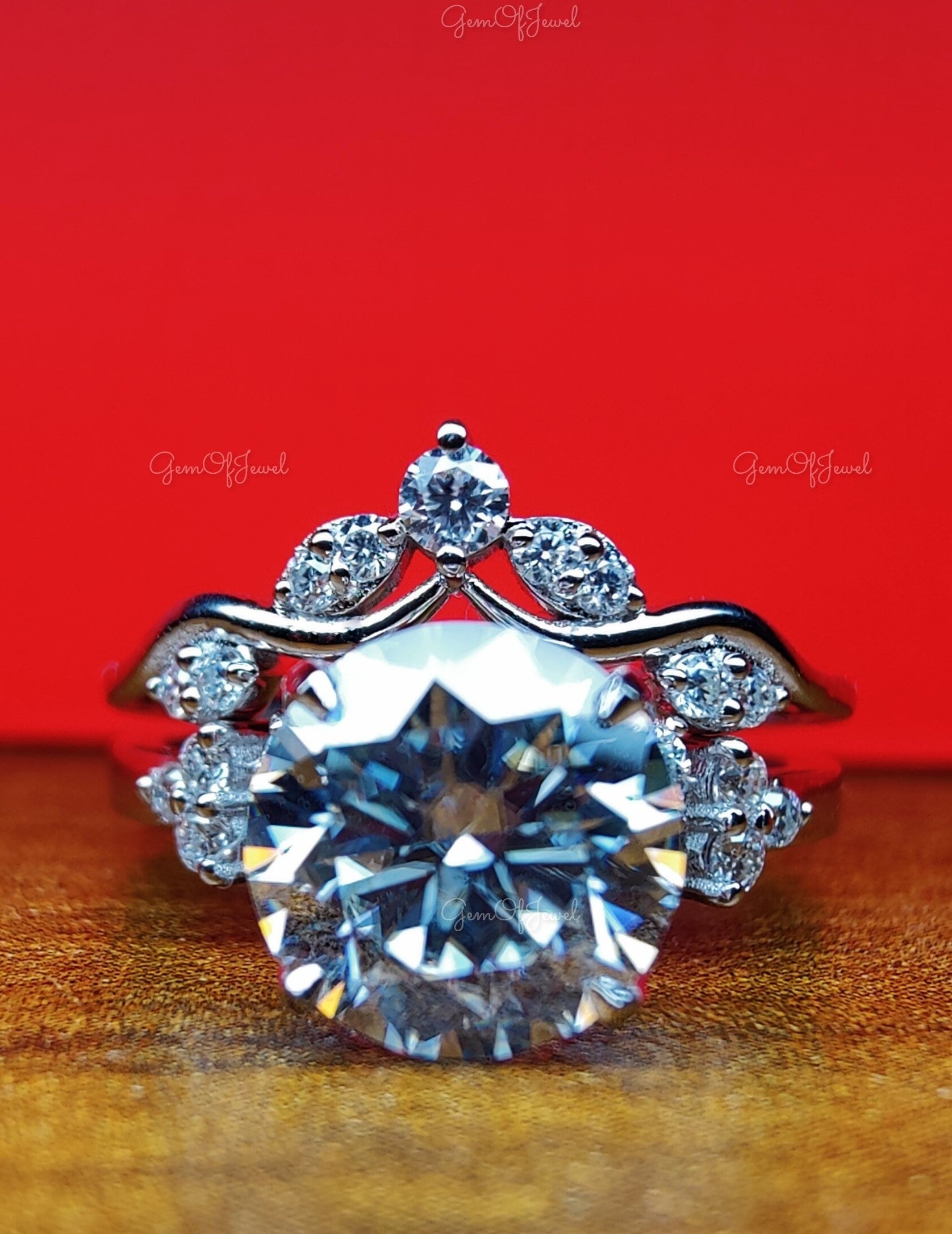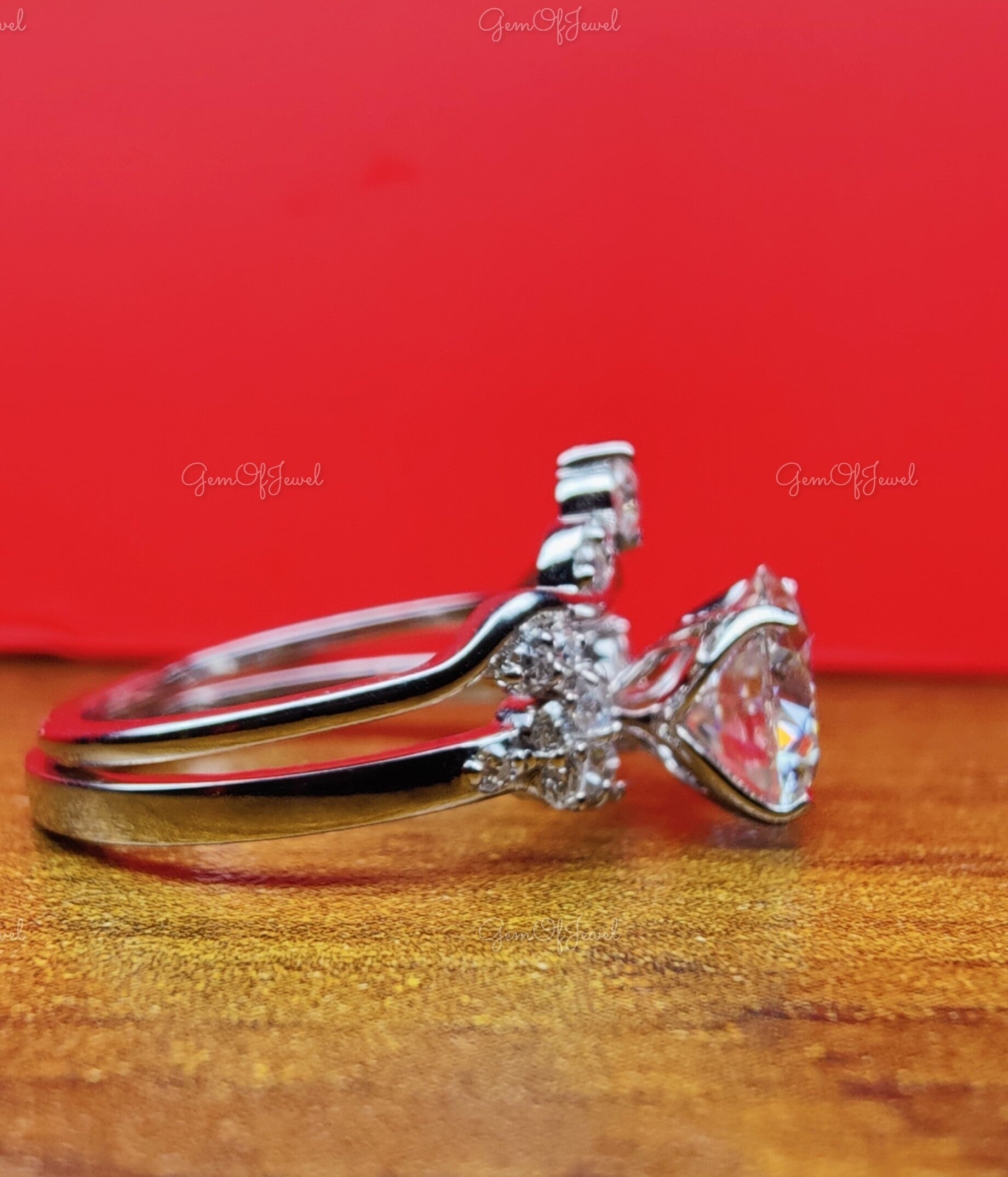 Round Diamond Moissanite Ring With Curved Diamond Band, Bridal set For Her, Round Cut Wedding Ring Bridal Set, Diamond Bridal Matching Set