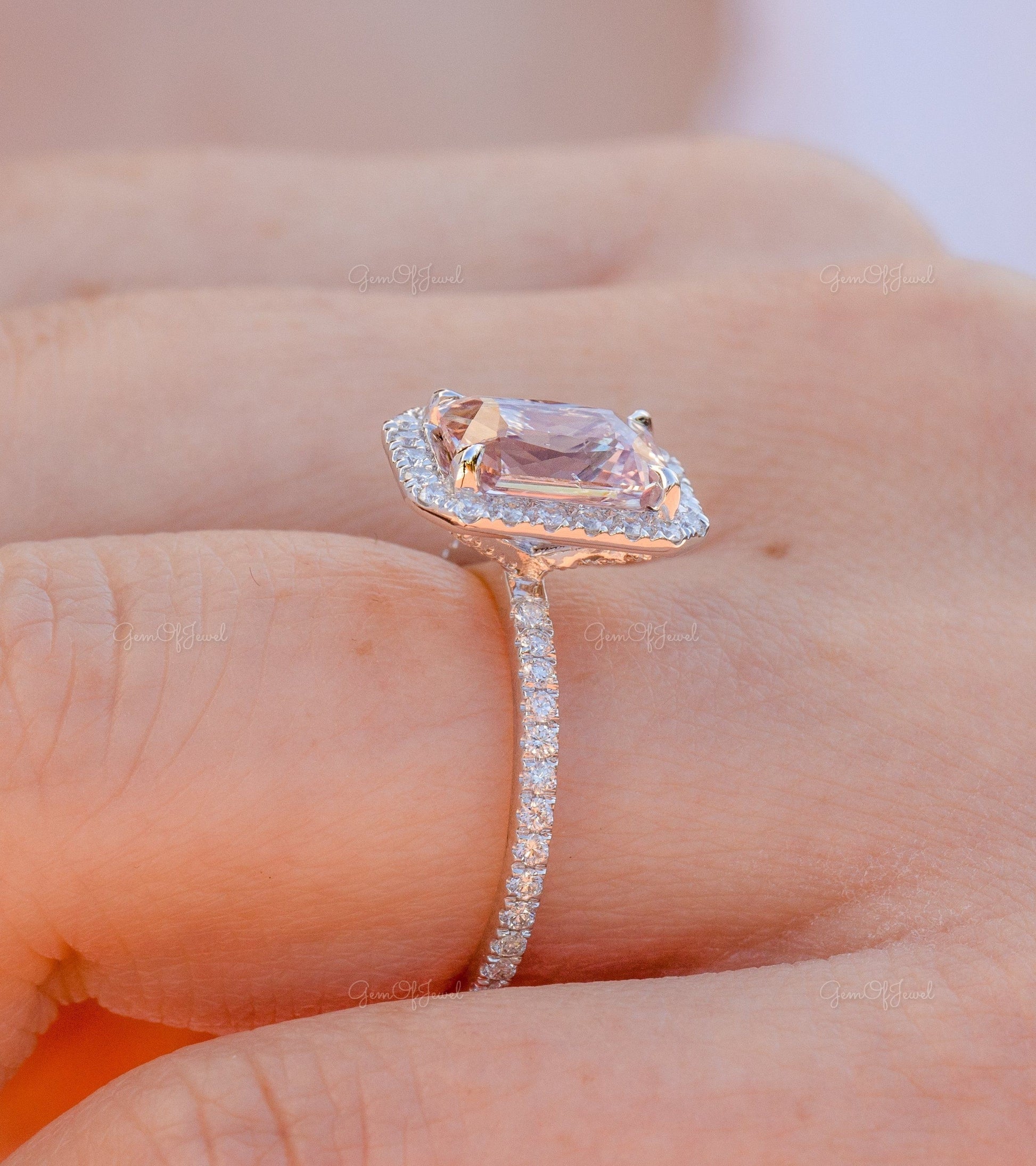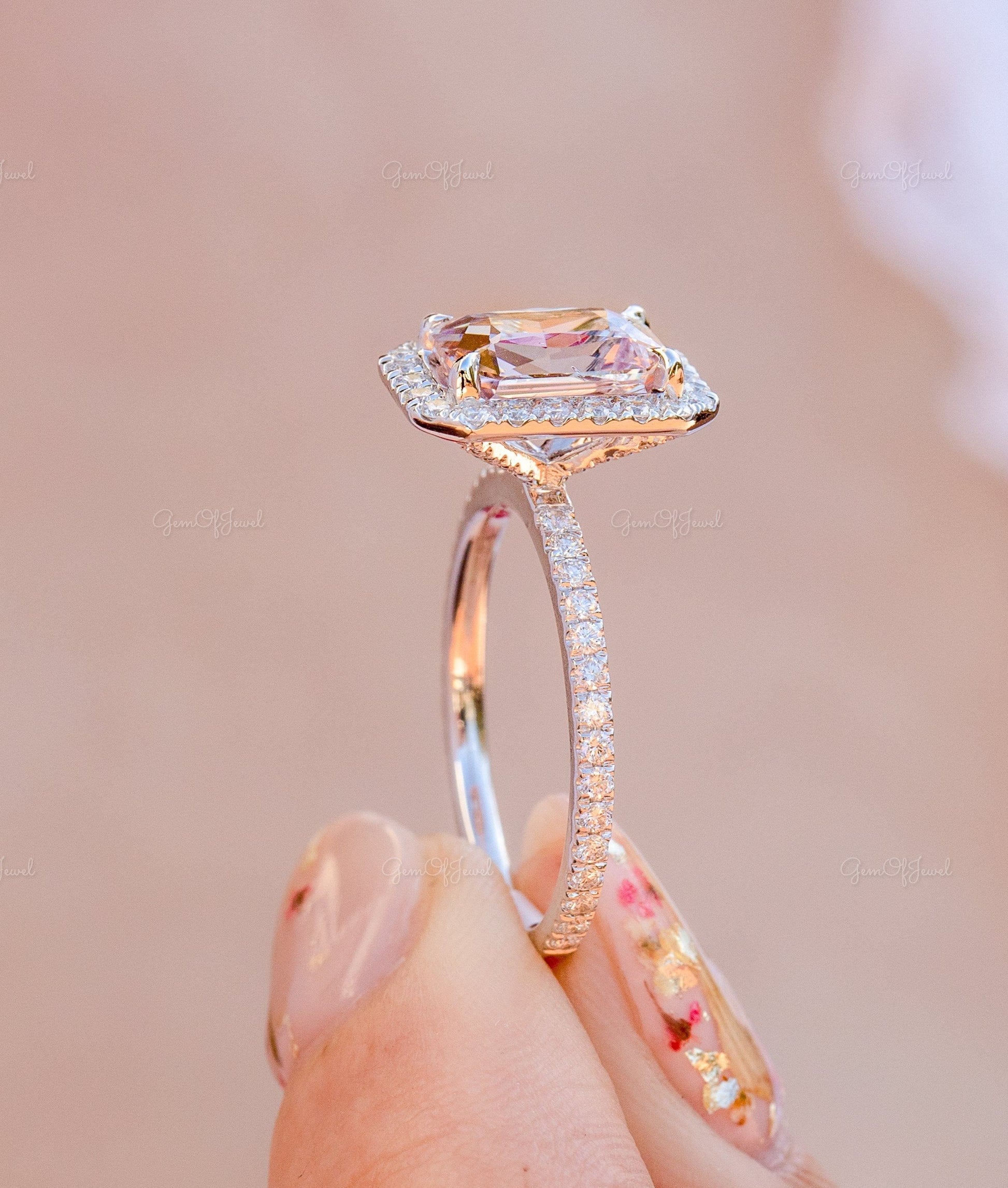 Radiant Cut Morganite Diamond Halo Ring, Morganite Diamond Ring, Radiant Cut Morganite Diamond Engagement Ring For Her, Pink Morganite Ring