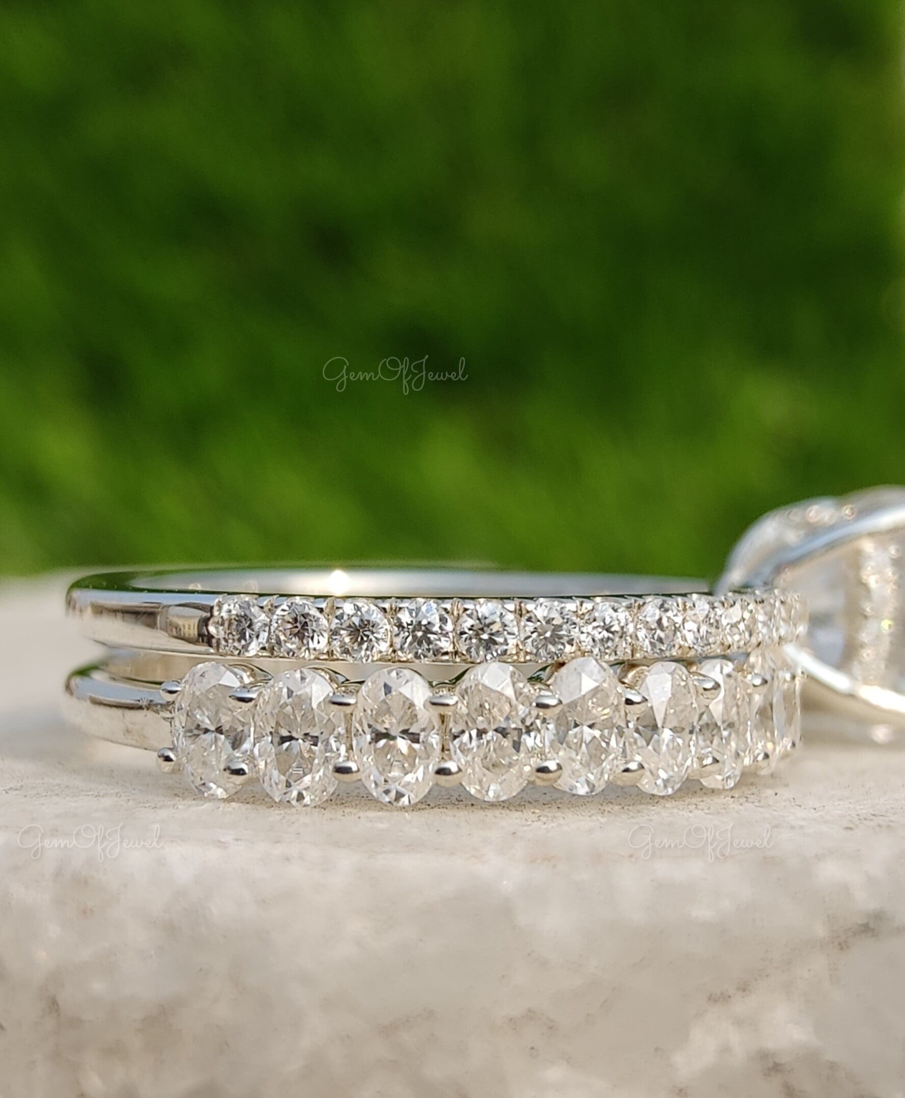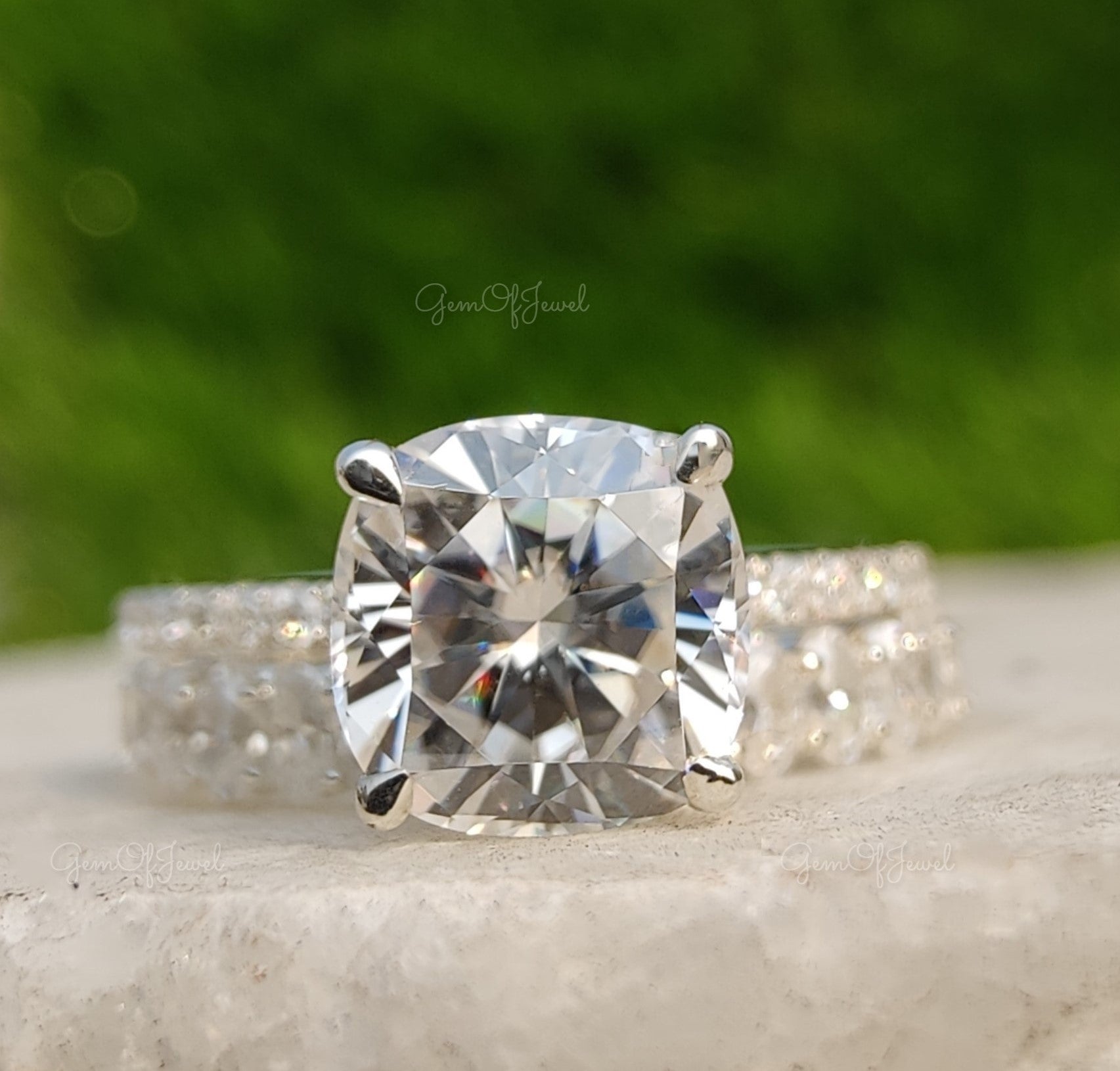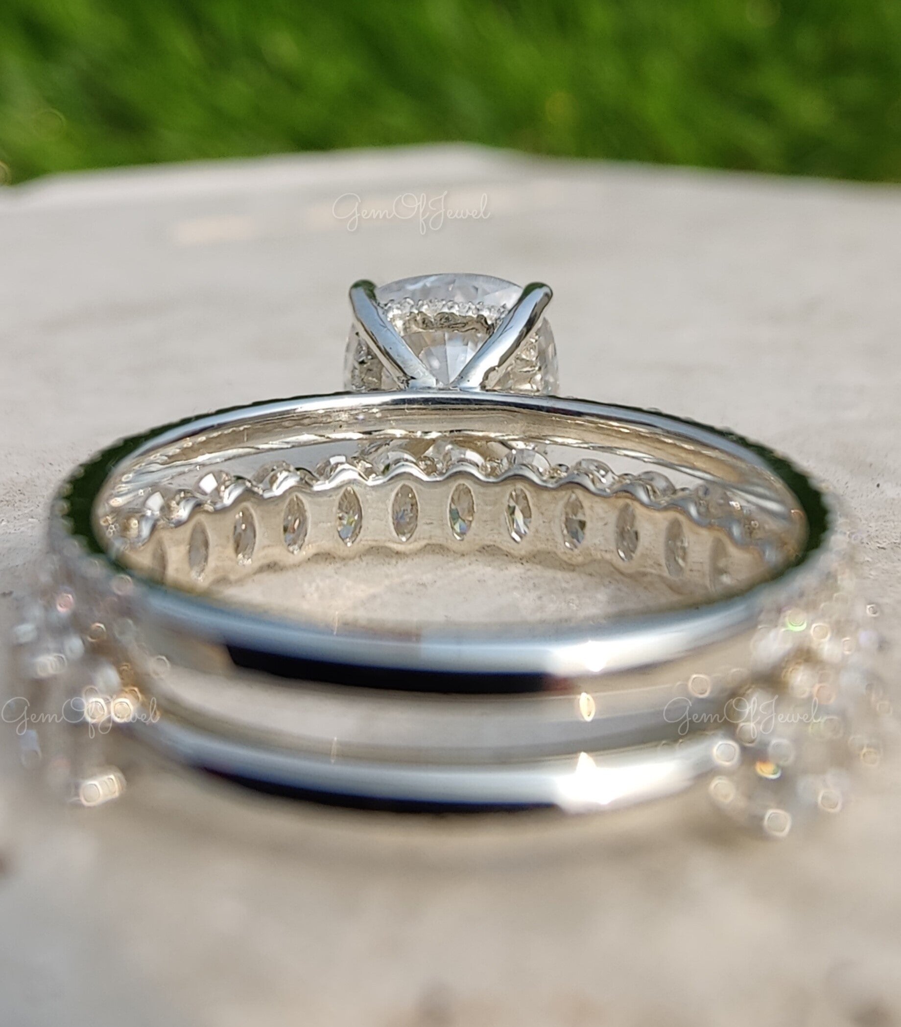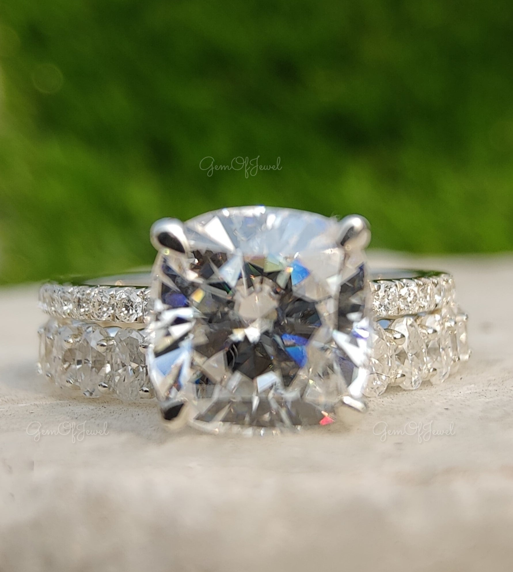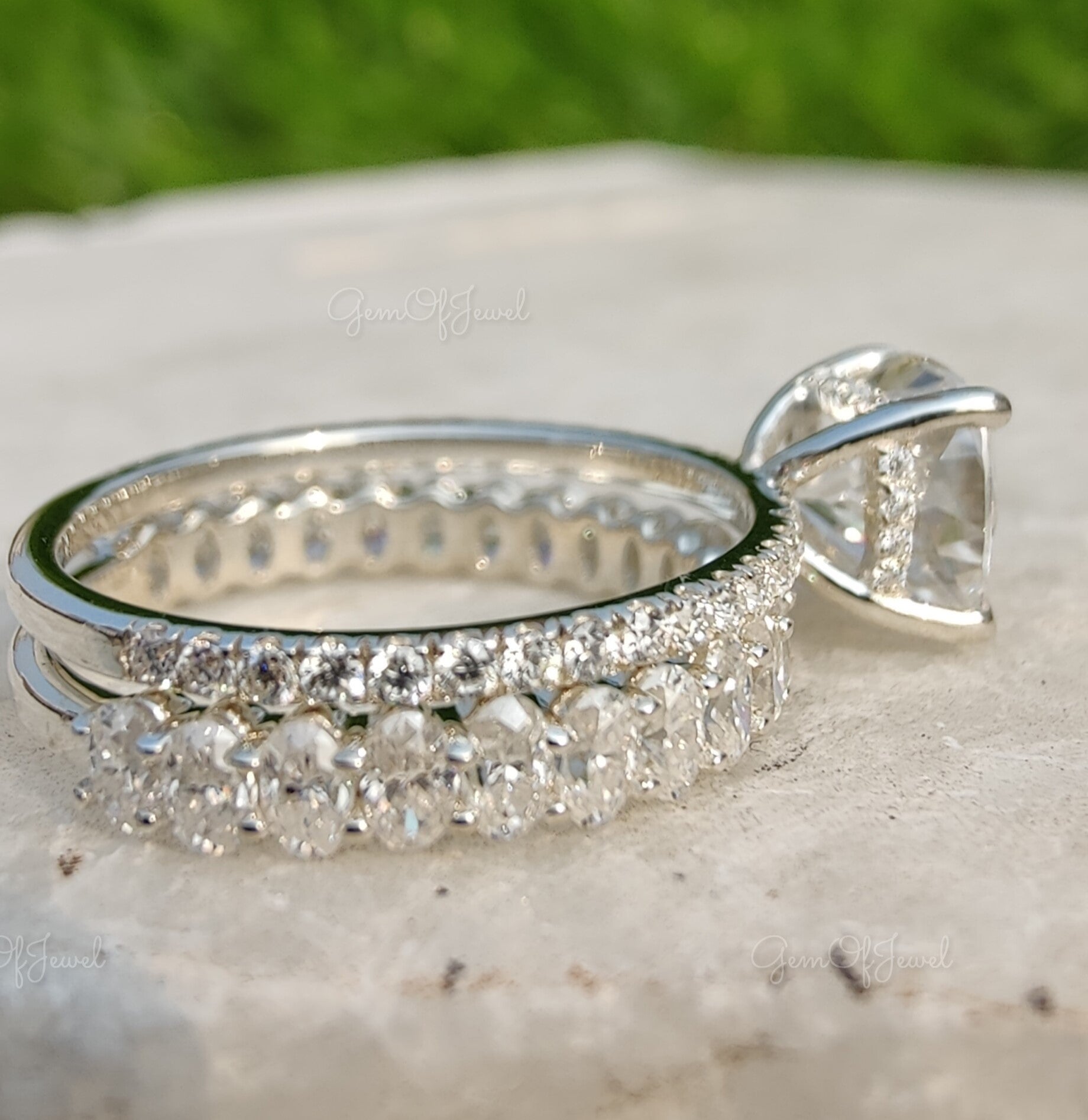 Cushion Cut Moissanite Engagement Ring With Oval Moissanite Diamond Band, Bridal set For Her, Cushion Cut Wedding Ring With Oval Band Set