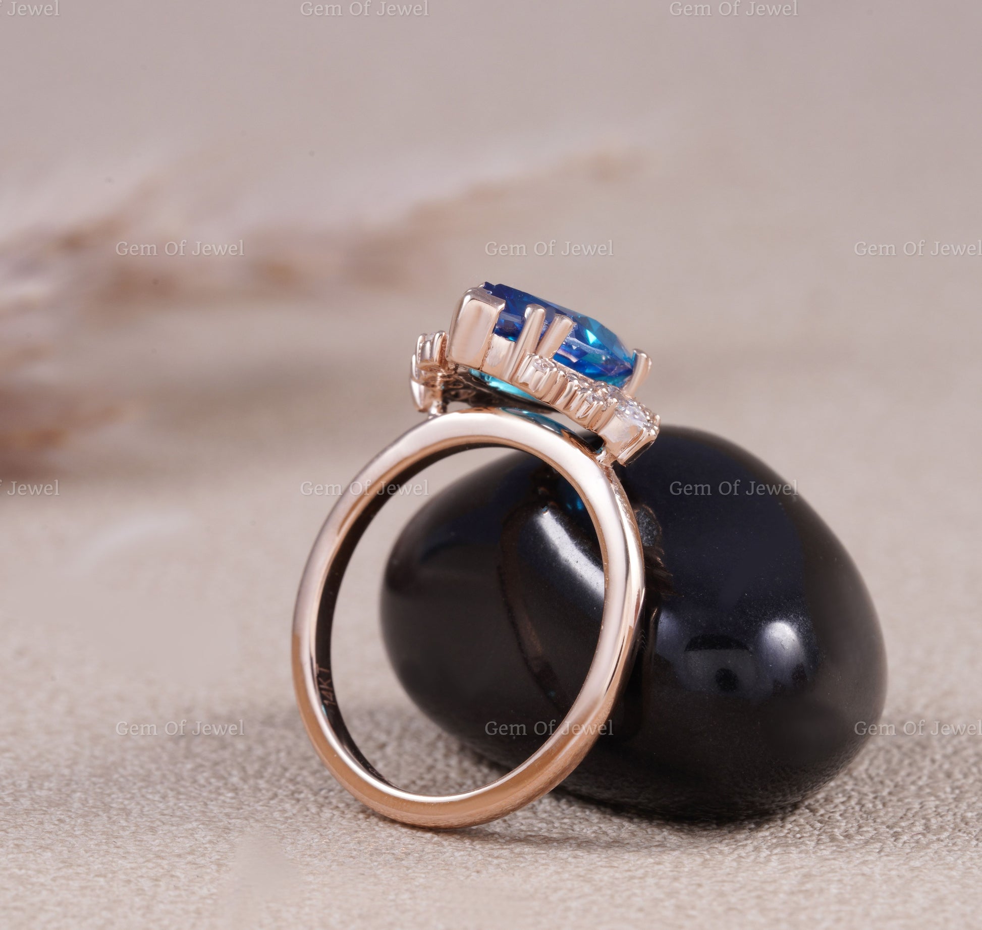 Blue Diamond Marquise Lab Sapphire Diamond Ring, Marquise Lab Diamond Ring, Marquise Cut Blue Sapphire Diamond Ring For Her