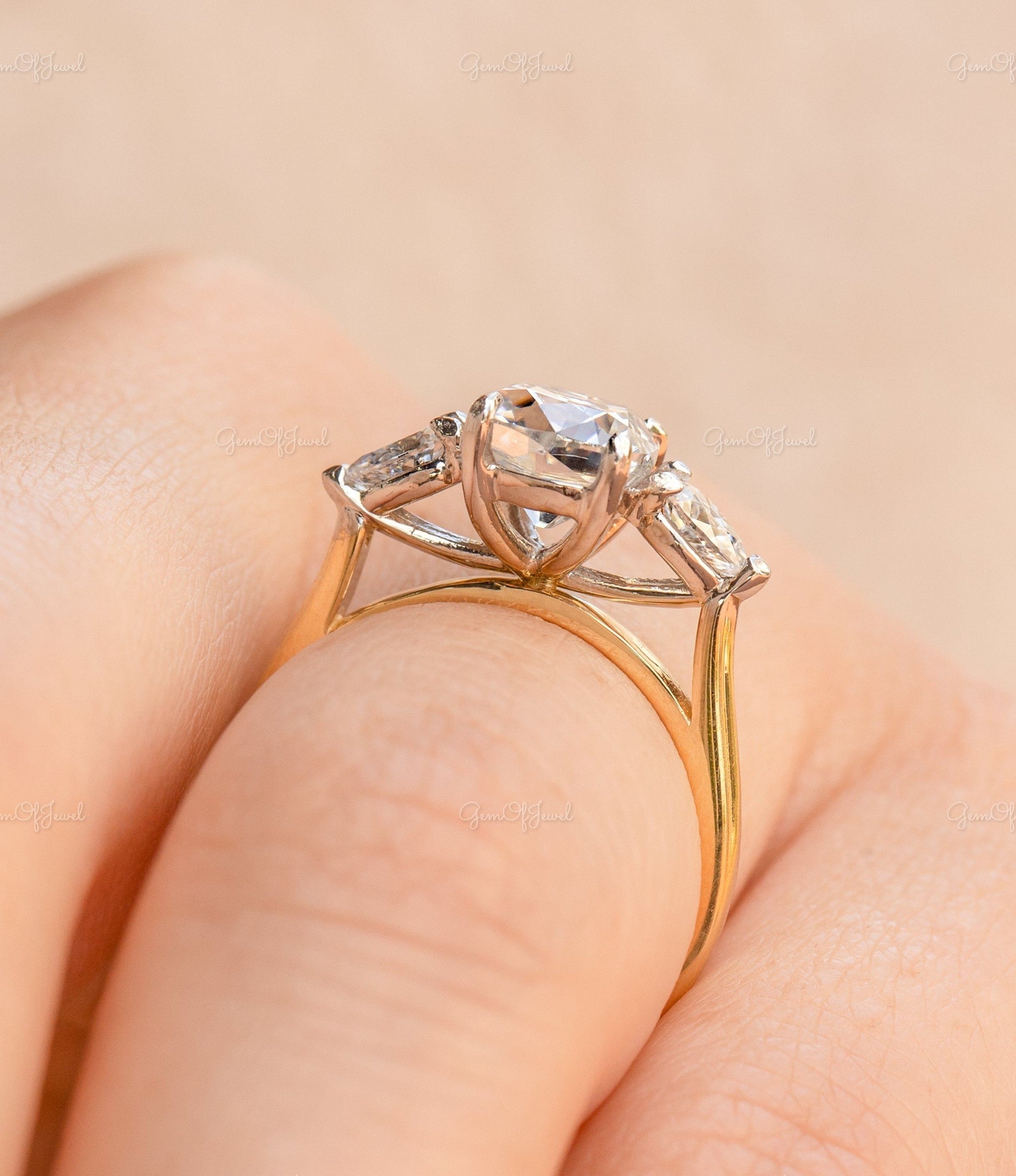 2CT Cushion Cut Moissanite Center Cushion Diamond With Side Pear Diamond Three Stone Ring Engagement ring For her, Cushion Diamond Ring