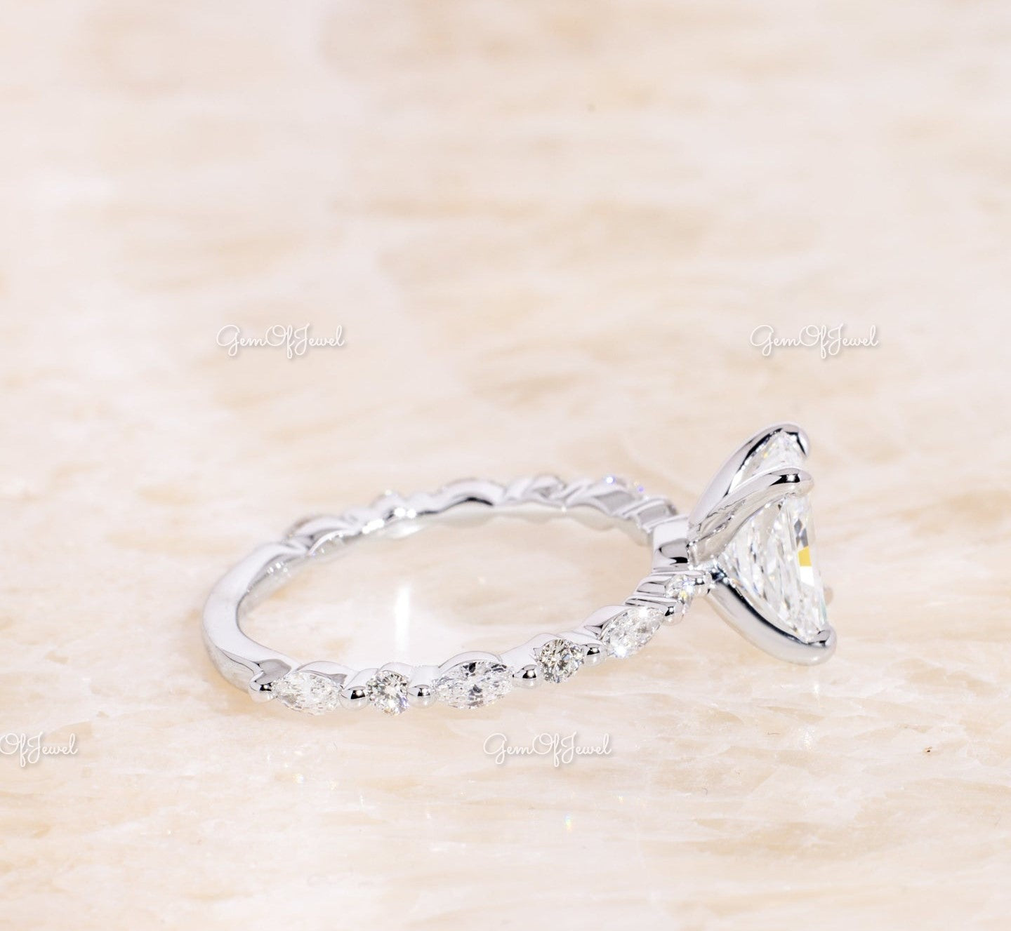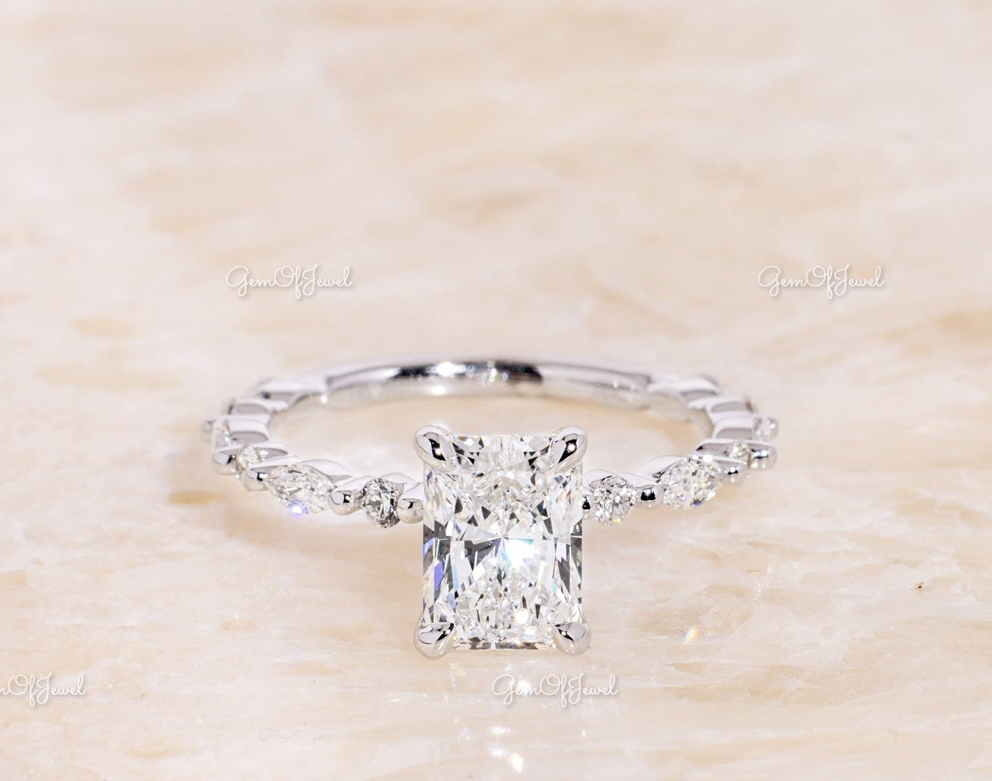 Radiant Cut Diamond Moissanite Diamond Engagement Ring With Round And Marquise Alternate Diamond On Eternity Band, Radiant Diamond Ring