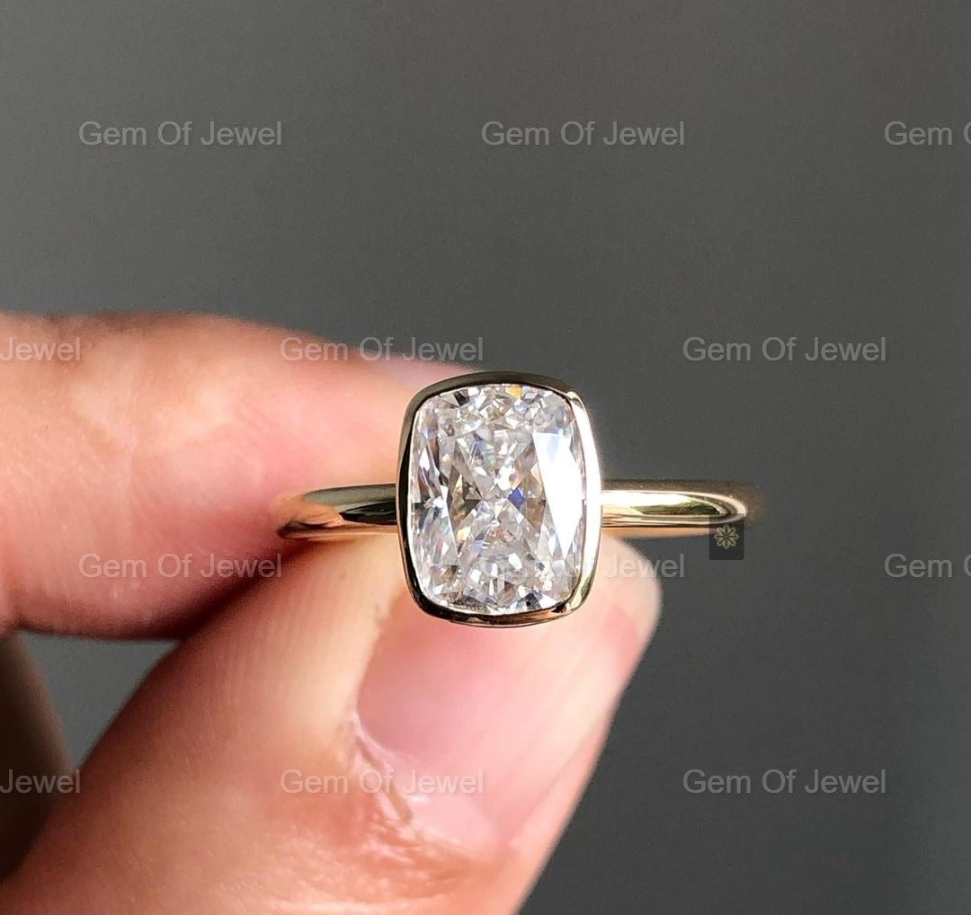2CT Cushion Moissanite Diamond Engagement Ring, Elongated Cushion Diamond Petal Basket Bezel Setting Tulip Prong Setting Cushion Diamond Ring