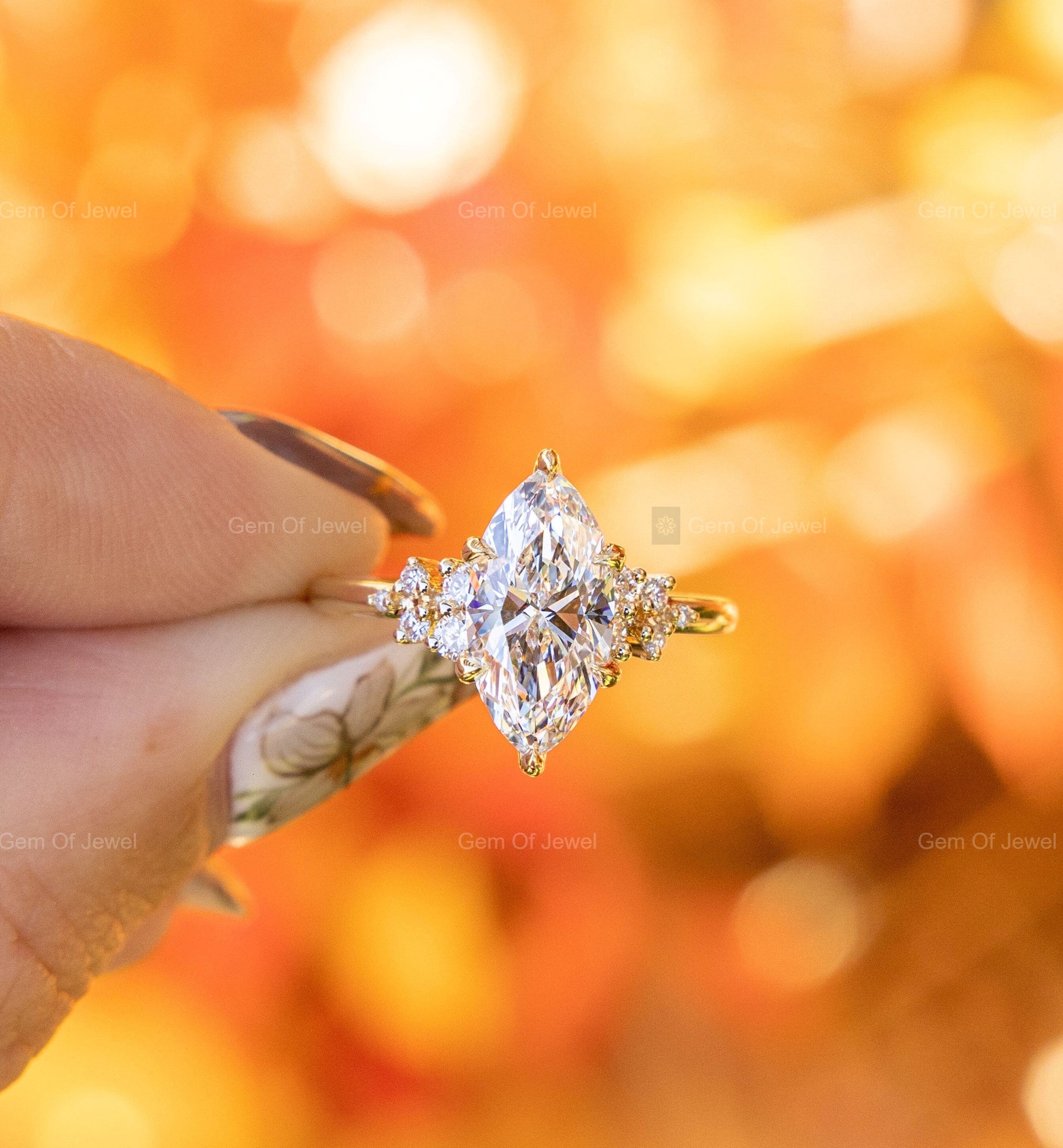 2CT Marquise Diamond Moissanite Ring With Side Round Moissanite Diamond, 2CT Diamond Ring For Her, Cluster Setting Ring , 2CT Marquise Ring