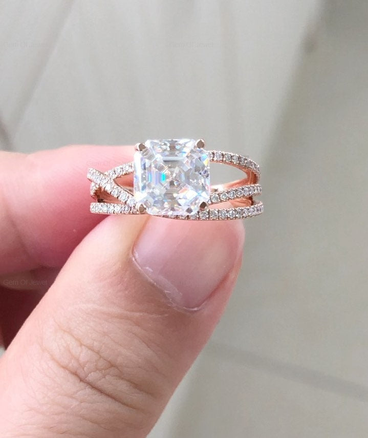 Ascher Cut Moissanite Diamond, Ascher Diamond Moissanite Diamond Ring For Her, Unique Style Ascher Cut Diamond Ring, Ascher Cut Diamond Ring
