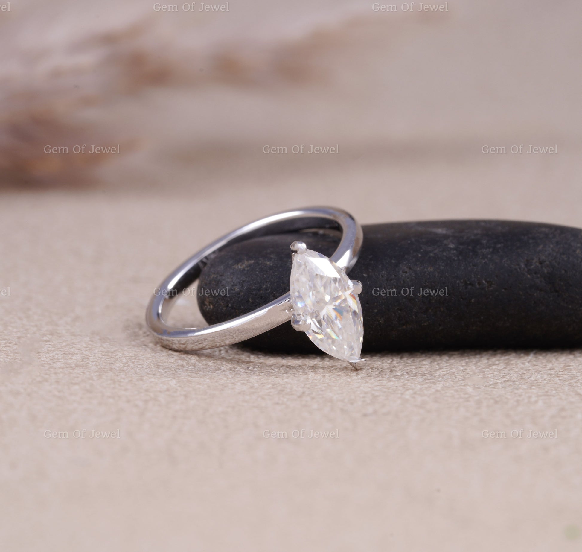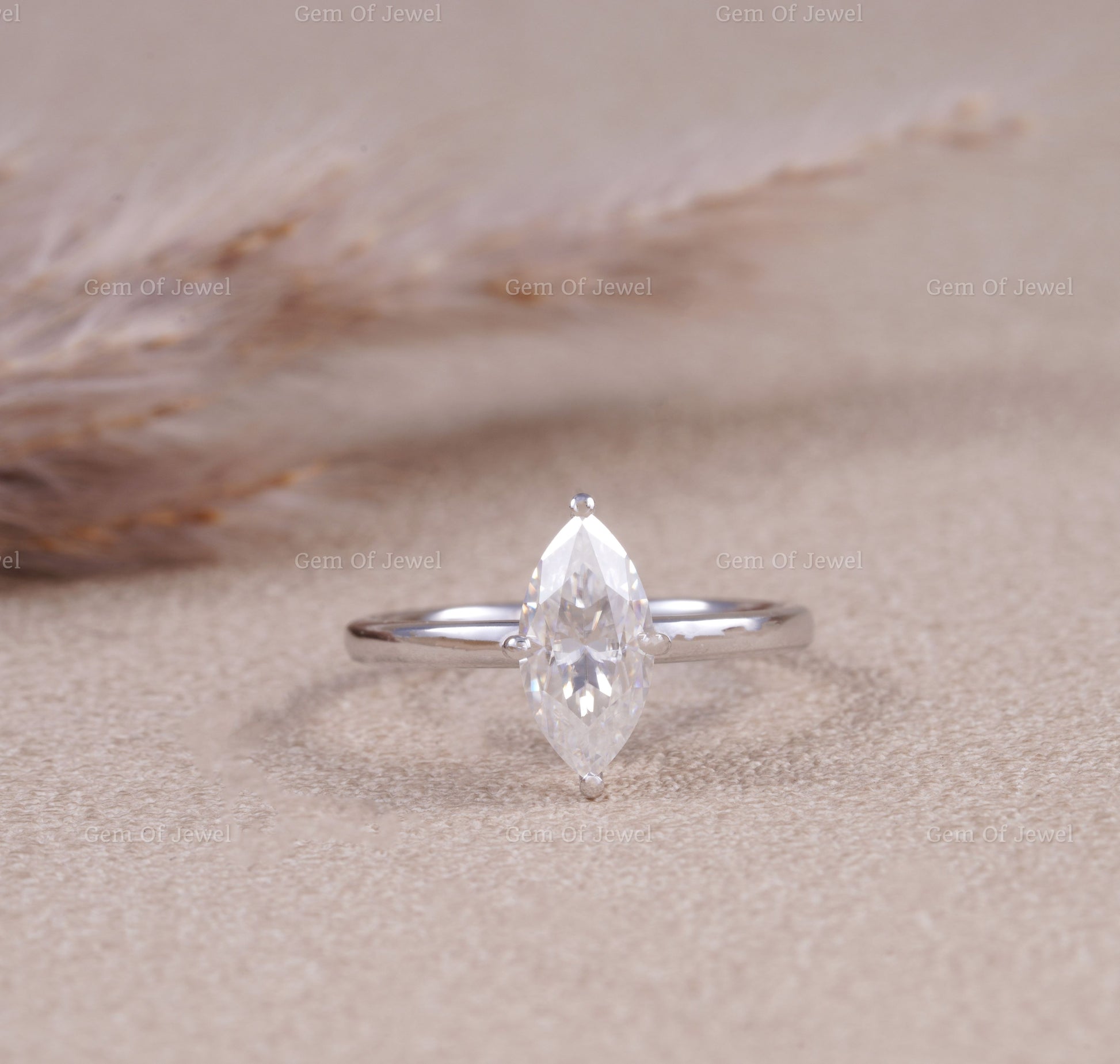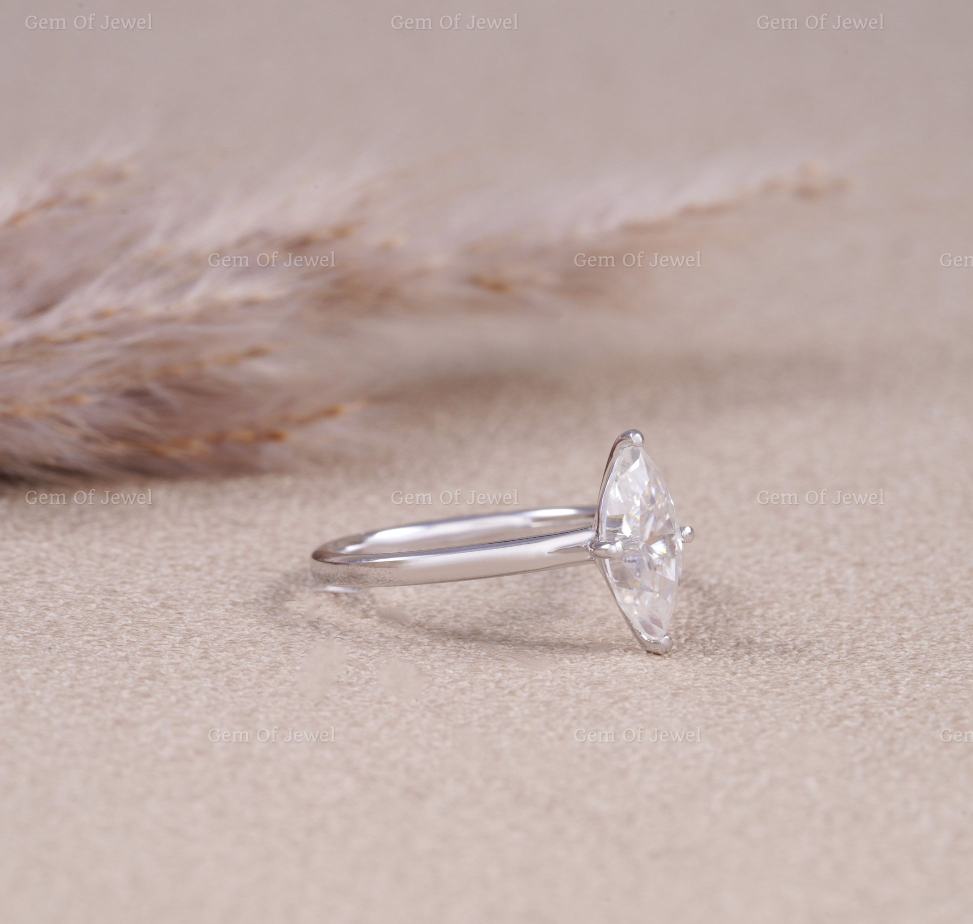 1Ct Marquise Moissanite Solitaire Moissanite Diamond Engagement Ring For Her, Four Prong Solitaire Diamond Ring