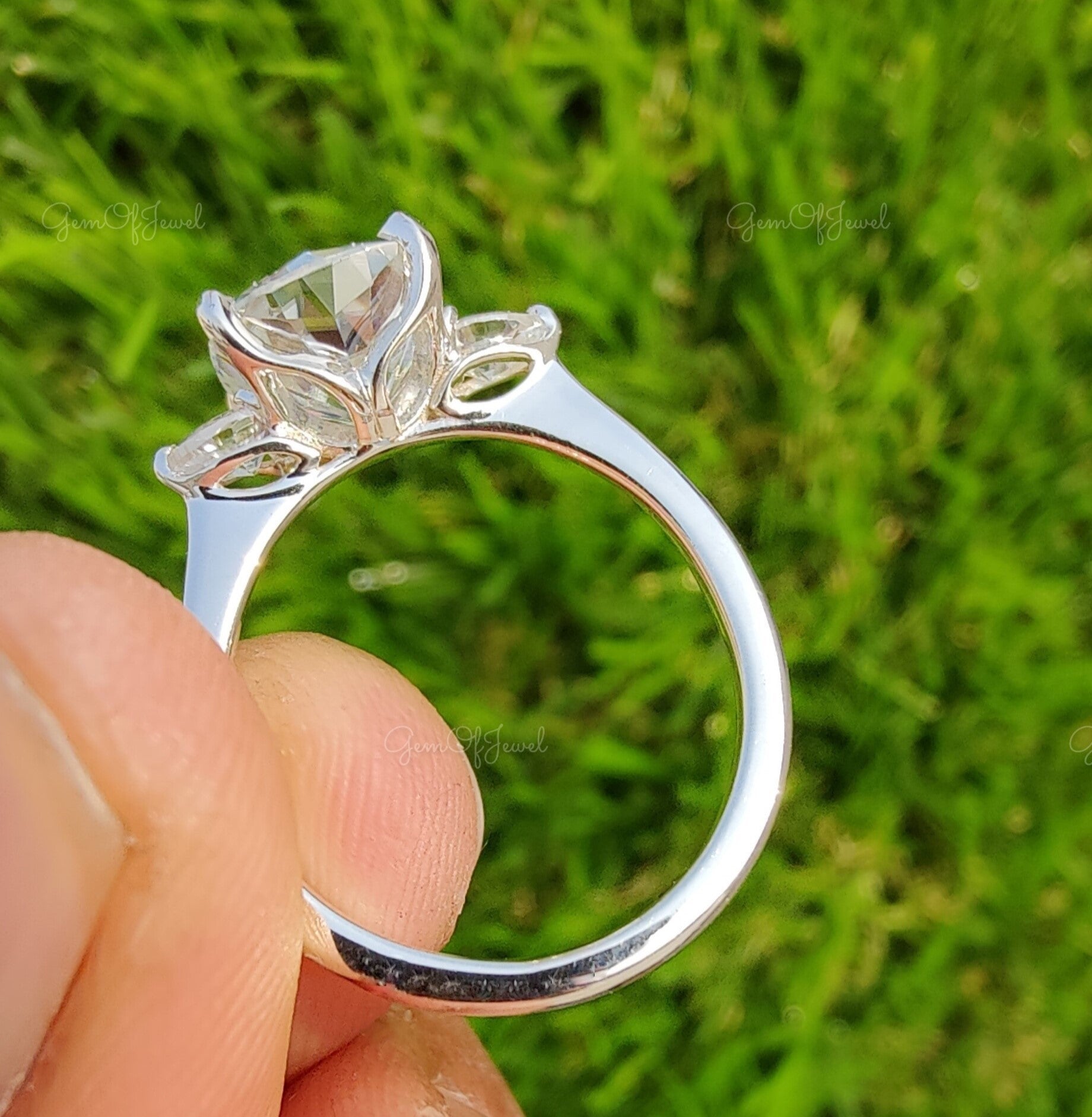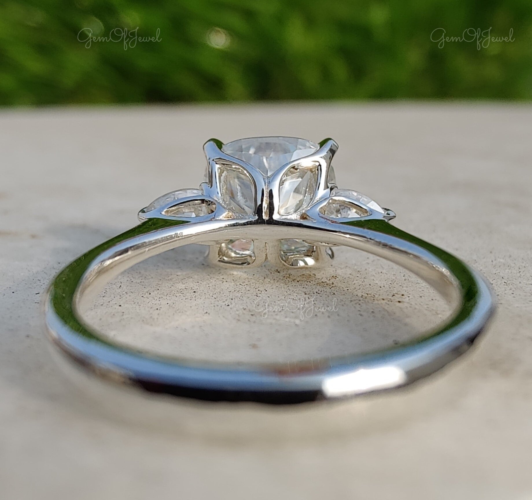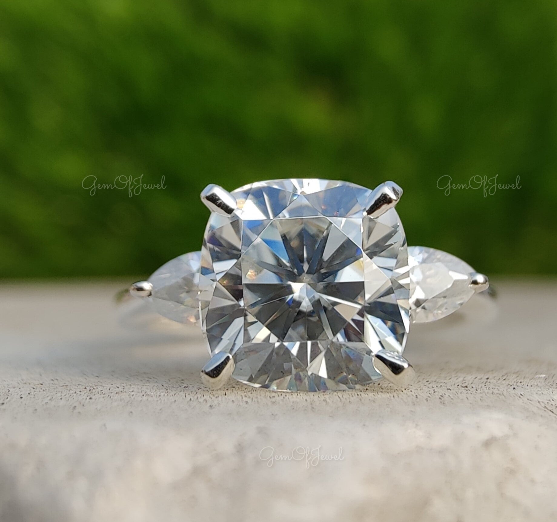 Cushion Moissanite Diamond 3 Stone With Pear Moissanite Diamond, Three Stone Ring For Wedding Ring , Cushion Moissanite Diamond Ring For Her