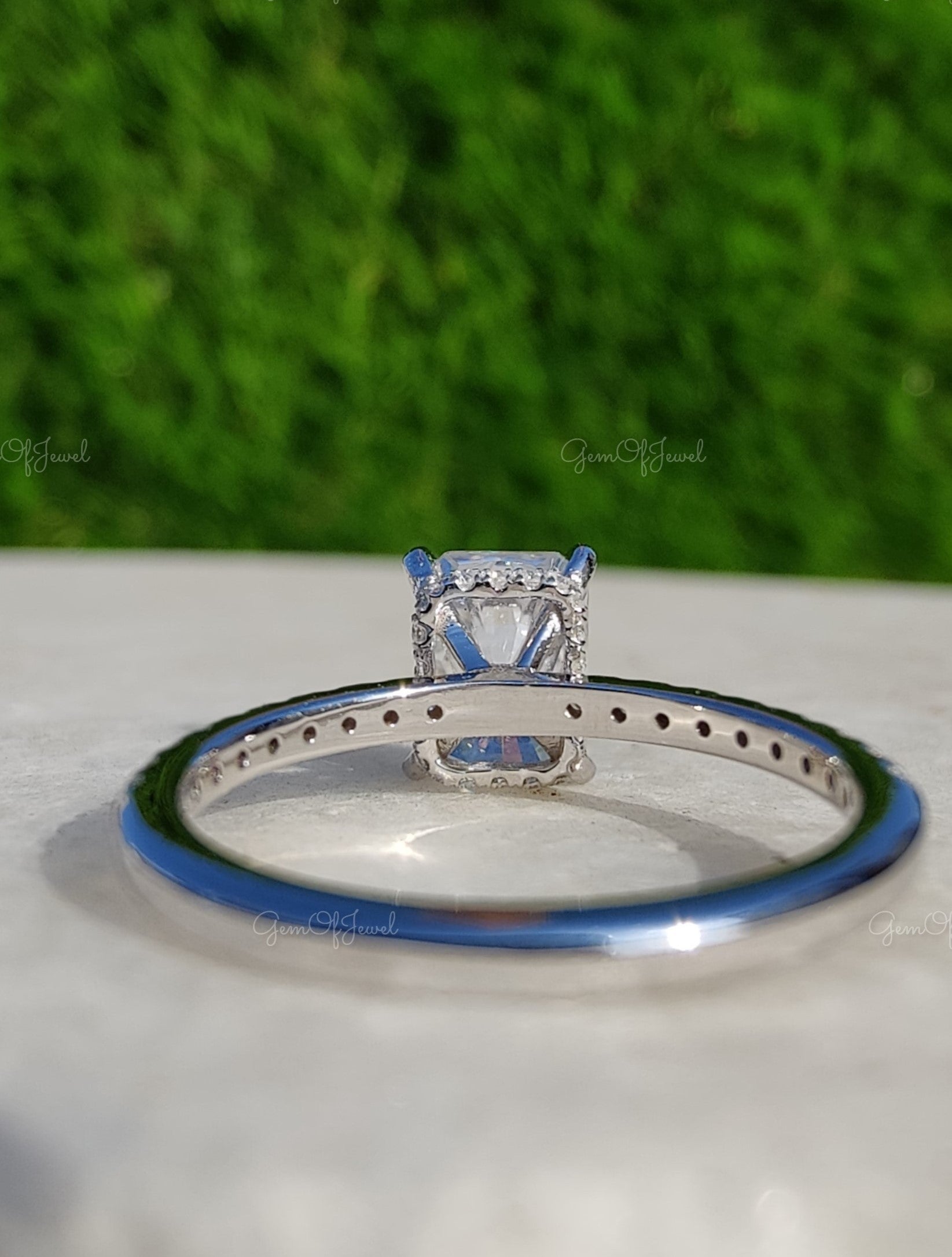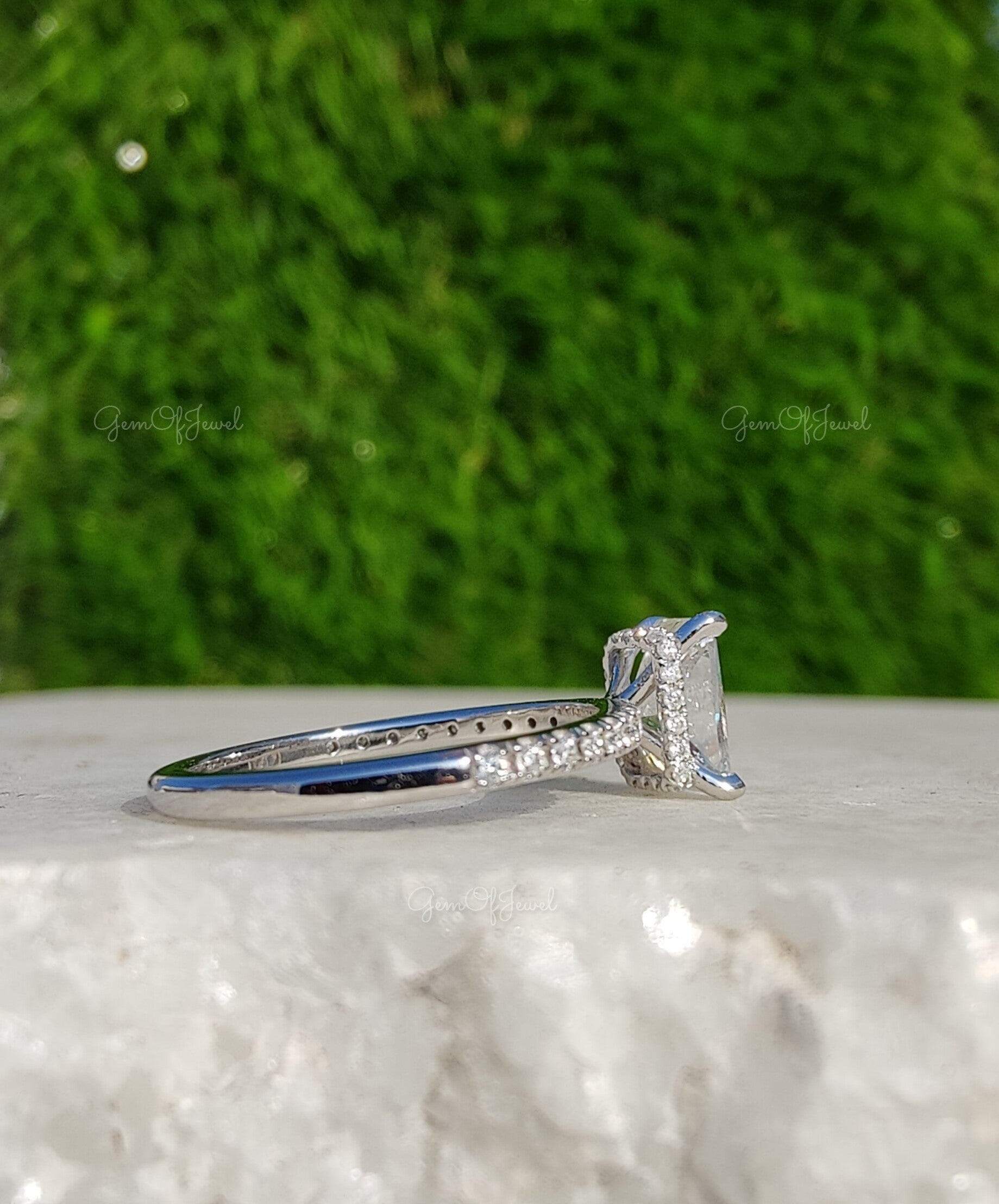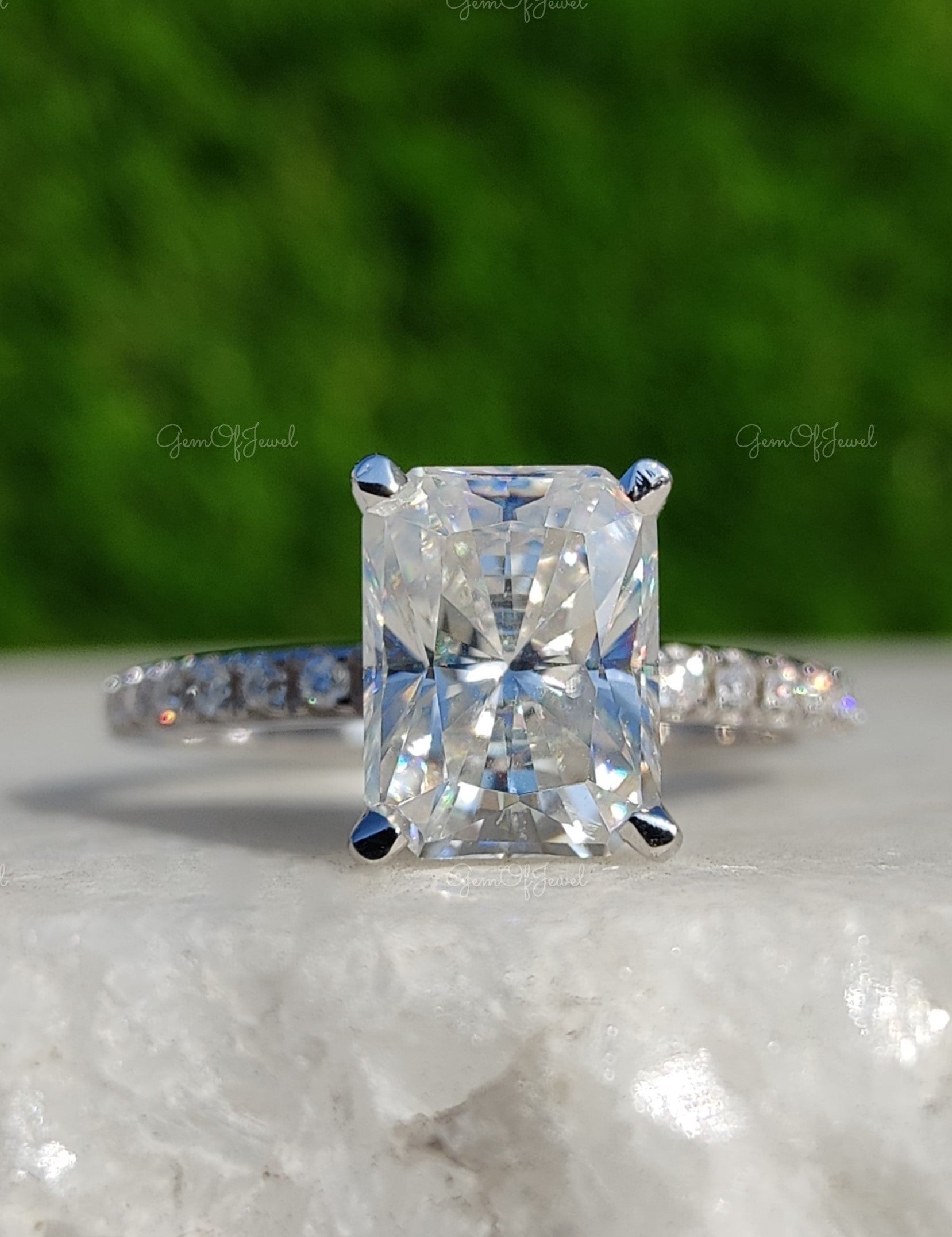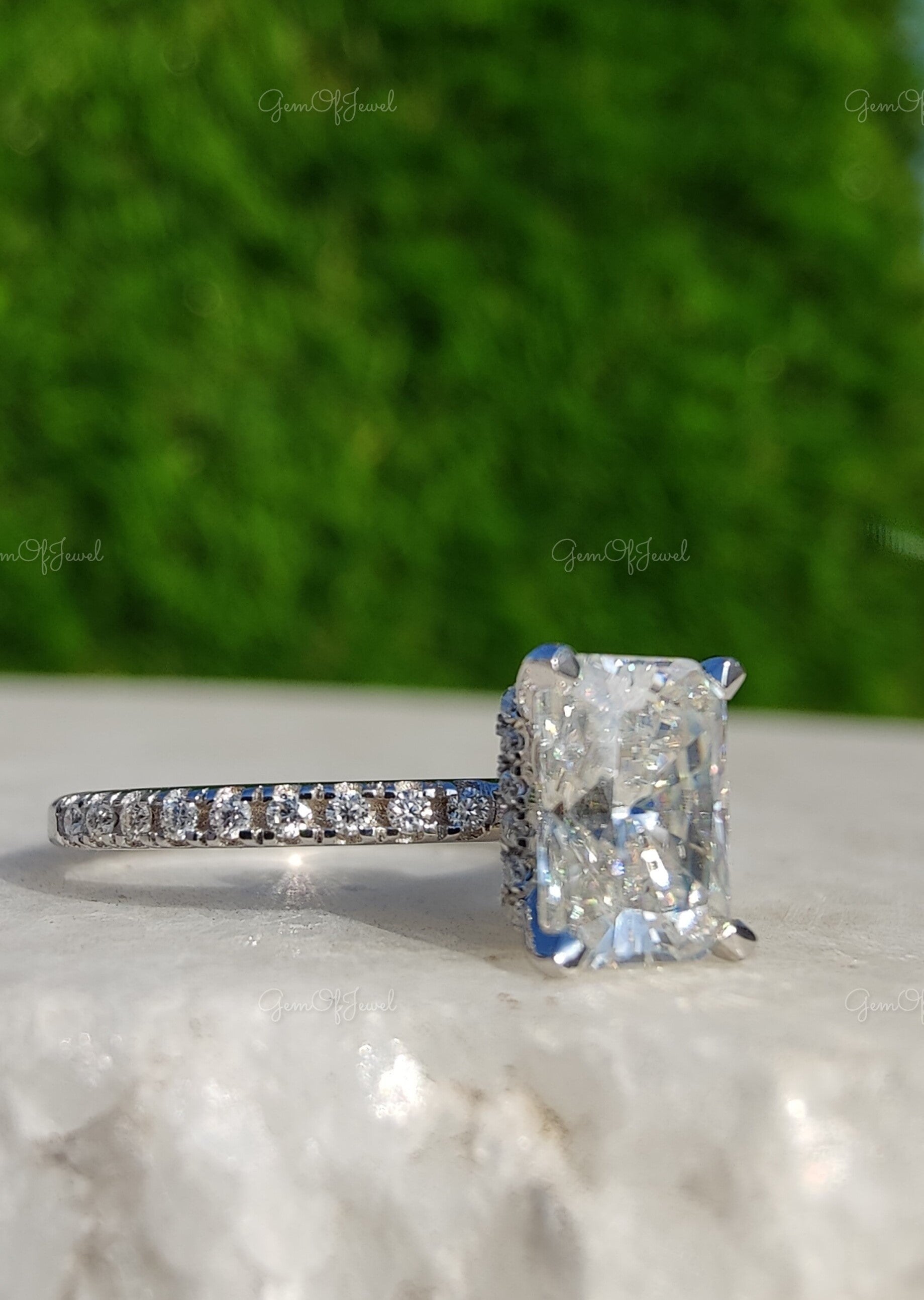 Radiant Diamond Moissanite With Halo Of Round Moissanite Diamond, Engagement Ring, Radiant Diamond Ring, Radiant Moissanite Diamond Ring