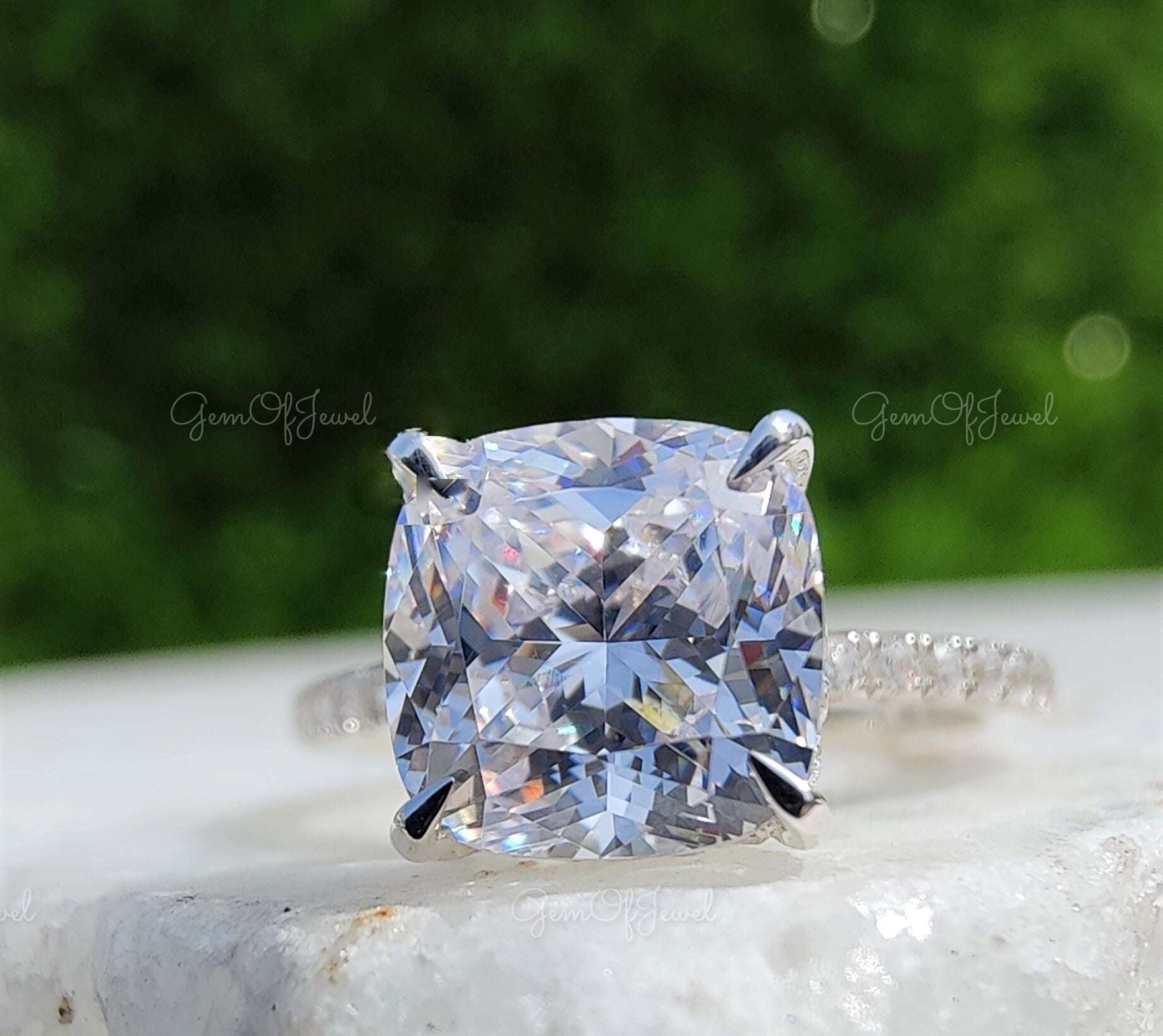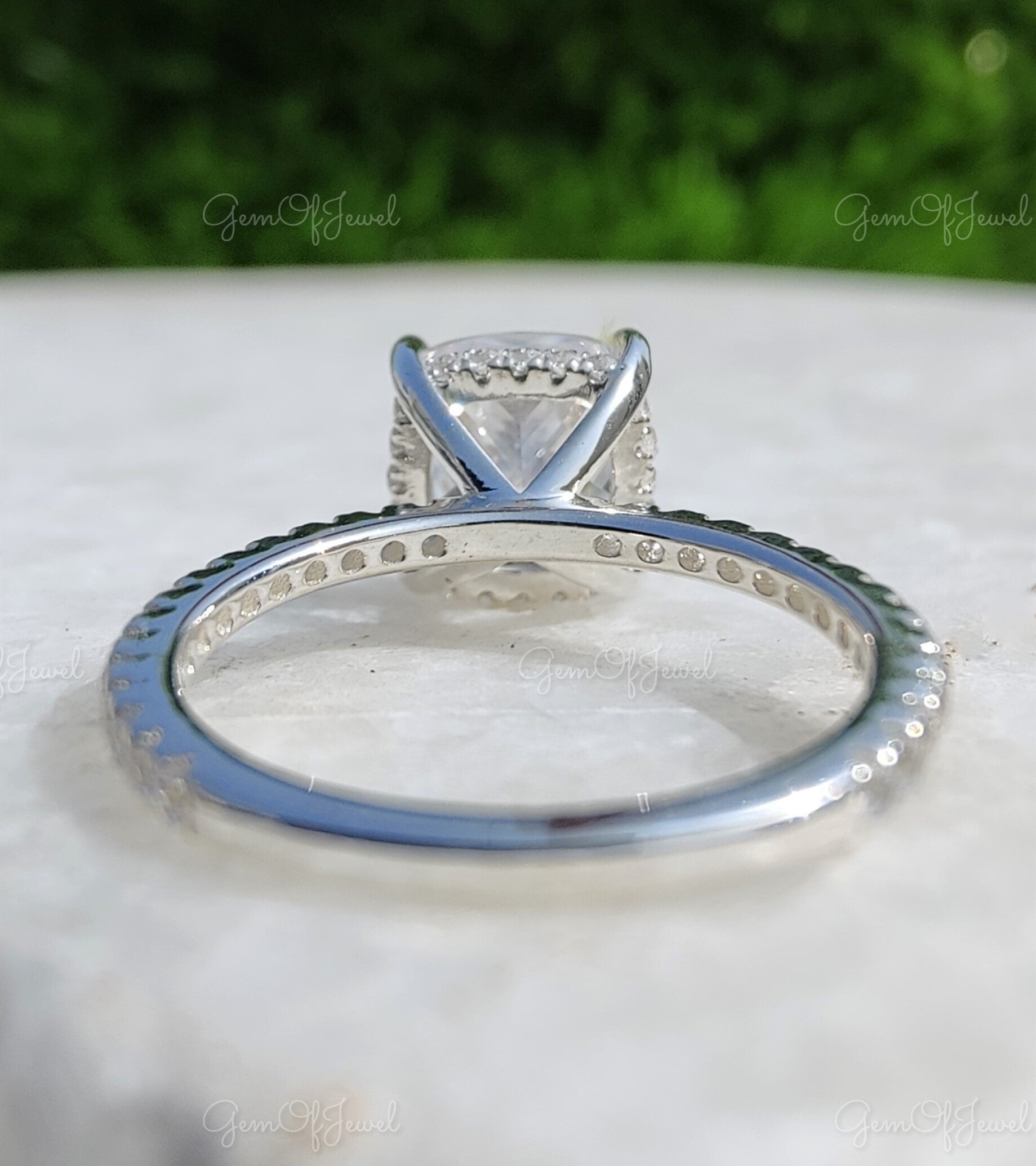 2CT Cushion Moissanite Diamond With Round Moissanite Diamond Pave Eternity Ring , Cushion Moissanite Diamond Engagement Ring Gift For Her