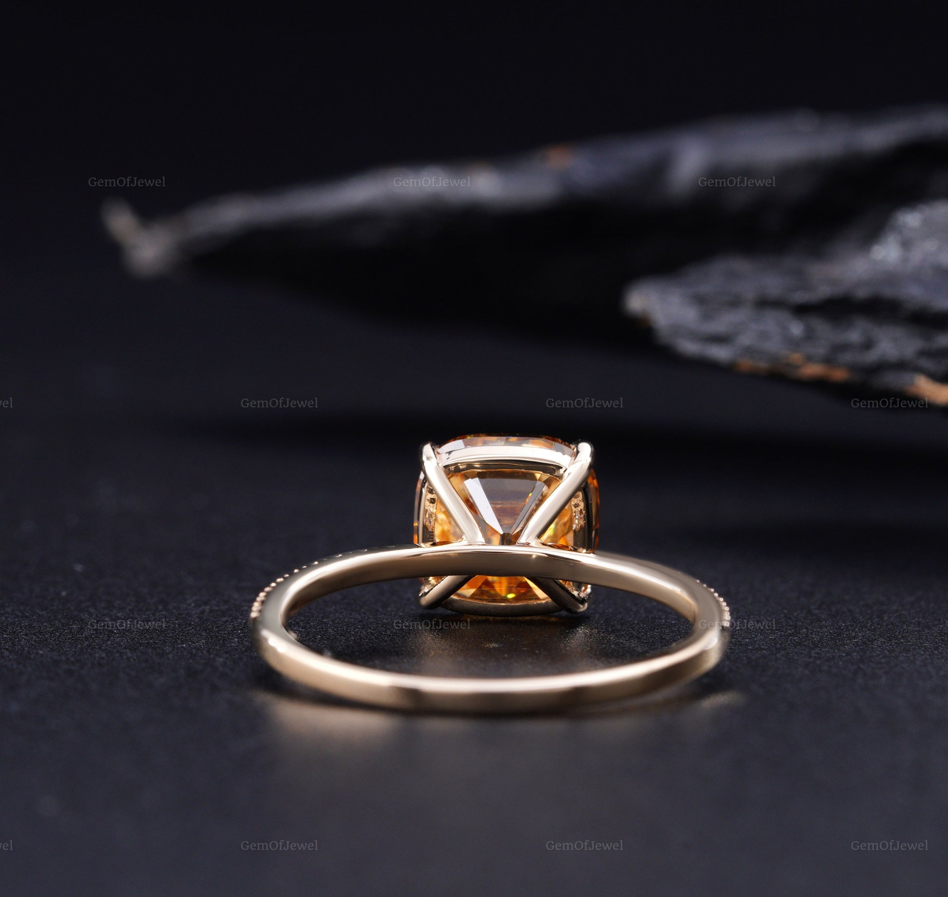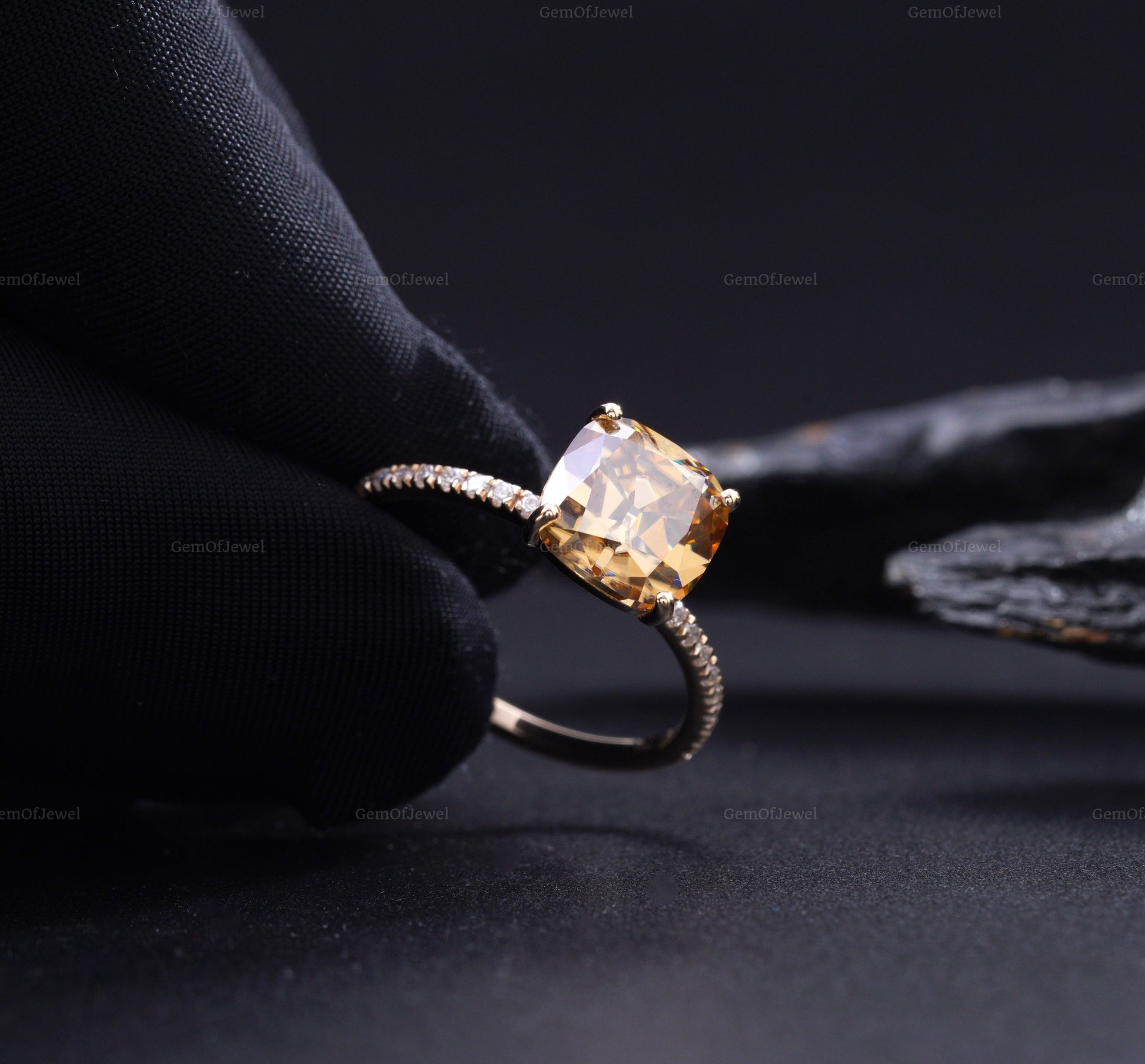 Cushion Champagne Moissanite Diamond Ring With Side Round Moissanite Diamond Ring, Cushion Cut Brown Diamond Ring, Champagne Diamond Ring