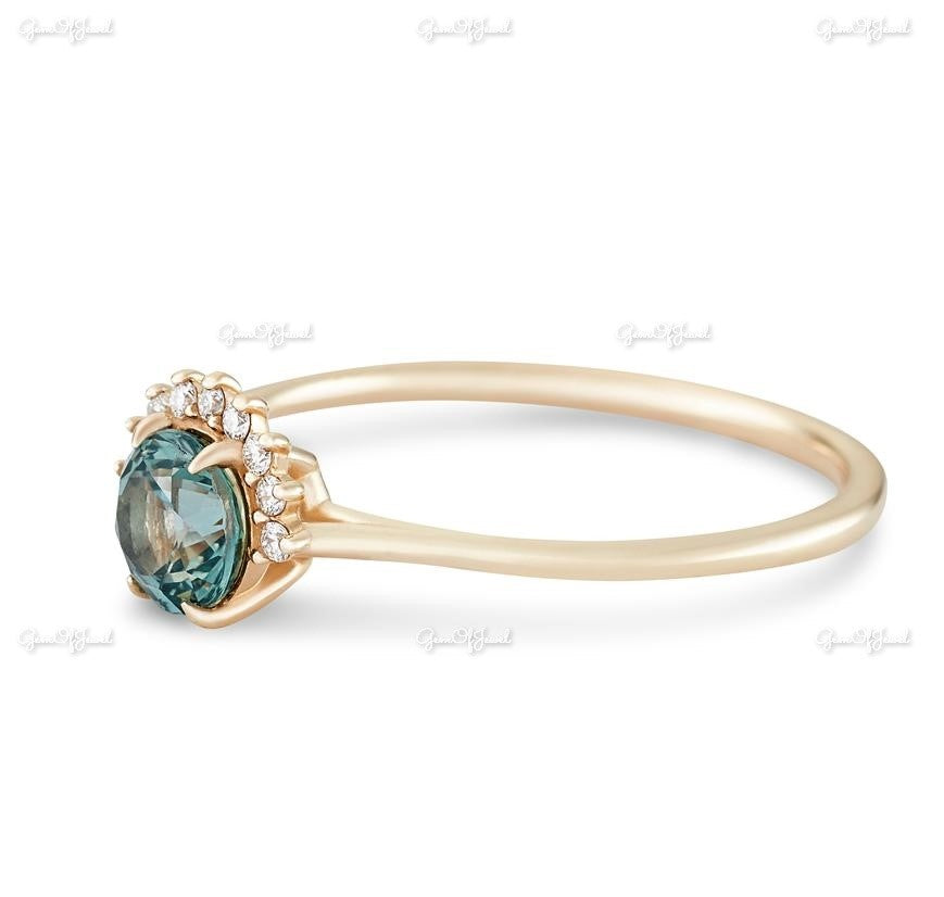 Round Sapphire Diamond Lab Synthetic 1 CT With Round Moissanite diamond Band Blue Center Stone With 3/4th Eternity Band Engagement Ring