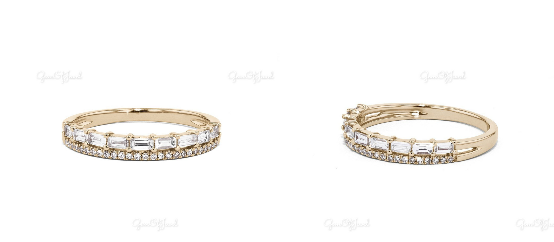 2CT Diamond Ring Moissanite Gold Ring With Thick Band And Split Band Matching Band Bridal Set Gift, Wedding Ring And Stackable Band Set