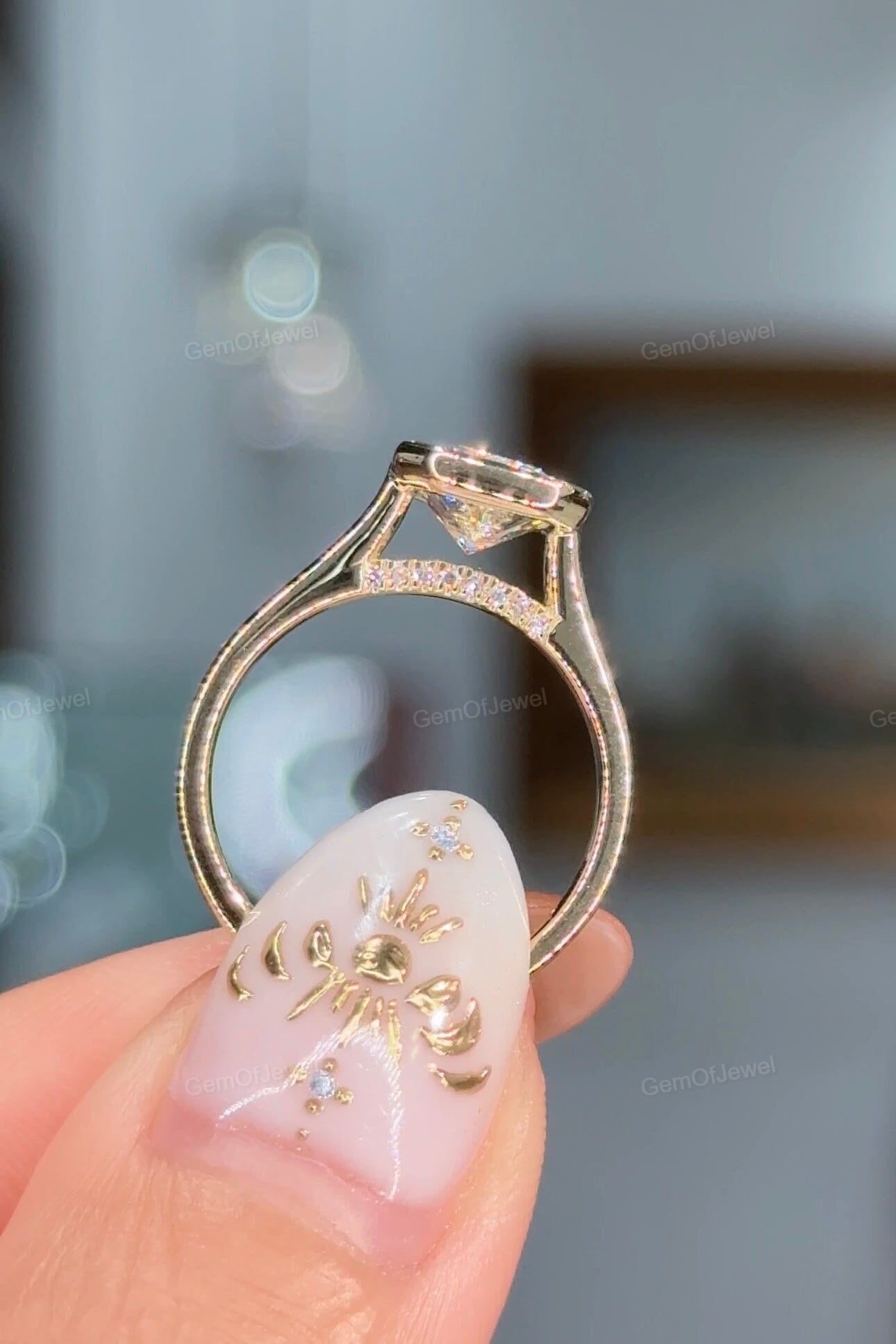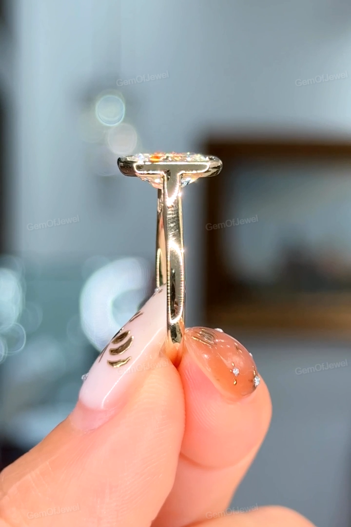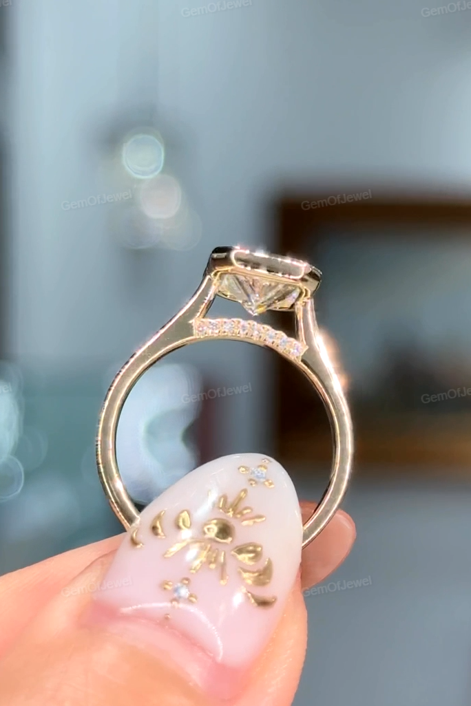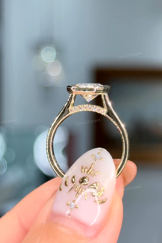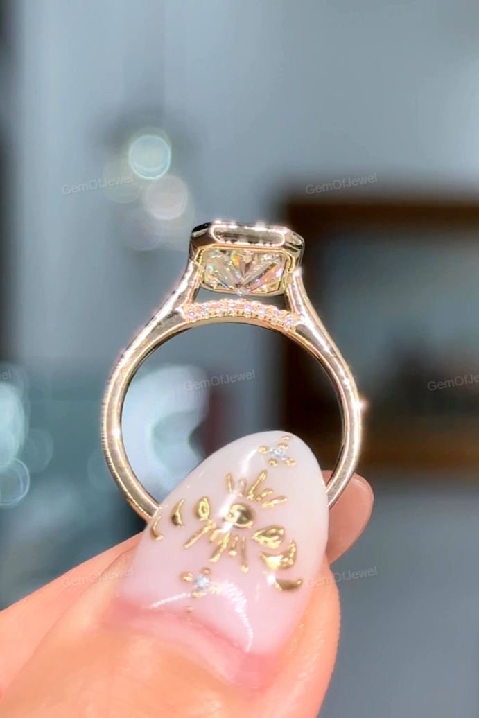 2.5Ct Radiant Moissanite Diamond Engagement Ring With Round Moissanite Diamond on Bridge, Radiant Bezel Set Ring.