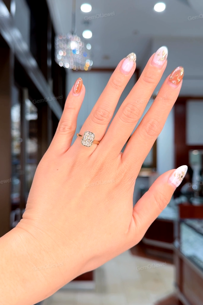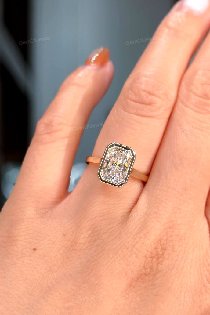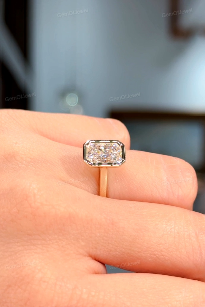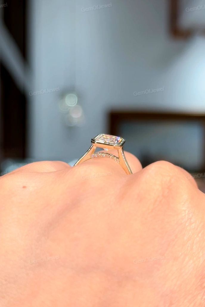 2.5CT Radiant Diamond Engagement Bezel Set Ring With Diamonds On The Bridge Ring, Radiant Moissanite Diamond Engagement Bezel Set Ring