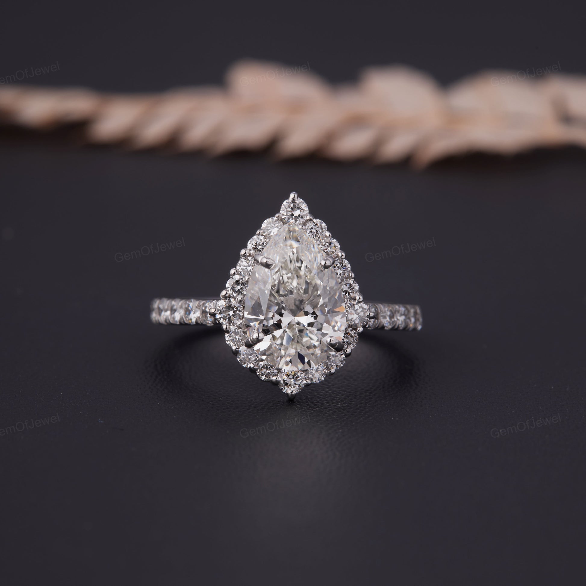 2.30 CT Pear Cut Moissanite Halo Engagement Ring, Pear Diamond Wedding Ring, Stacking Anniversary Ring for Her, Proposal Ring, 14k Gold Ring
