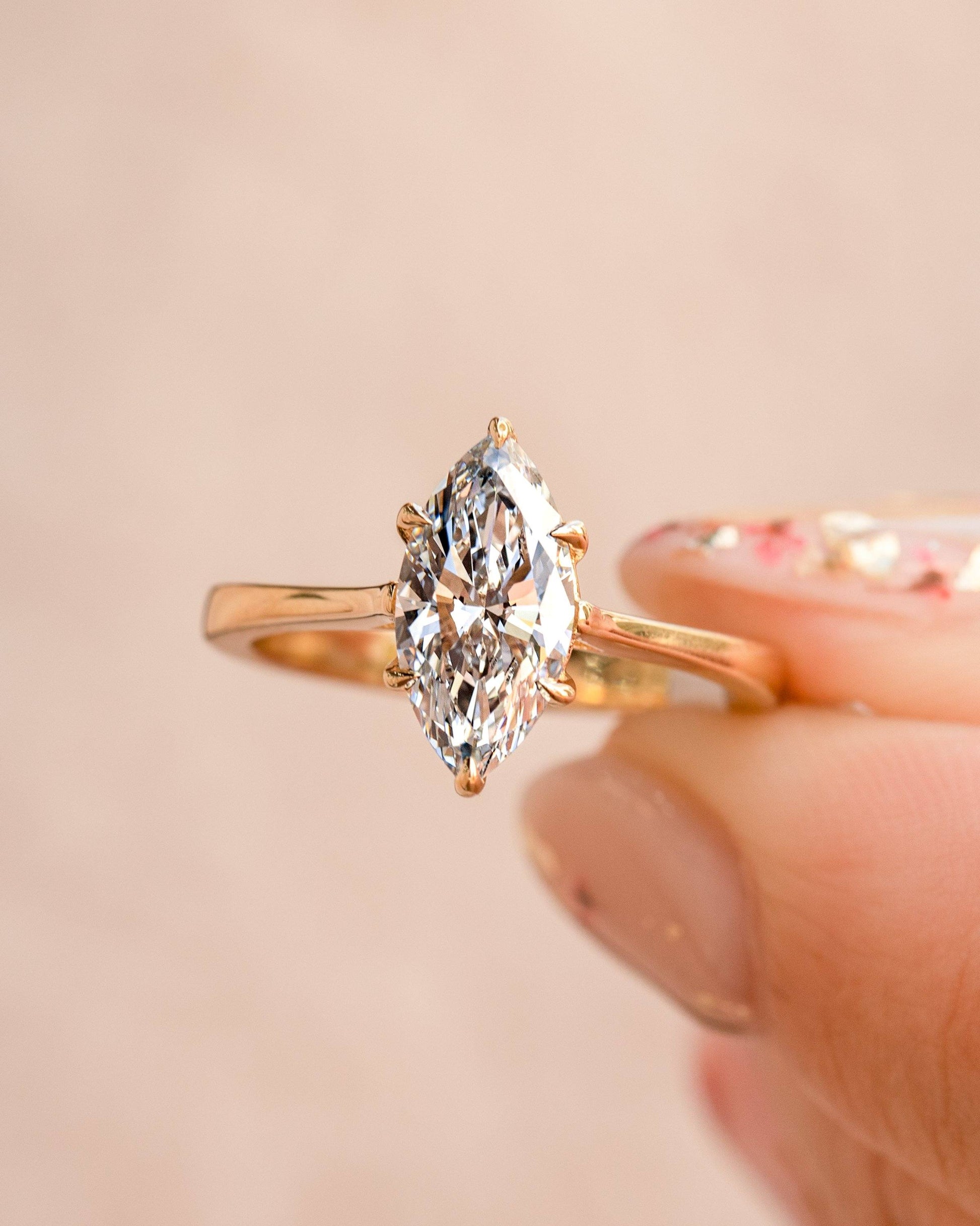 Marquise Solitaire Moissanite Diamond Engagement Ring For Her, Solitaire Diamond Ring, Marquise Diamond Moissanite Diamond Engagement Ring