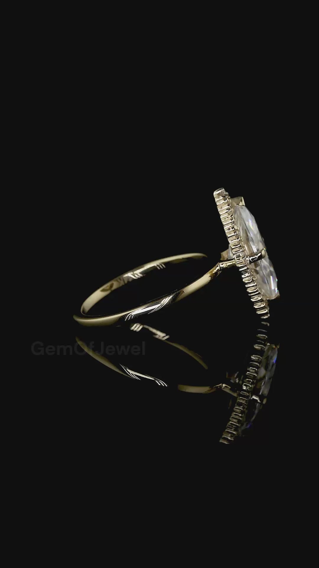 1ct Marquise Moissanite Engagement Ring, Cluster Halo Marquise Moissanite Diamond Engagement Ring, Flower Halo Ring For Her, Moissanite Ring
